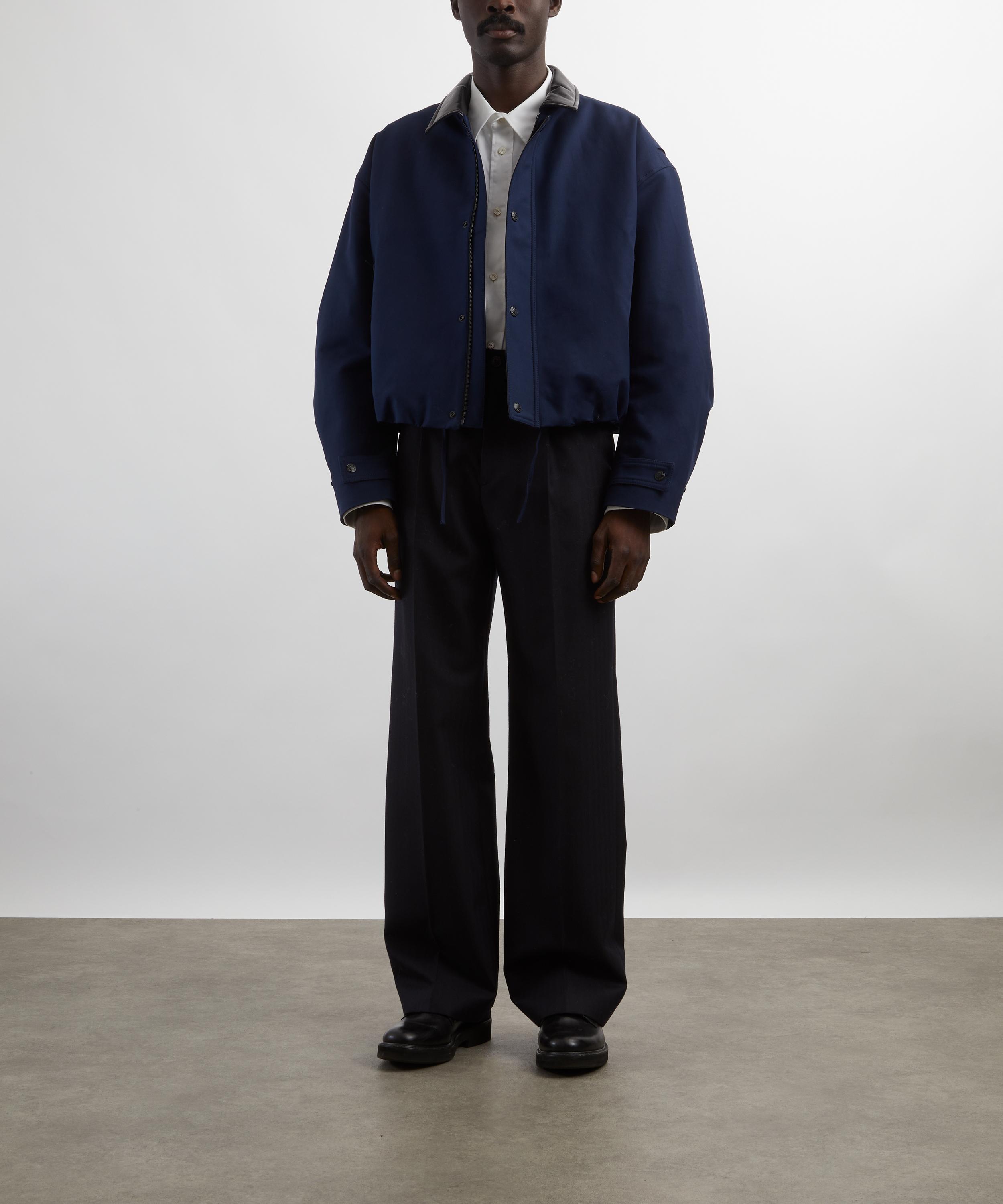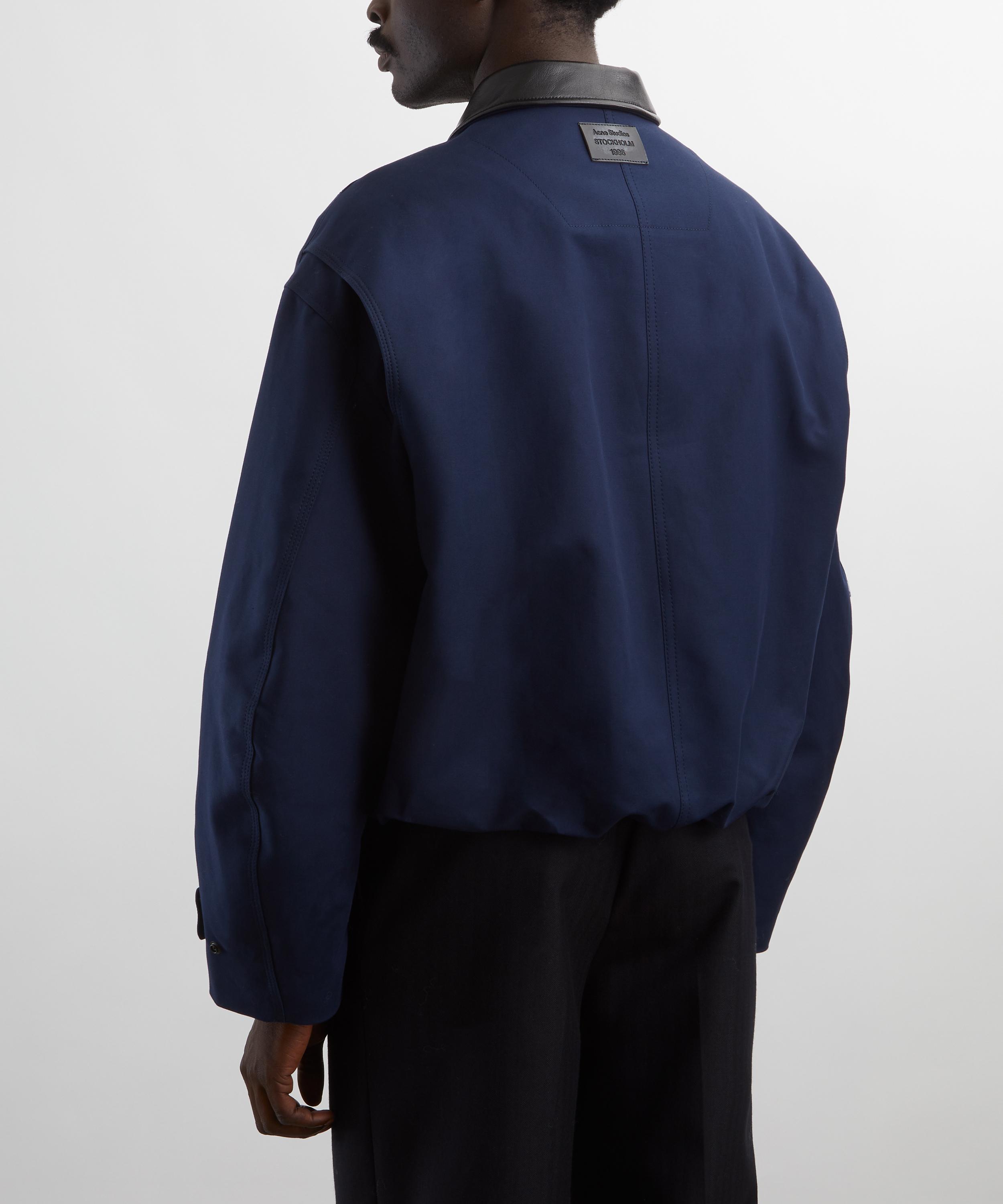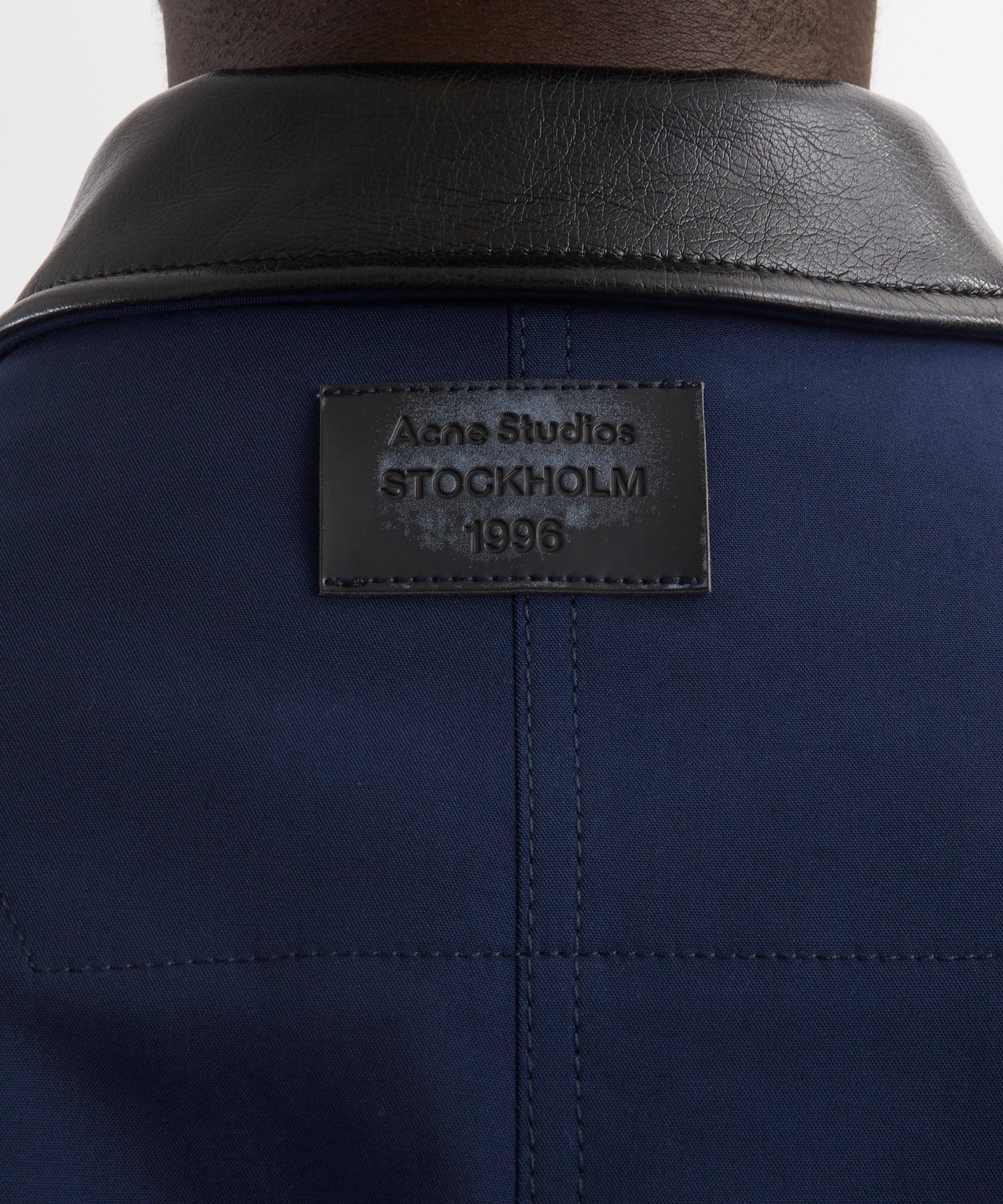 Crafted from smooth cotton with a satin-woven double-layer construction, this navy jacket features a contrasting leather collar, snap-button closure, and an embossed Acne Studios leather logo patch on the back for a distinctive, signature finish.