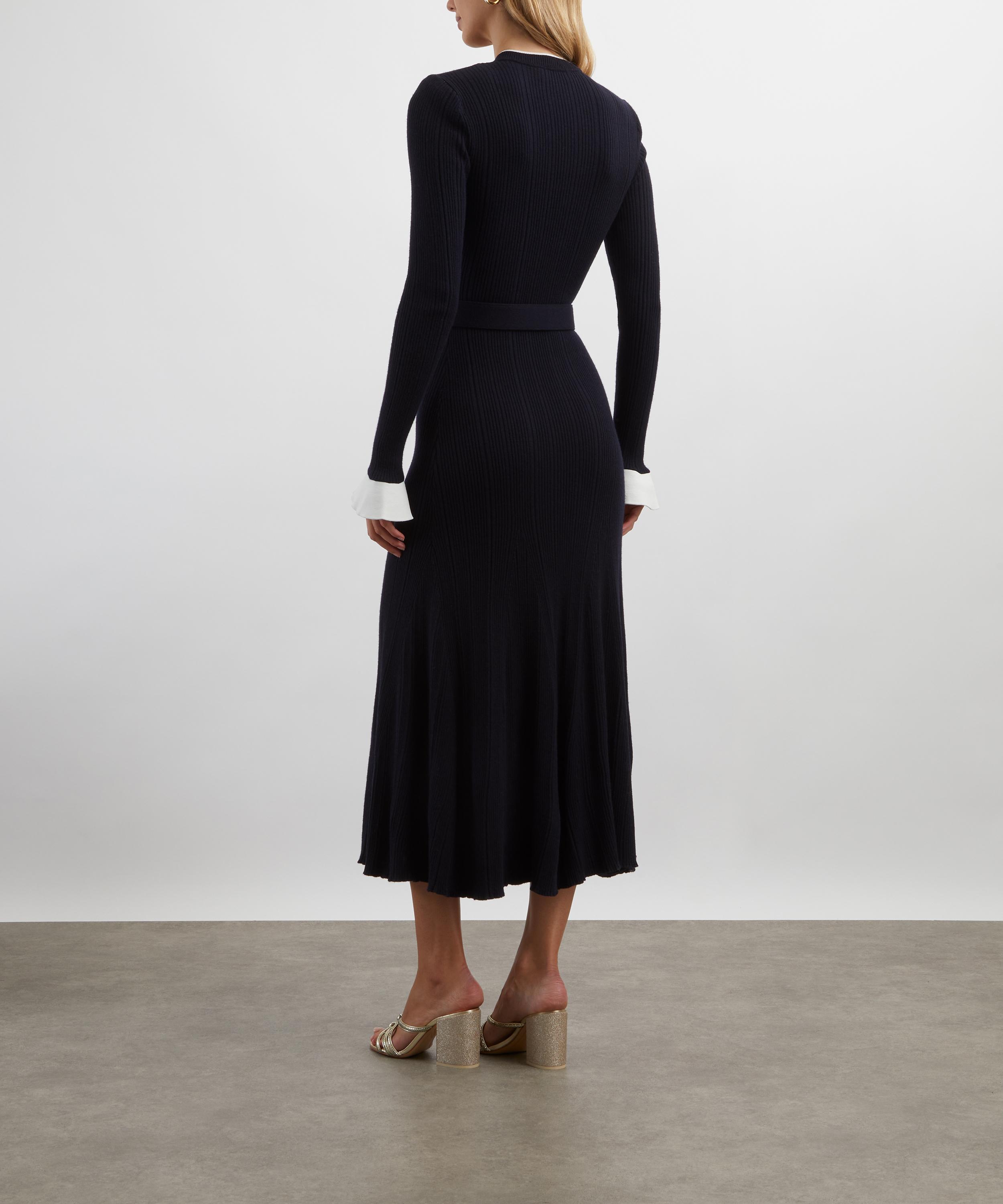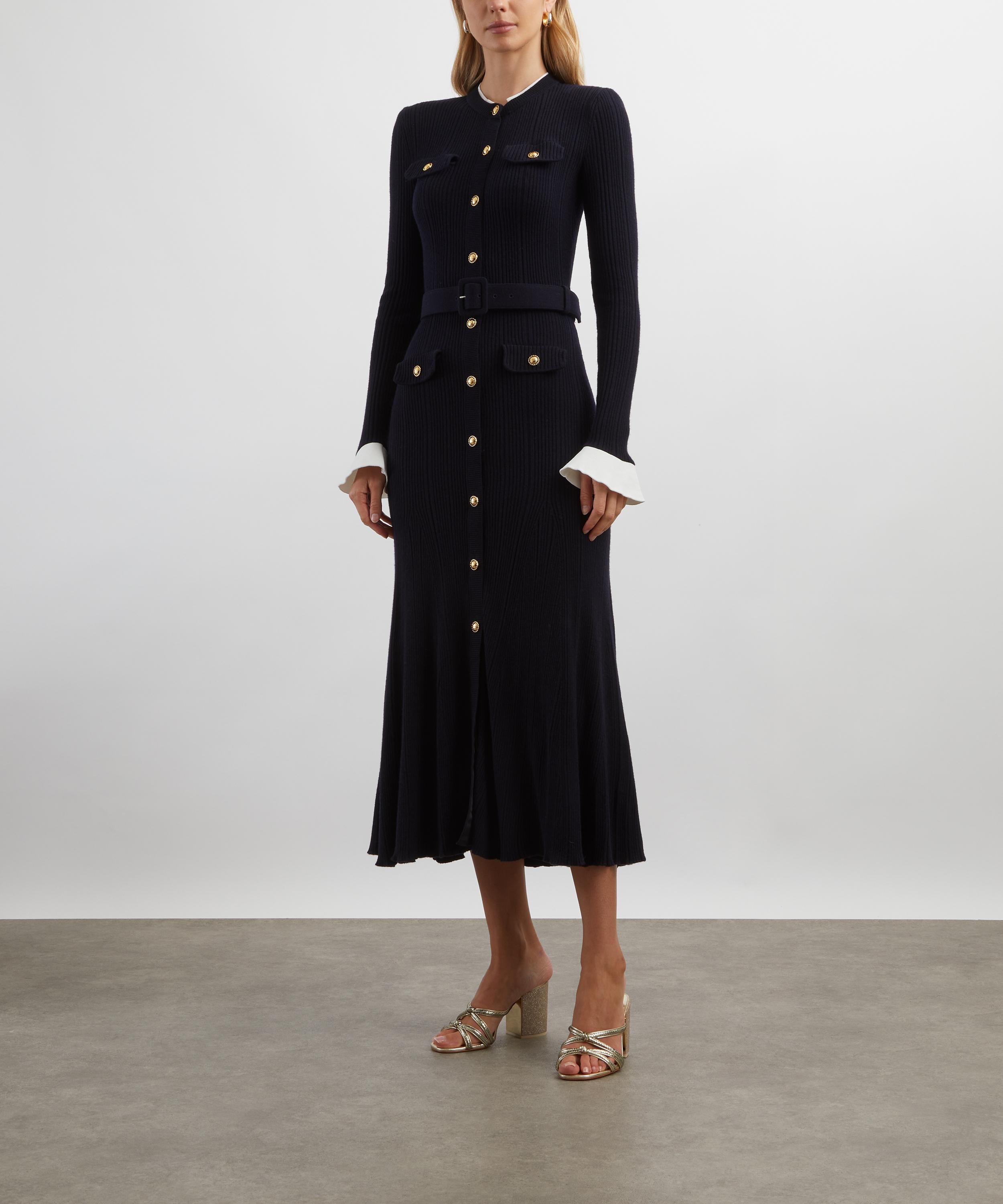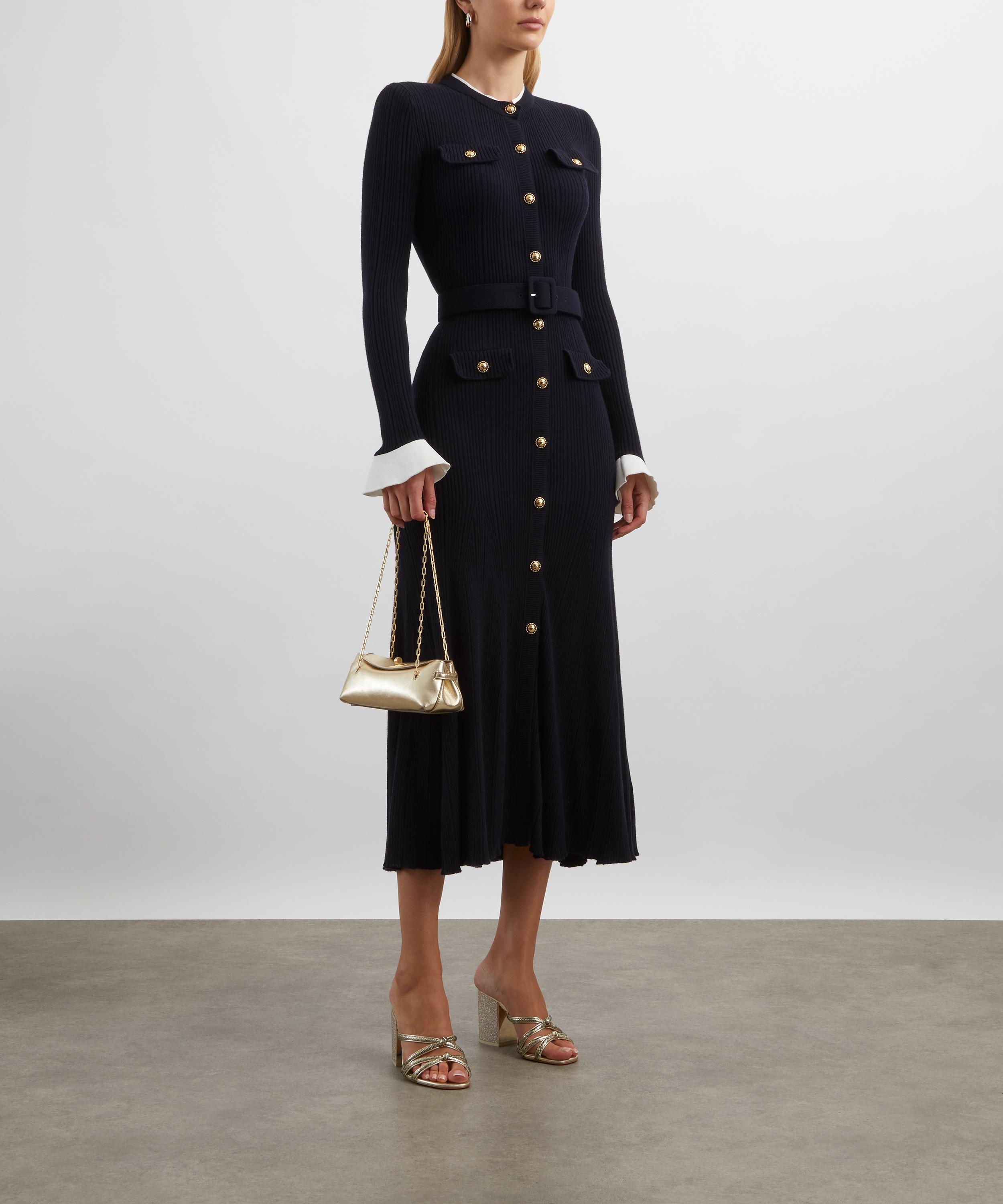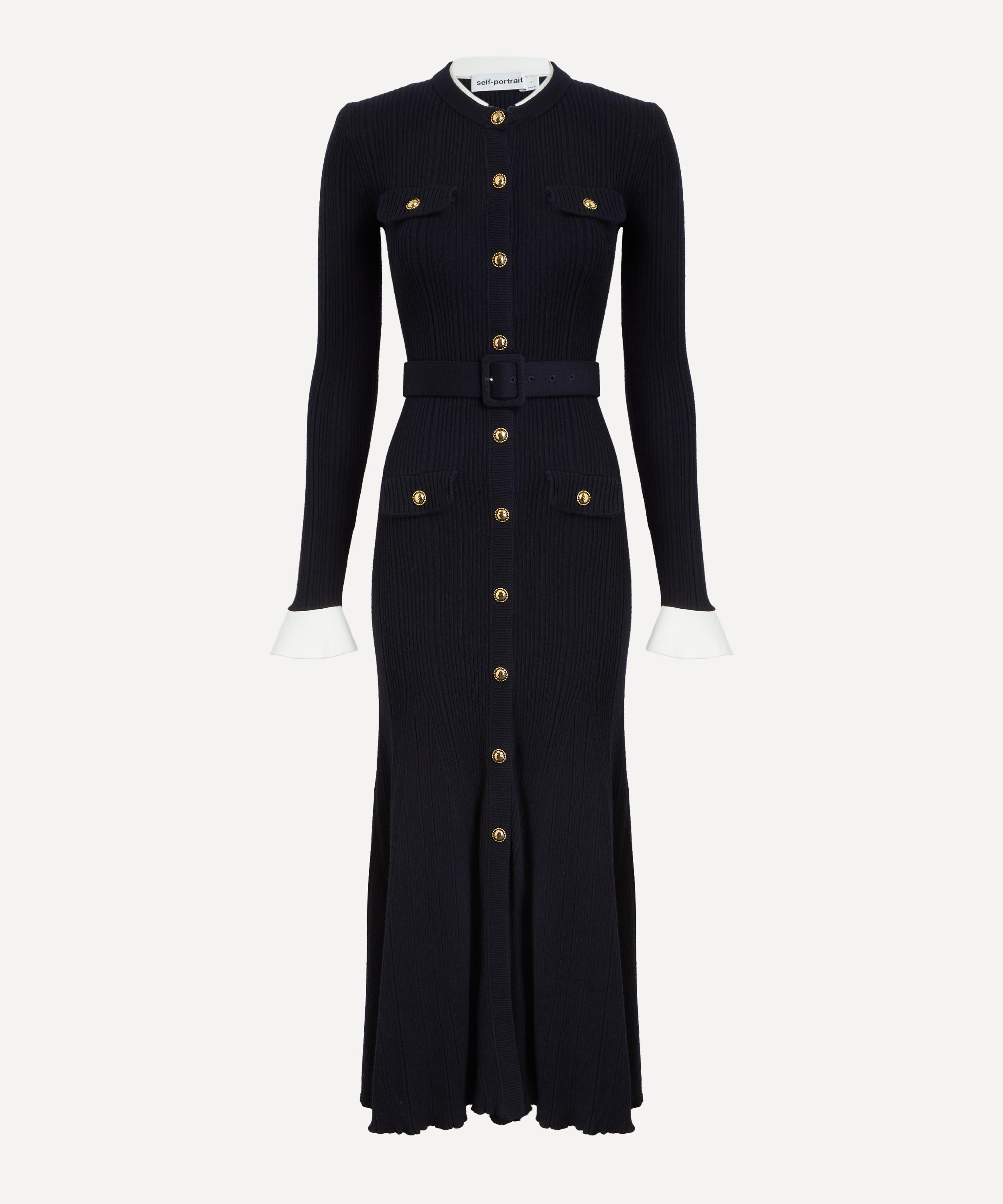 Classically feminine, the Navy Viscose Knit Midi Dress from Self-Portrait defines effortless elegance.