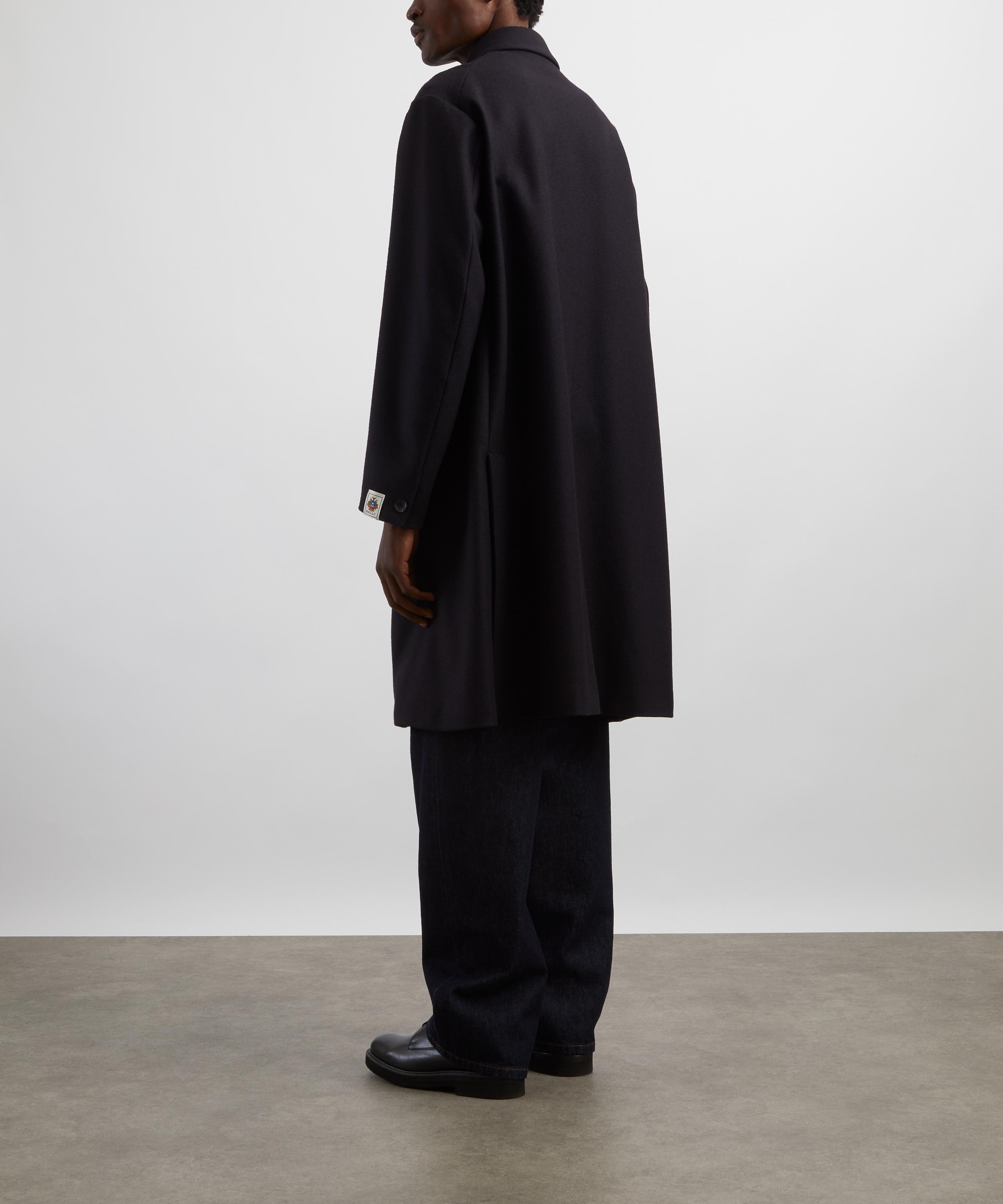 Navy Wool-Blend Double-Breasted Coat