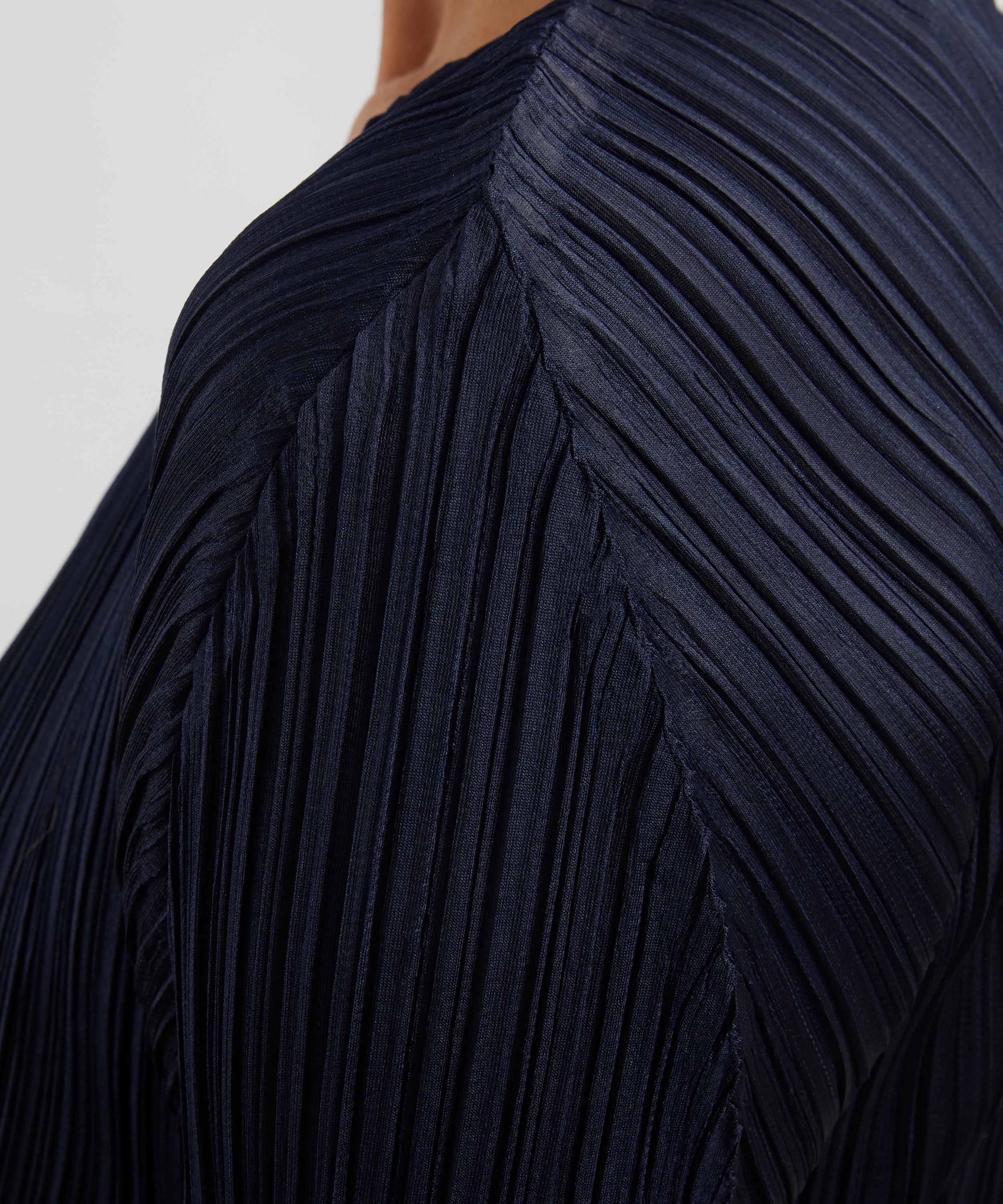 A signature style showcasing Issey Miyake’s innovative pleating technique, the NEW COLOURFUL BASICS 4 Navy Pleated Cardigan is a timeless staple.