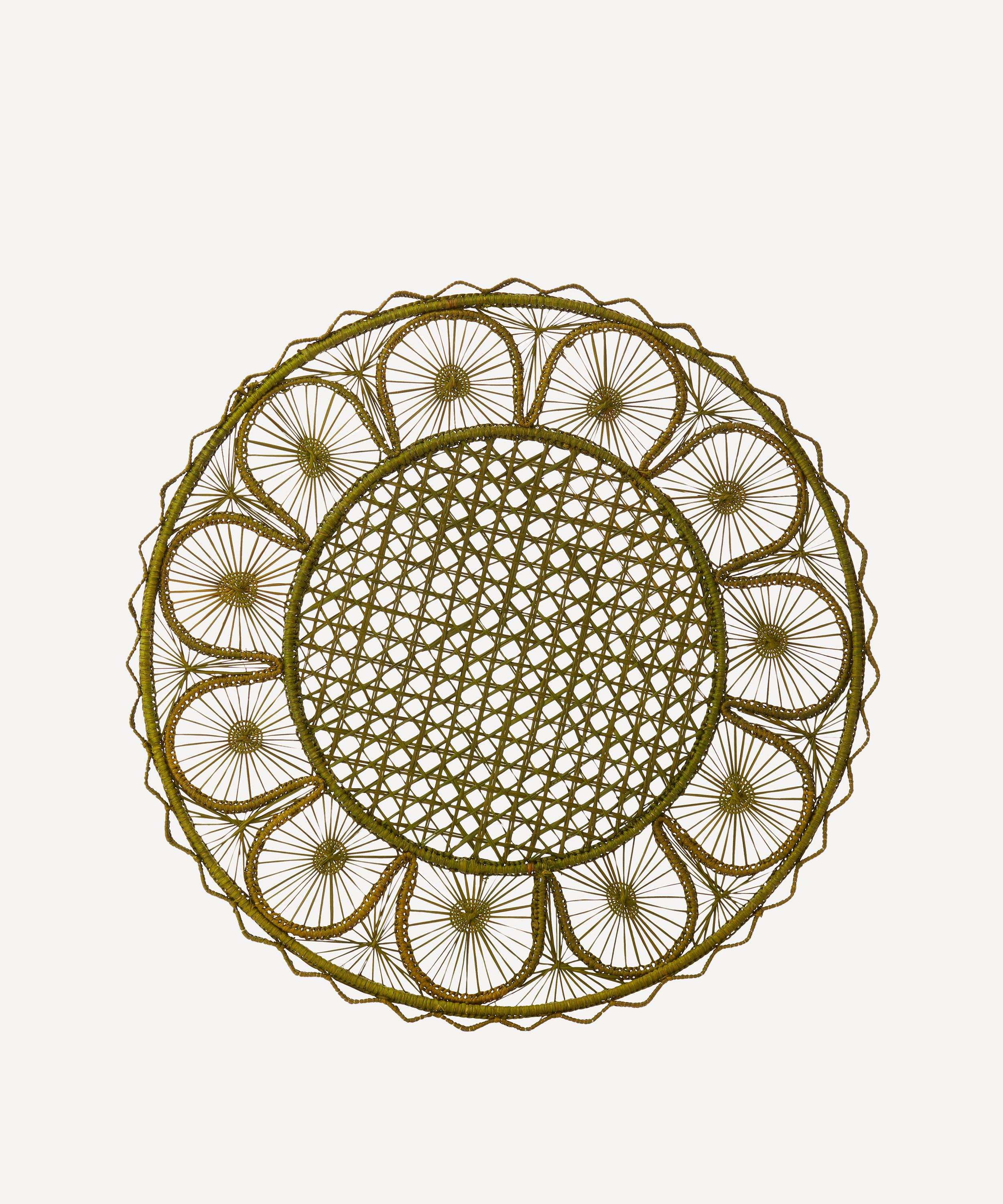 This intricate placemat is meticulously crafted by artisans from Usiacurí, a vibrant town on the Caribbean coast of Colombia. Using a traditional technique that has been passed down through generations, the process begins by shaping a wireframe, over which intricate patterns are woven using Iraca palm. Buy multiples for an artful tablescape or mix and match for an eclectic asthetic.