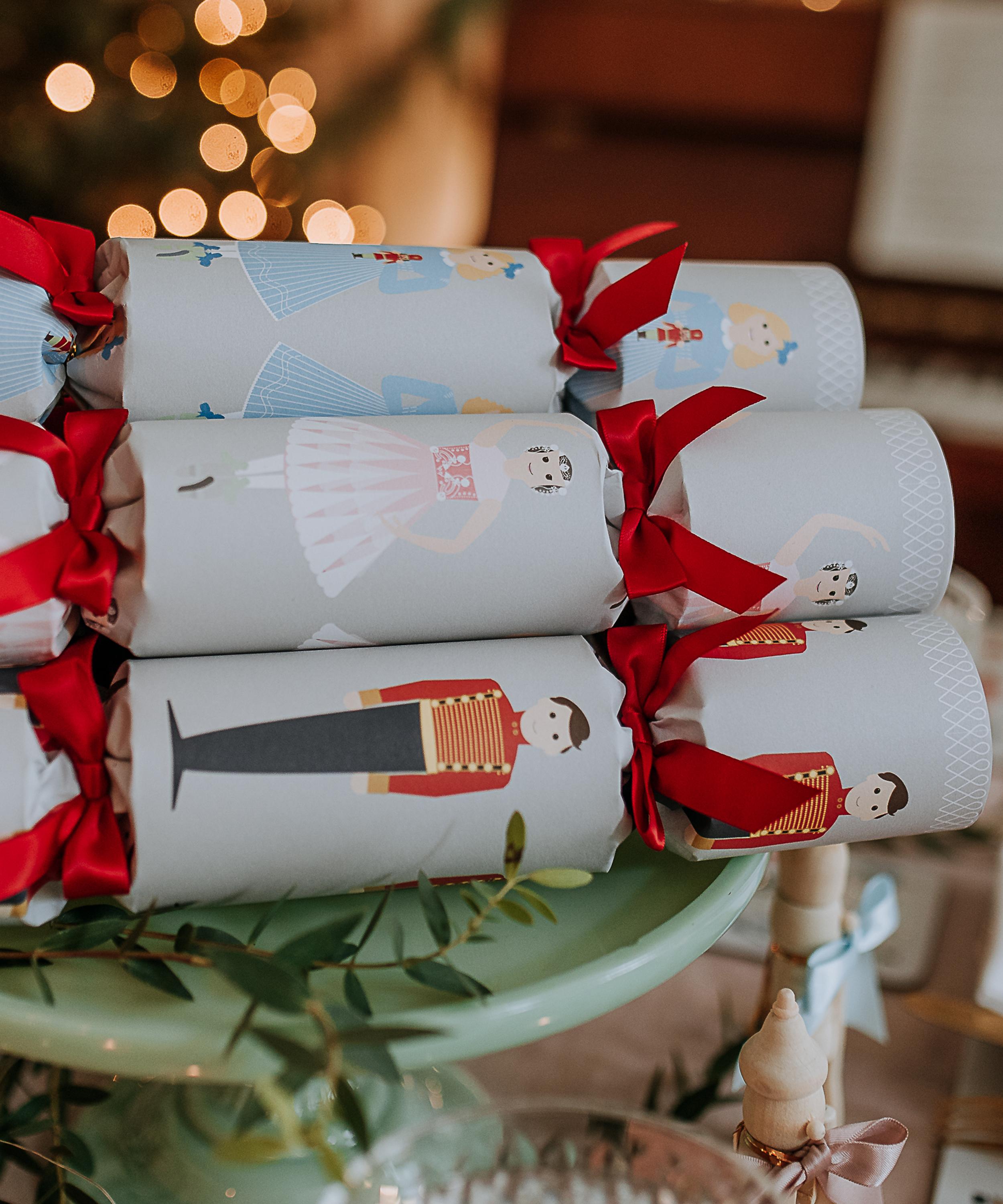 Wrapped in a charming nutcracker print with red ribbons, these luxury crackers will add some excitement to your Christmas dinner, or a centre table of gifts galore. Packing more than a punchline, each cracker opens with a satisfying snap and reveals a mix of luxe surprises and keepsakes to spark smiles all around the table - place alongside seasonal spreads to elevate the festive fun or bring as a delightful host gift.