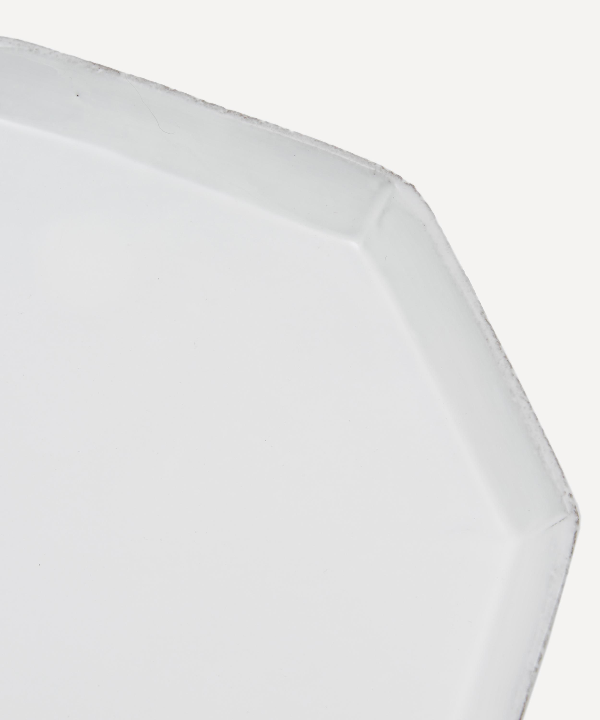 Votary of pre-industrial fabrication, Astier de Villatte is celebrated for being the one and only studio in Paris to hold and harbour the traditions of artisanal ceramic production. Restoring the ancestral systems of moulding and stamping, the Octave platter is made using handcrafting techniques from the Middle Ages which involve moulding a handmade sheet of clay, double firing the ‘biscuit’ piece and glazing the product in white enamel – a lengthy process that involves a drying time of up to one month. Characterised by an octagonal silhouette, the platter is engraved with the brand’s signature crest - depicting an interlacing A & V - alongside the initials of one of the 40 master artisans who created it. Each handmade piece tells a beautiful story, it romances and imparts a sense of nostalgia into its owner. Arrange with other pieces in the Octave collection to breathe an air of authenticity into your dining collection.