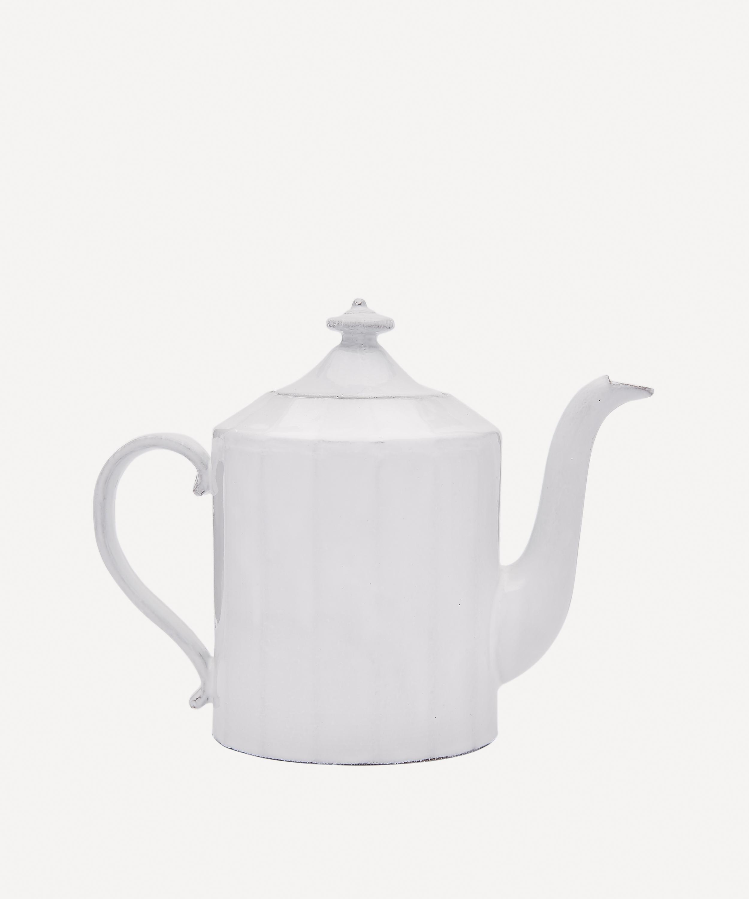 Votary of pre-industrial fabrication, Astier de Villatte is celebrated for being the one and only studio in Paris to hold and harbour the traditions of artisanal ceramic production. Restoring the ancestral systems of moulding and stamping, the Octave teapot is made using techniques from the Middle Ages which involve moulding a sheet of handmade clay, double firing the ‘biscuit’ piece and glazing the product in white enamel – a lengthy process that requires a drying time of up to one month. Characterised by lined scorings, an opulent handle and a delicate spout, the teapot is engraved with the brand’s signature crest - depicting an interlacing A & V - alongside the initials of one of the 40 master artisans who created it. Each handmade piece tells a beautiful story, it romances and imparts a sense of nostalgia into its owner. Pair with other ornate tea mugs and coffee cups from the collection for a coordinated tea party setting.