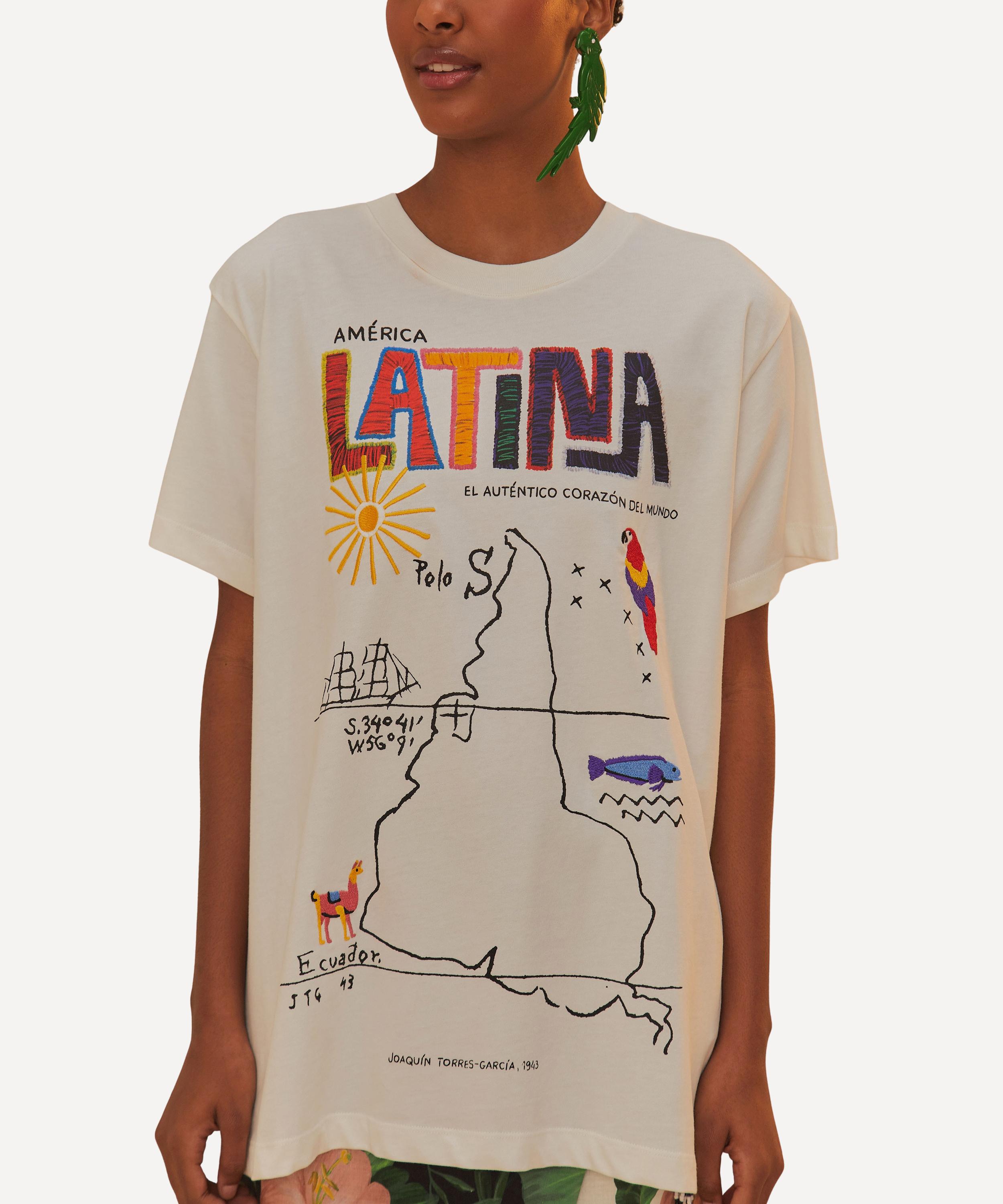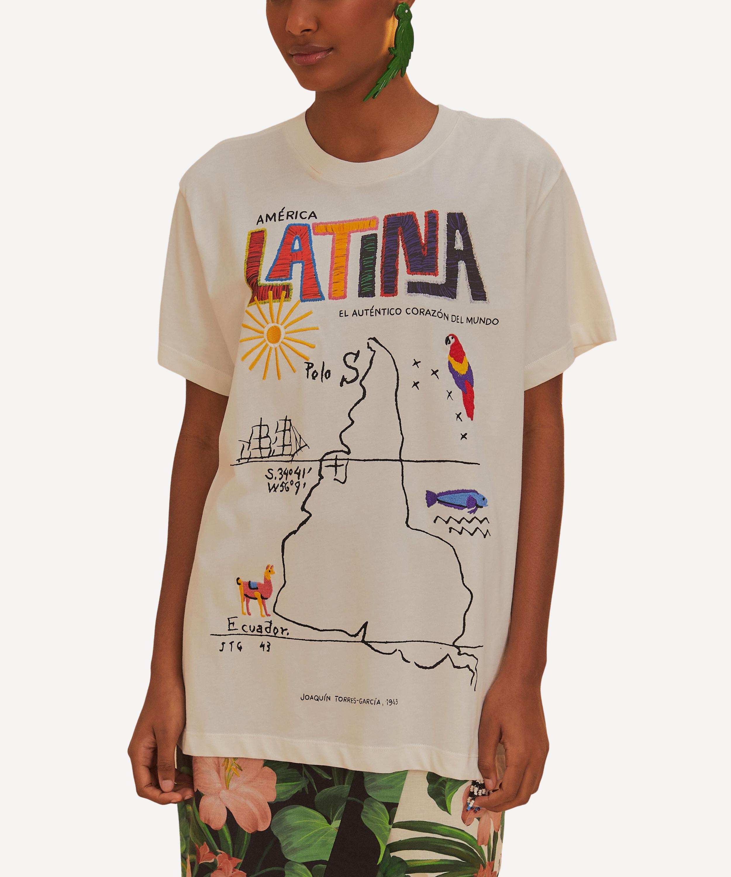 The Off-White America Latina Relaxed T-Shirt from Rio de Janeiro-based label FARM Rio brings some Brazilian vivacity to your new-season edit.