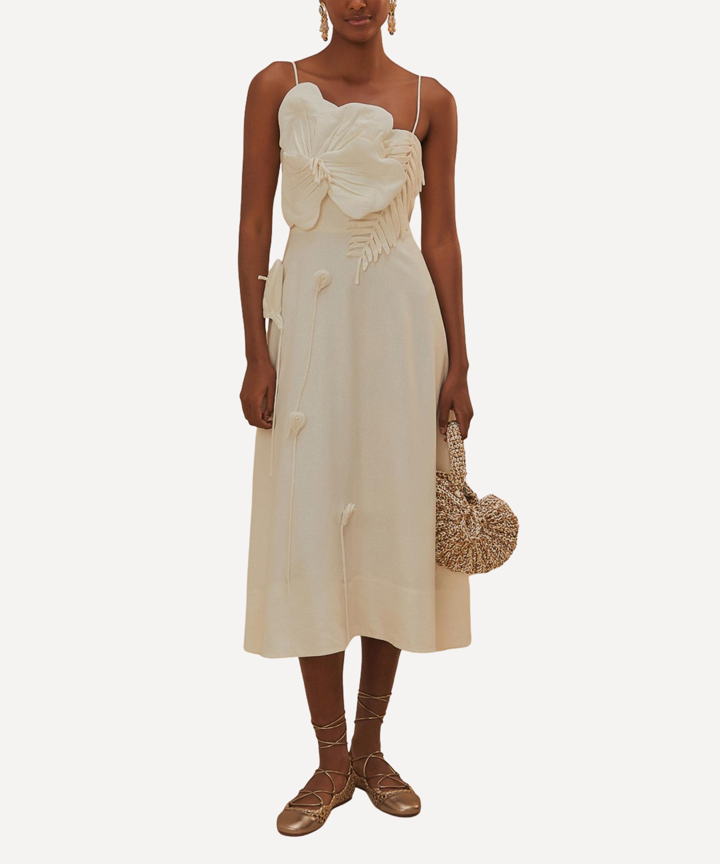 The Off-White Garden Midi Dress from Rio de Janeiro-based label FARM Rio brings some Brazilian vivacity to your new-season edit.
