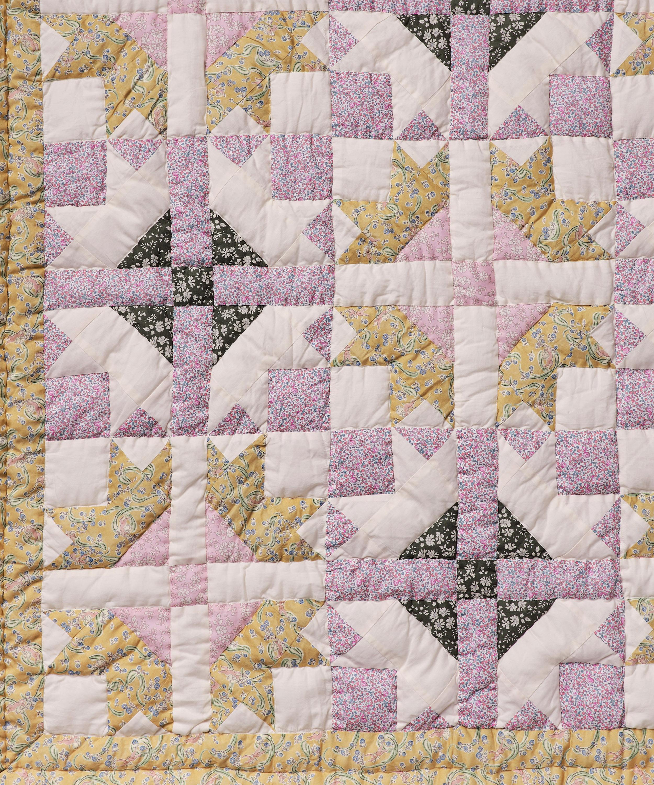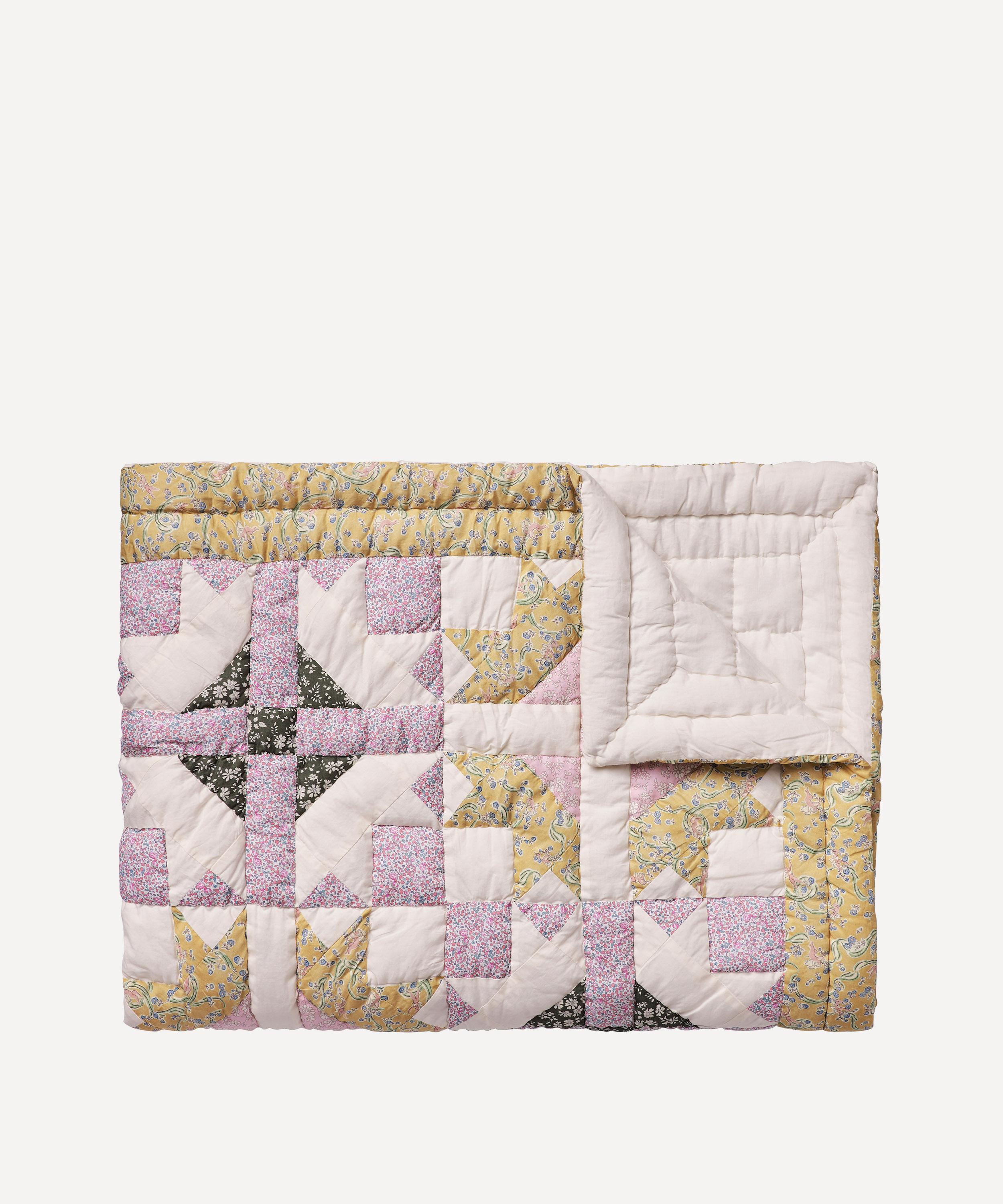 Revolutionise sofa sitting and slumbering with this exclusive patchwork quilt. A charming new patchwork design featuring the new season ‘Love Grandma’ print - this quilt has been handcrafted, stitch by stitch, using classic Liberty Capel prints in Olive and Eloise. A celebration of quality craftsmanship and design, use to inject a creative beam into reading nooks, bedrooms or lackluster living rooms.