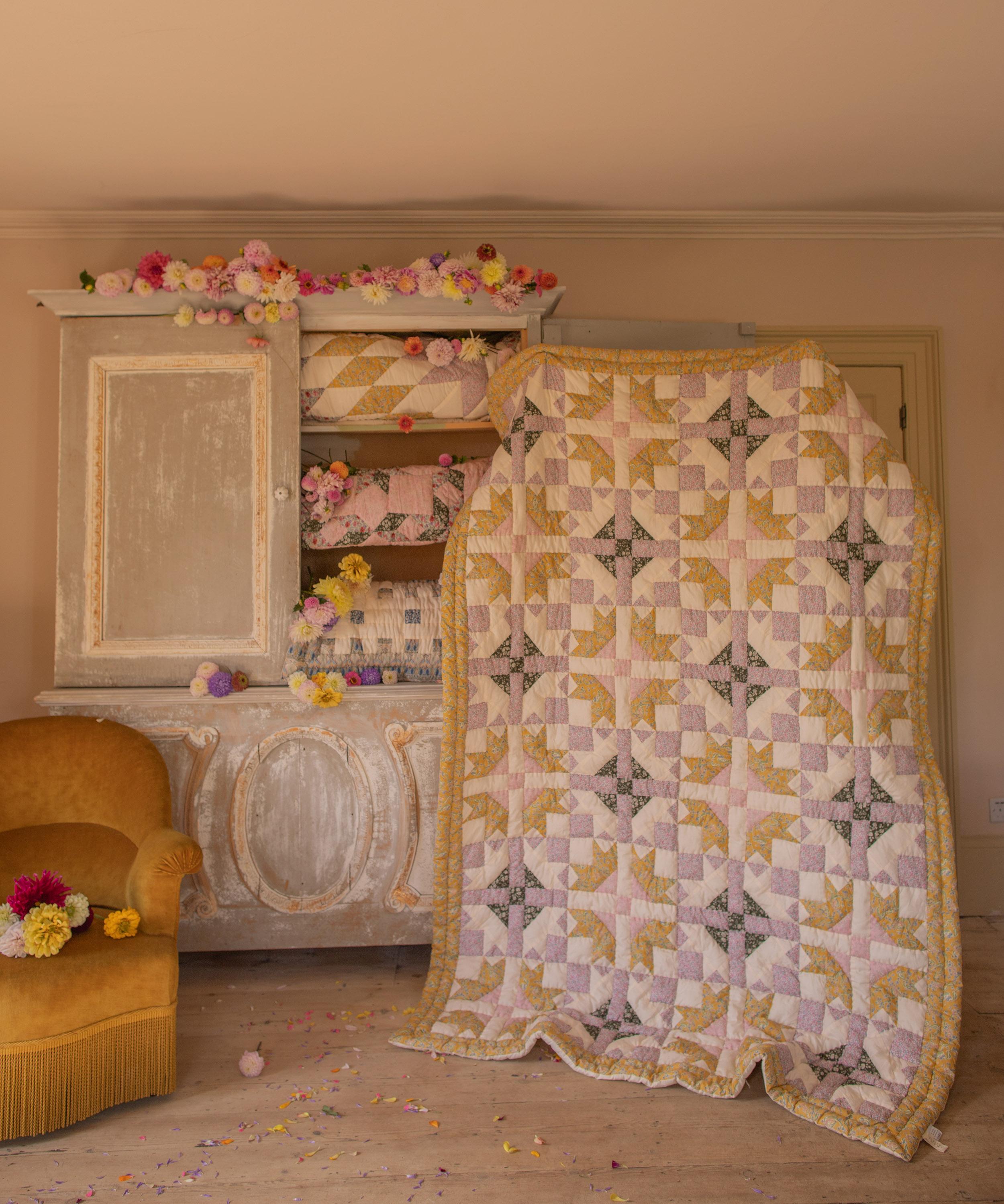 Projektityyny’s Ohdake patchwork quilt fuses the founder’s abiding passion for Nordic sensibility with stunning Liberty fabrics and radiant colourways.
