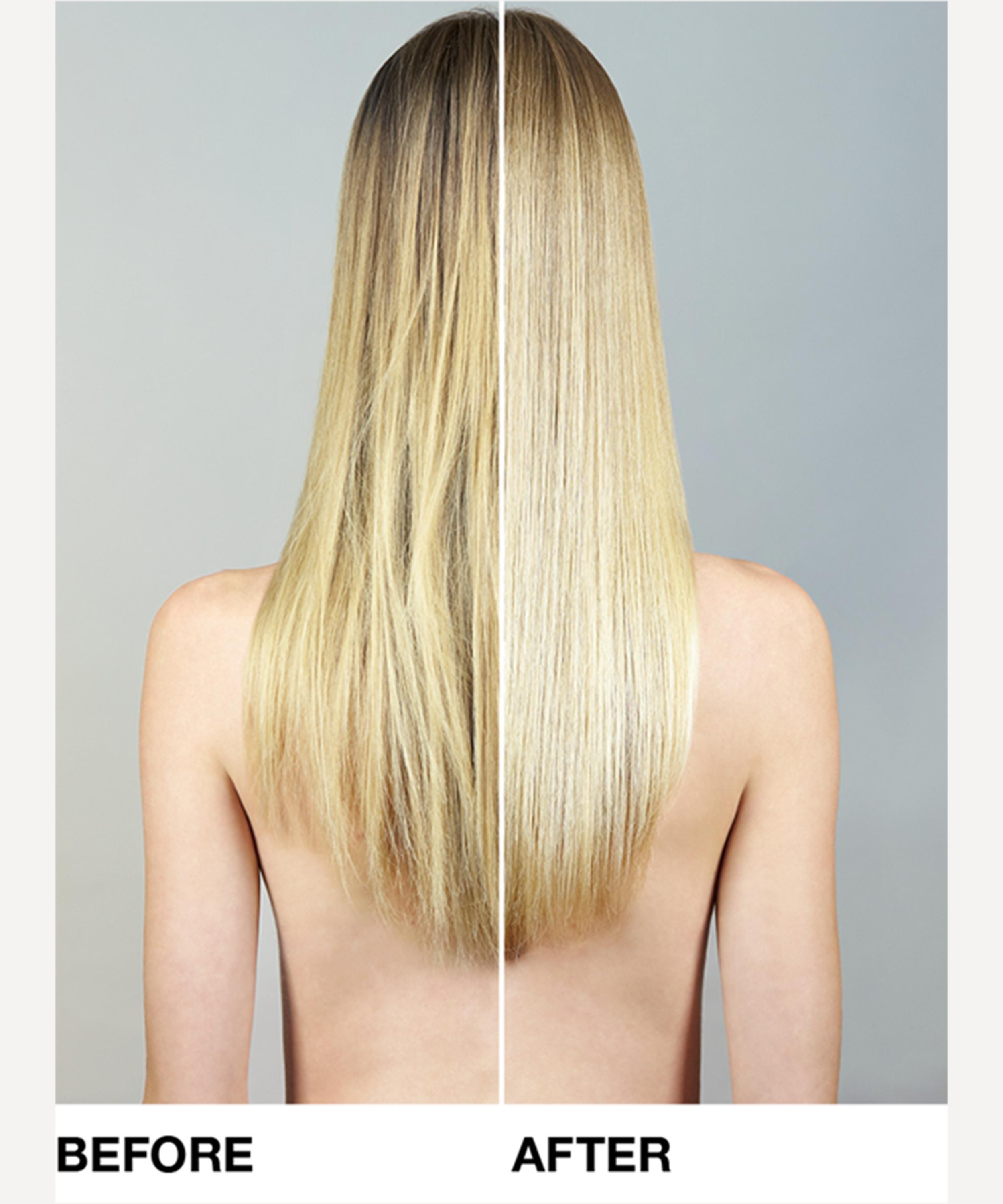 After cleansing your hair with shampoo, remove excess water. Apply to from mid-lengths to ends, processing for just 10 seconds before rinsing. Rinse, then proceed with your conditioner or hair mask.
