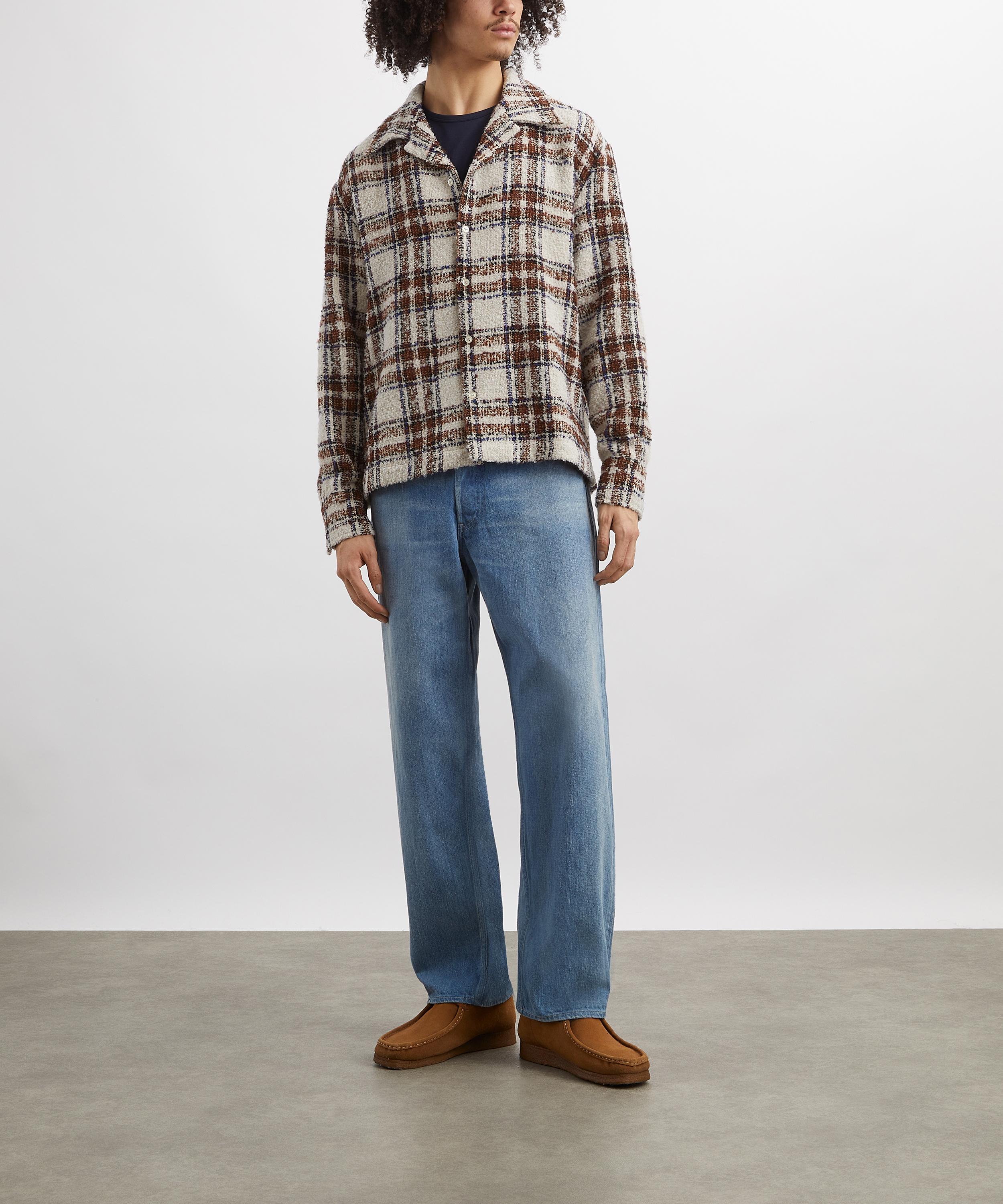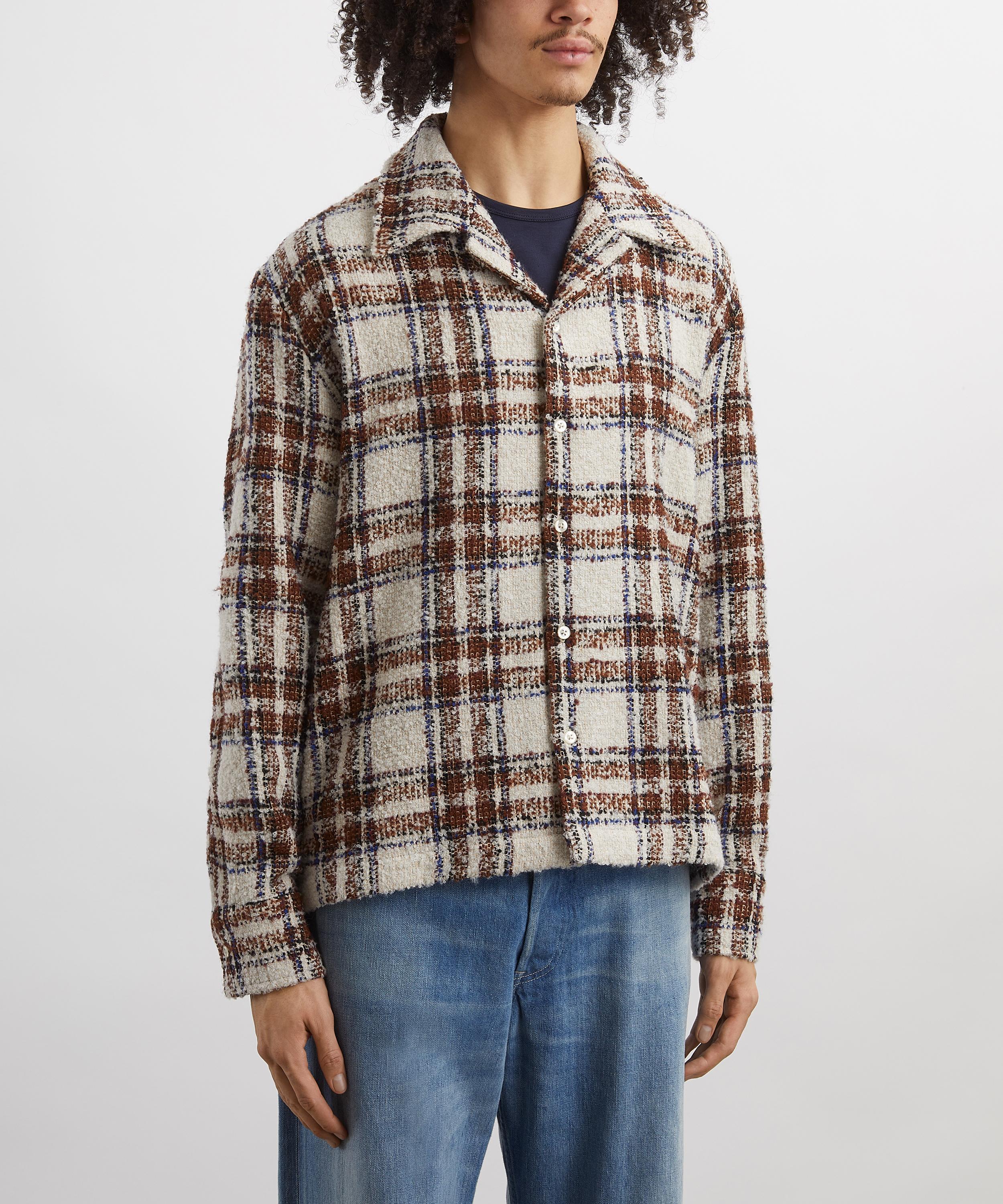 Woven from richly textured bouclé yarn and detailed with an all-over plaid motif, this tactile shirt offers a relaxed silhouette, a classic spread collar, and refined mother-of-pearl button fastening.