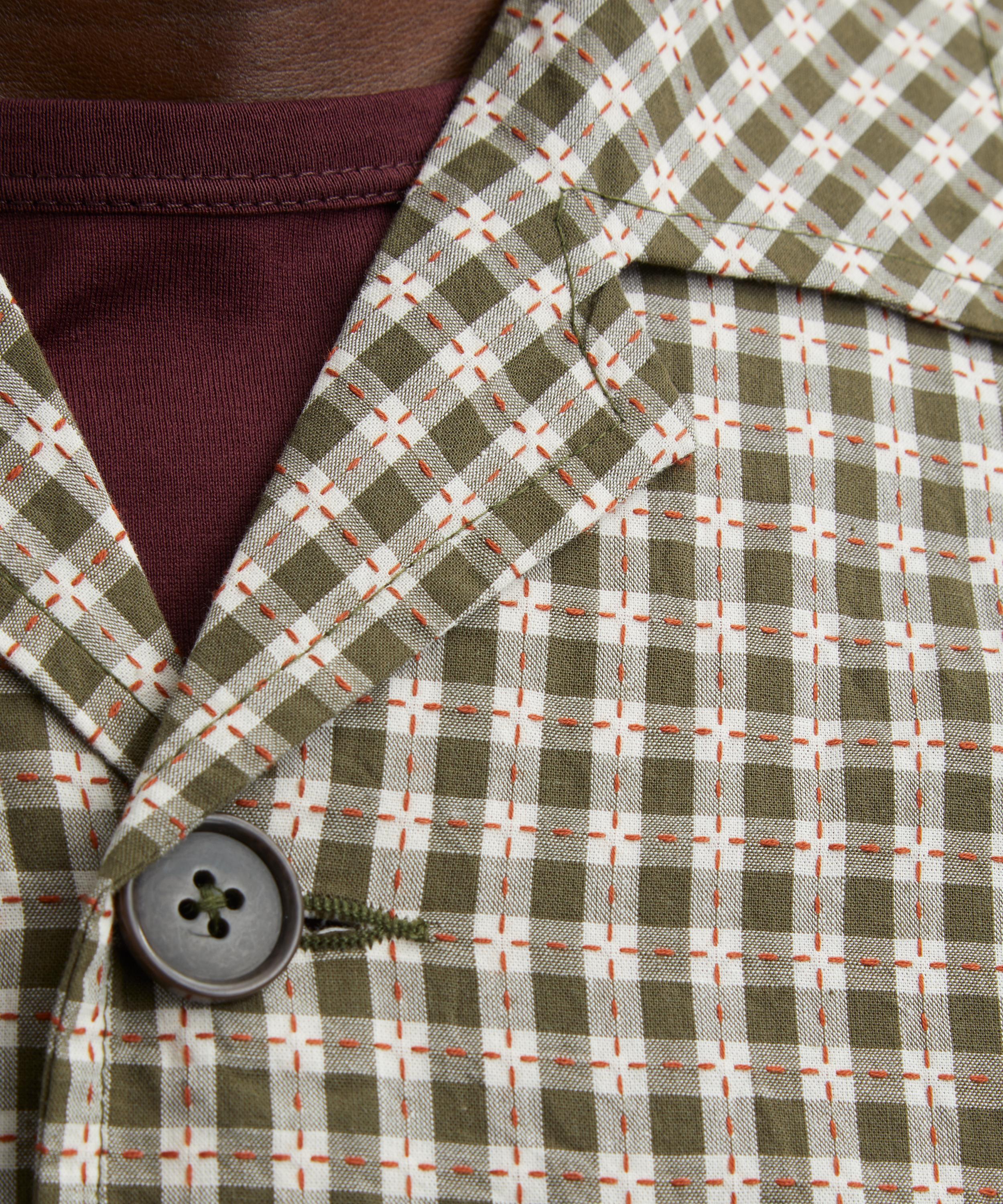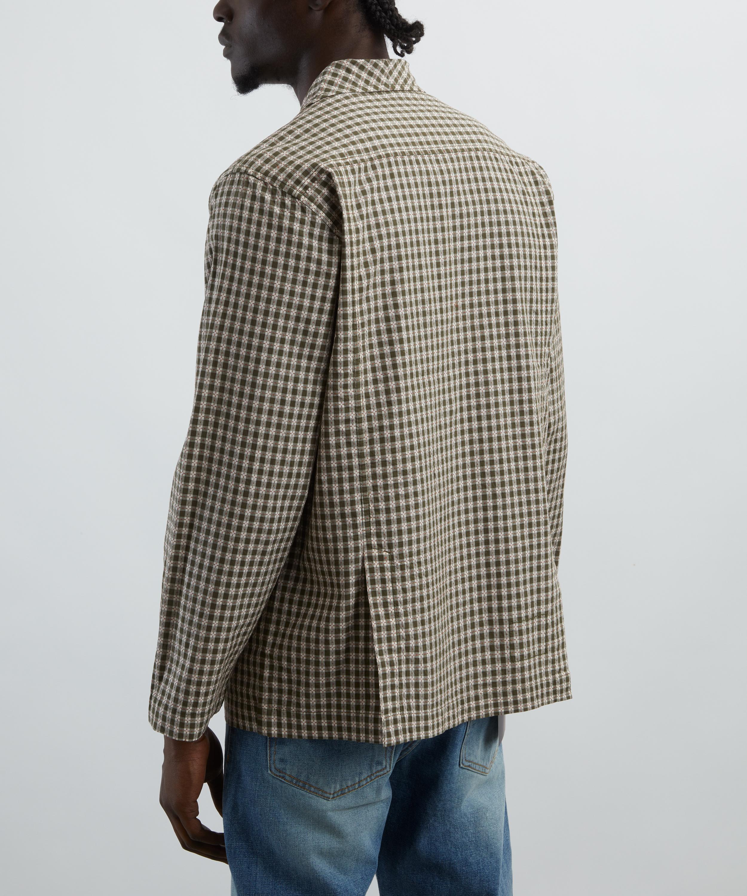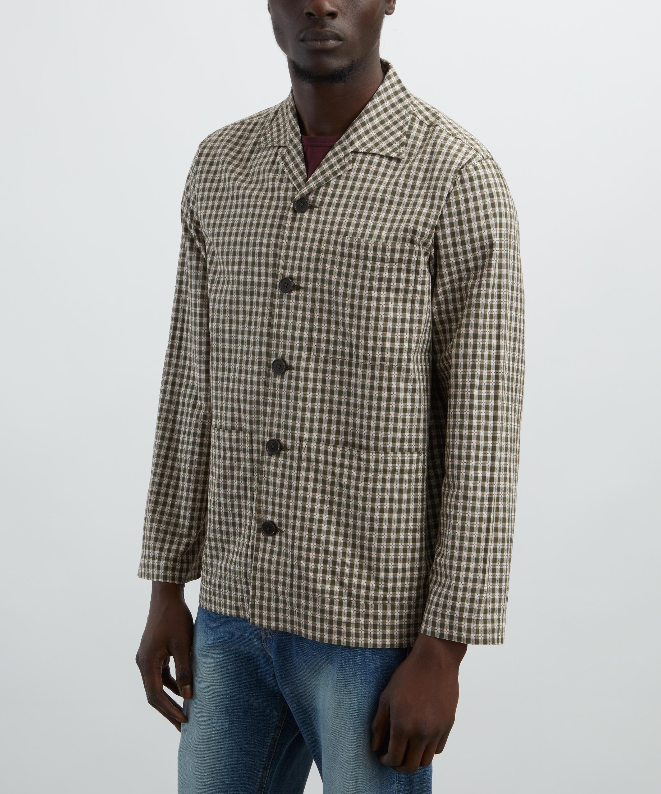 Crafted from cotton adorned with a classic olive check, the Cancun Jacket offers the casual feel of a shirt. Designed for a boxy fit with a notched collar and button fastening, it’s finished with multiple pockets for a timeless, utilitarian finish.