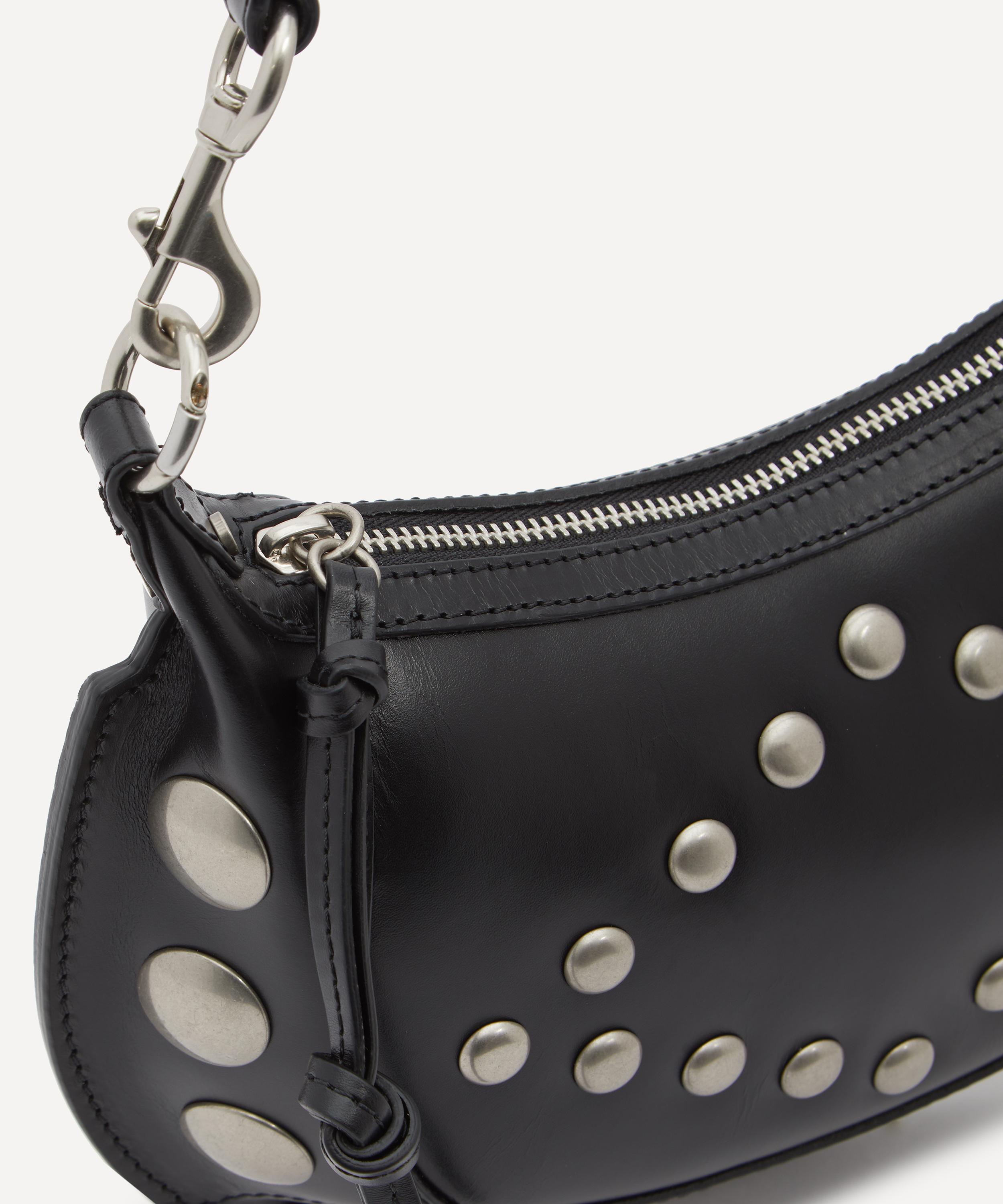 The Oskan Moon shoulder bag from Isabel Marant boasts an iconic half-moon shape, accentuated with an eye-catching studded exterior. Poised to elevate your everyday edit, this elegant bag is crafted from smooth leather and features an adjustable, removeable shoulder strap, a secure zip closure and is complete with a silver-tone stud design to the front.