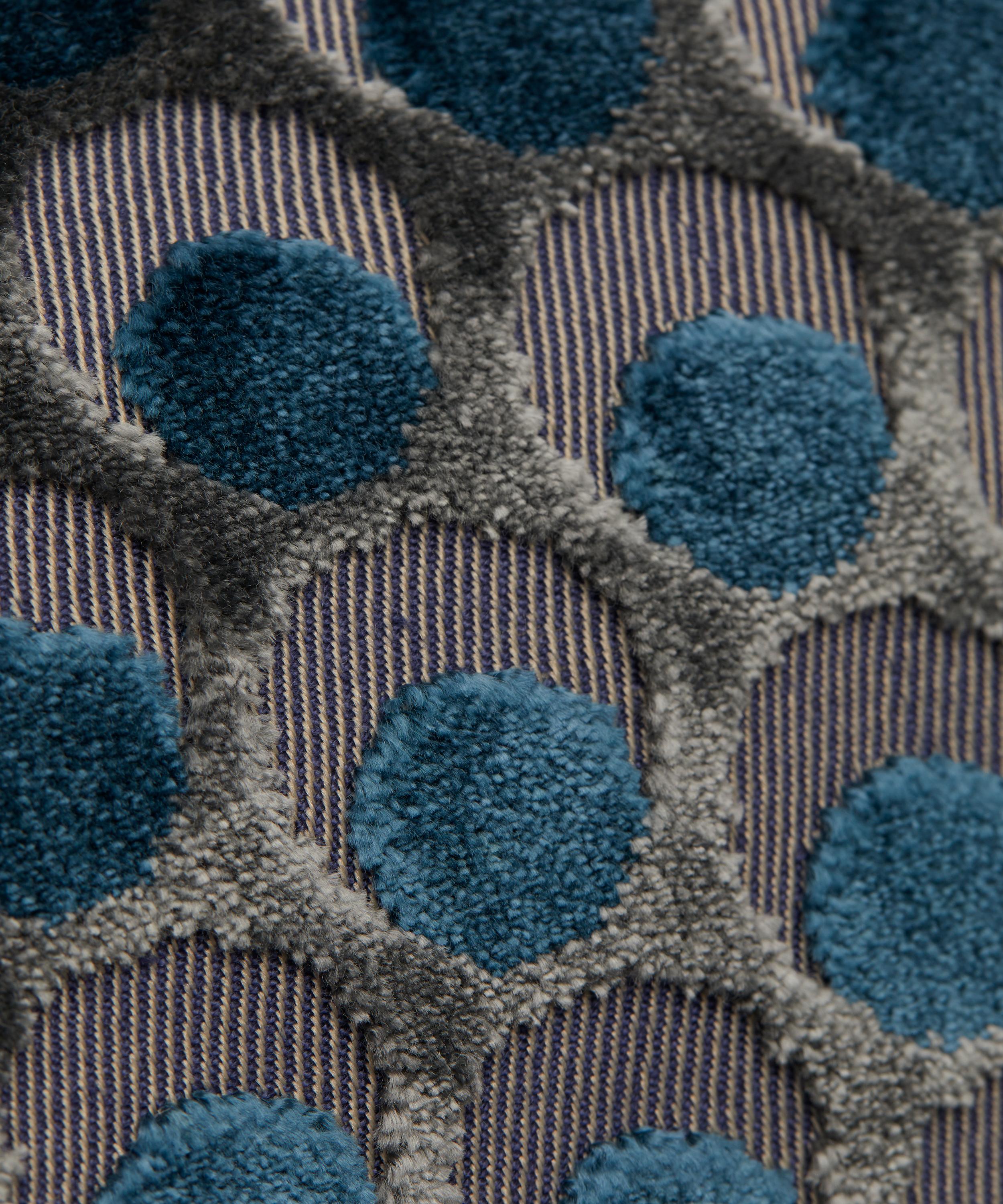 The design appears on a beautiful mixed-fibre cut-pile velvet – luxurious in feel and vibrant in colour, this tactile cotton fabric contains some polyester for added durability and softness. Suitable for heavy domestic and severe contract use, Cut Velvet is perfect for creating thick drapery, luxurious upholstery or even elegant throw or bolster cushions.