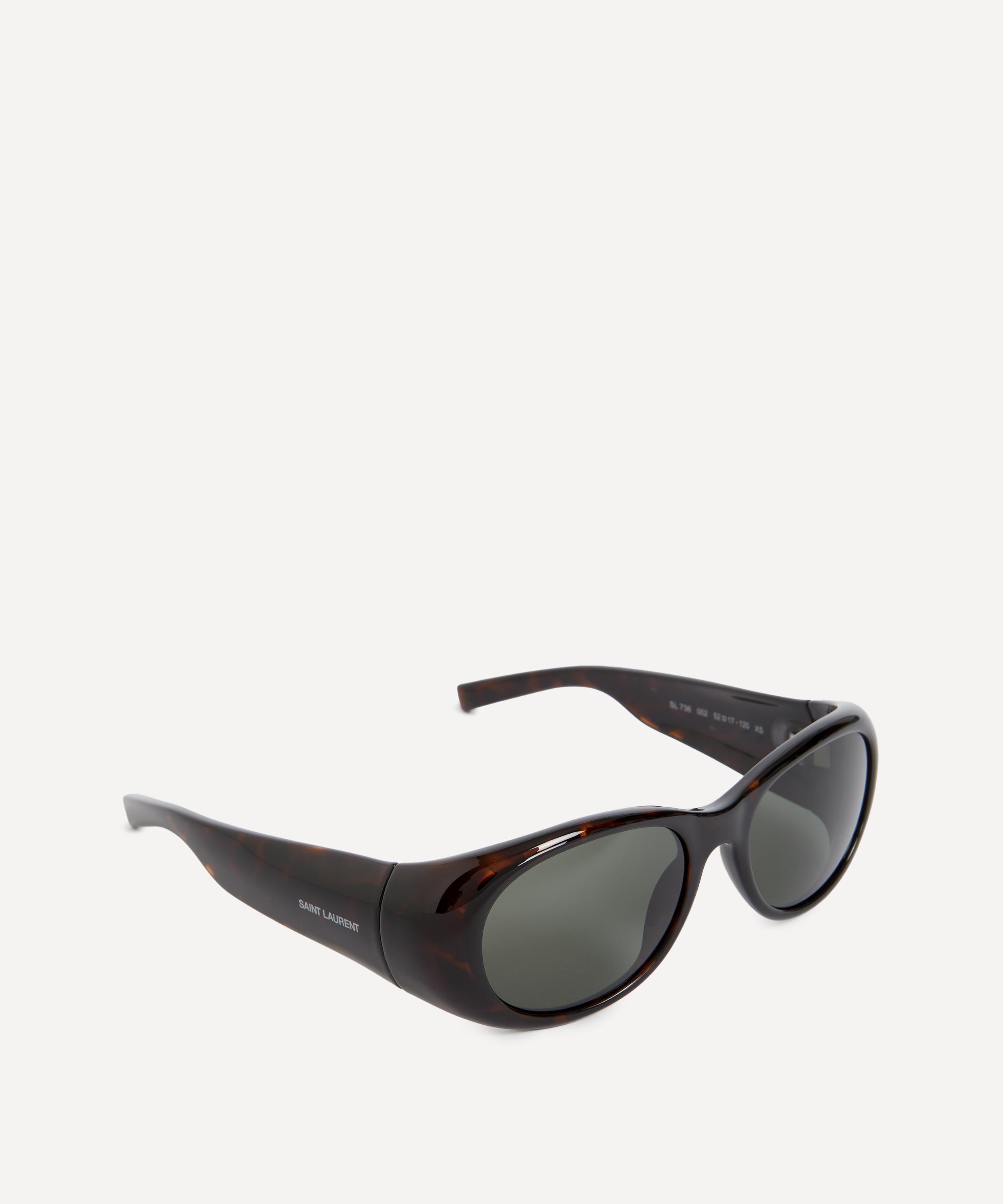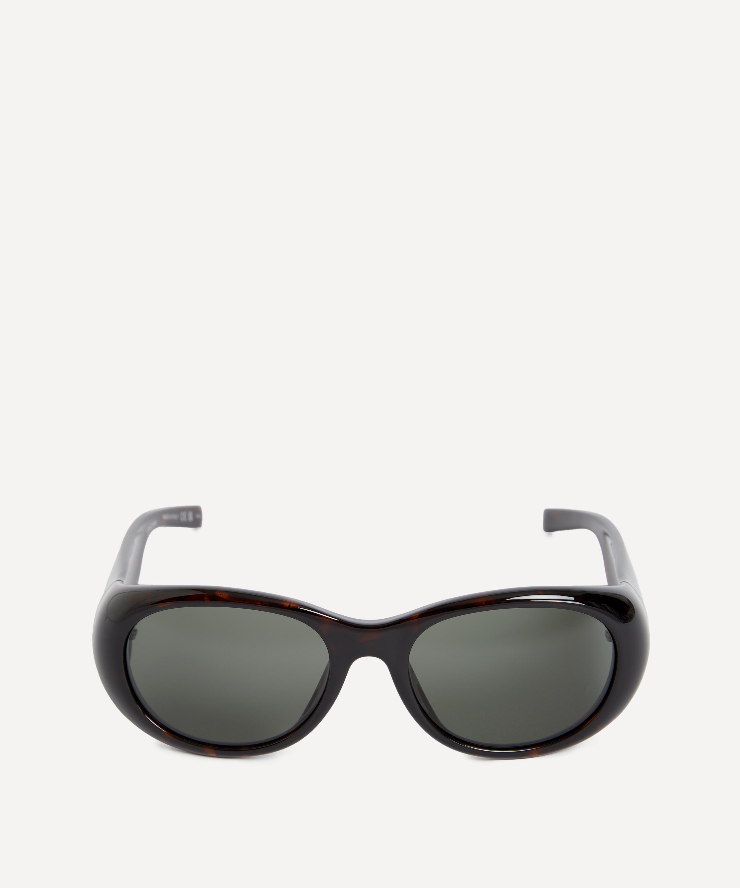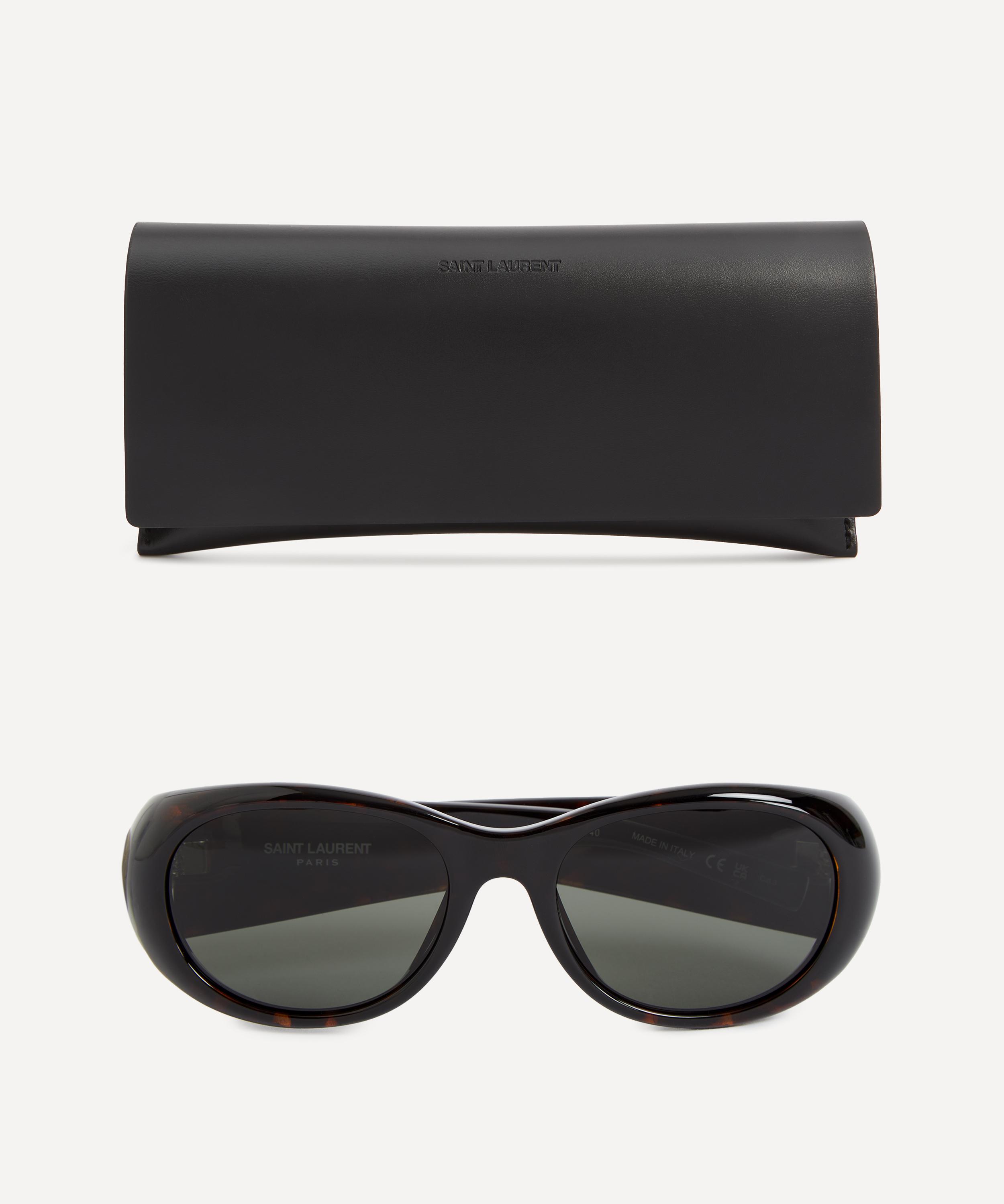 Confidently complete any curated look with these stylish oval sunglasses from fashion-house Saint Laurent. A must-have pair in your repertoire, they feature a wide, chunky silhouette crafted from black acetate with UV-protective, grey tinted lenses, and adorned with a subtle brand logo to the temples - perfect for sunny city strolls, or days spent on the beach.