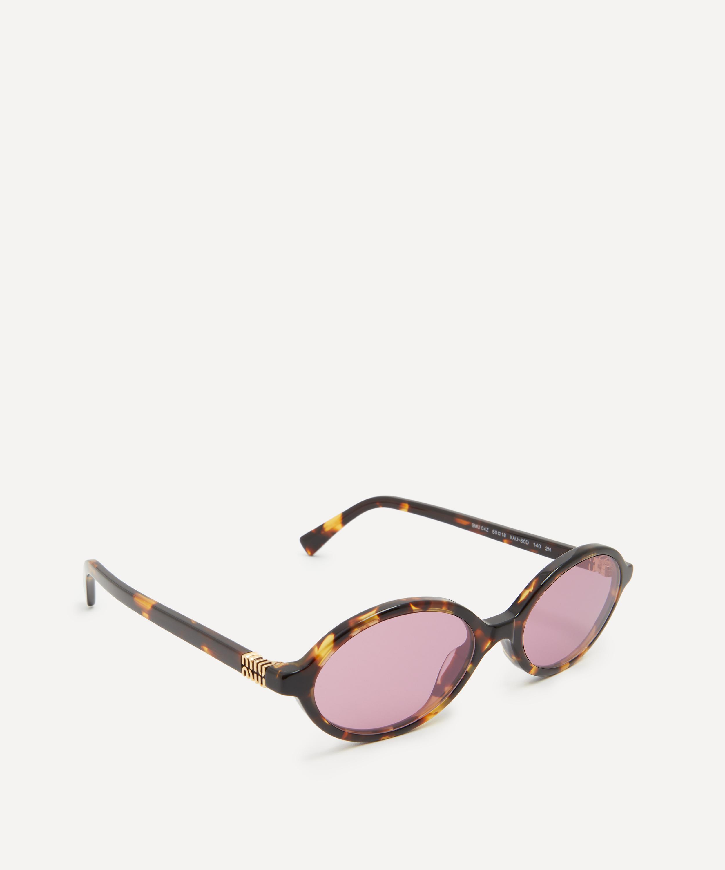 Heighten the impact of any attire with these oval sunglasses from Miu Miu. Expertly crafted from Havana acetate, to create a statement pair that instantly draws the eye, these sunnies are fitted with a saddle nose bridge and tinted lenses to shade and protect your eyes from UV light. Complete with the signature branding at the temples, they make for an ultra-chic finish to your curated looks.