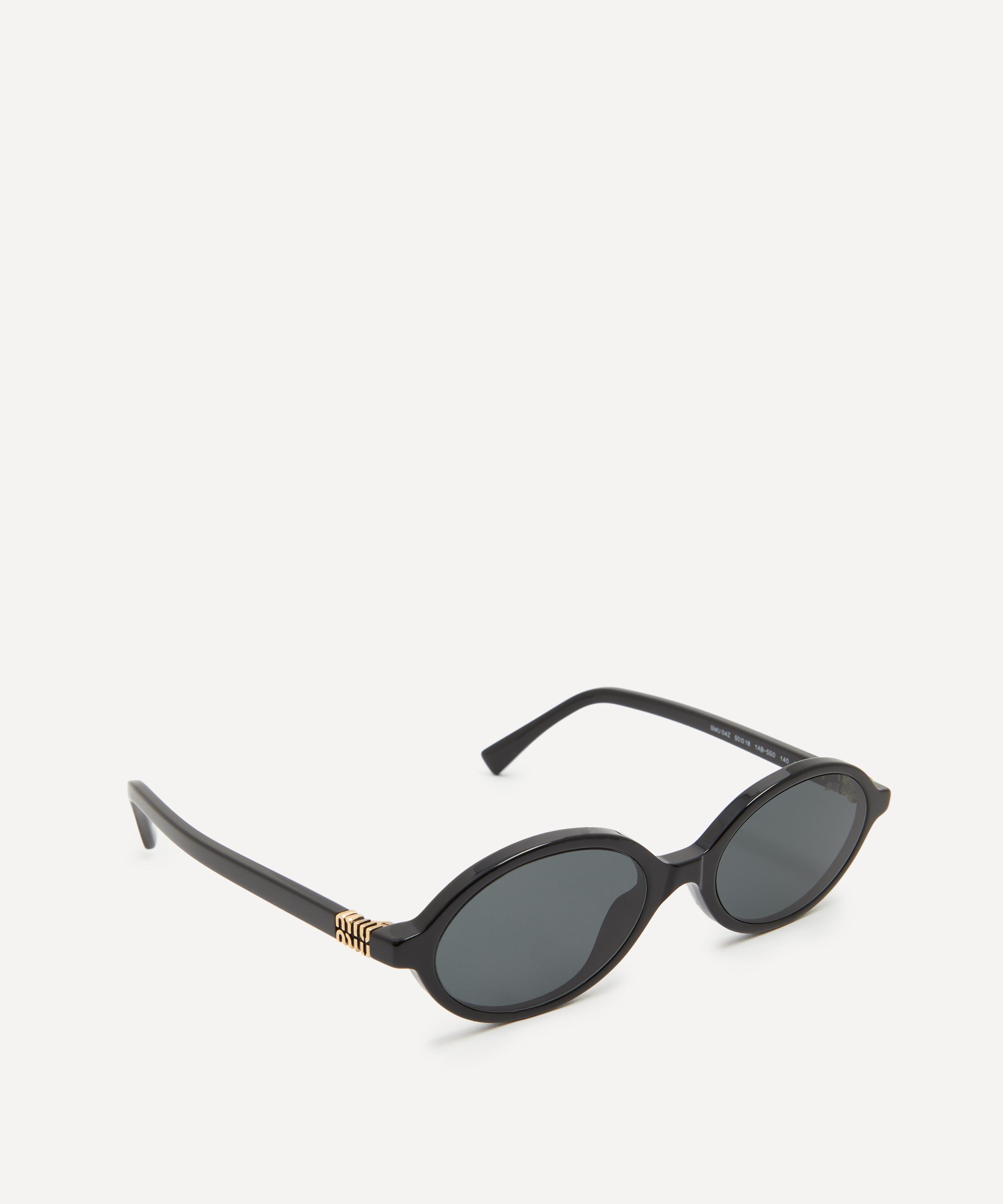Heighten the impact of any attire with these oval sunglasses from Miu Miu. Expertly crafted from black acetate, to create a statement pair that instantly draws the eye, these sunnies are fitted with a saddle nose bridge and grey tinted lenses to shade and protect your eyes from UV light. Complete with the signature branding at the temples, they make for an ultra-chic finish to your curated looks.