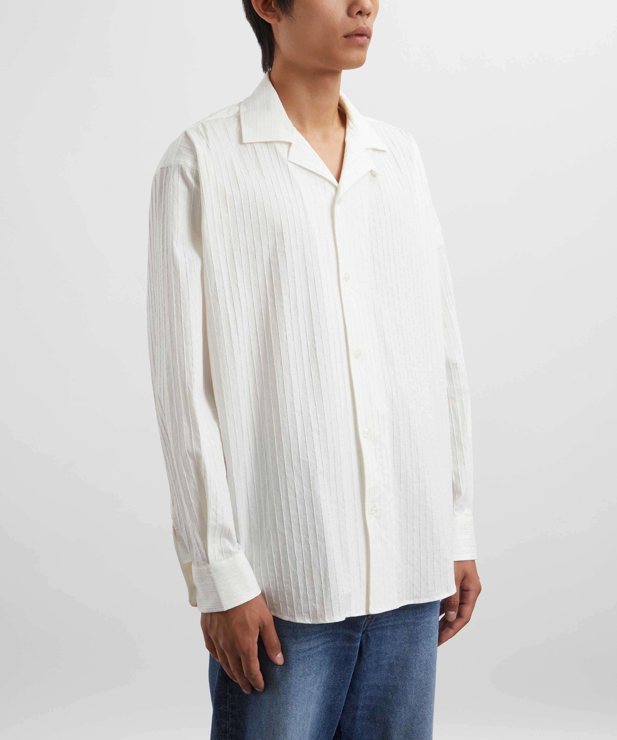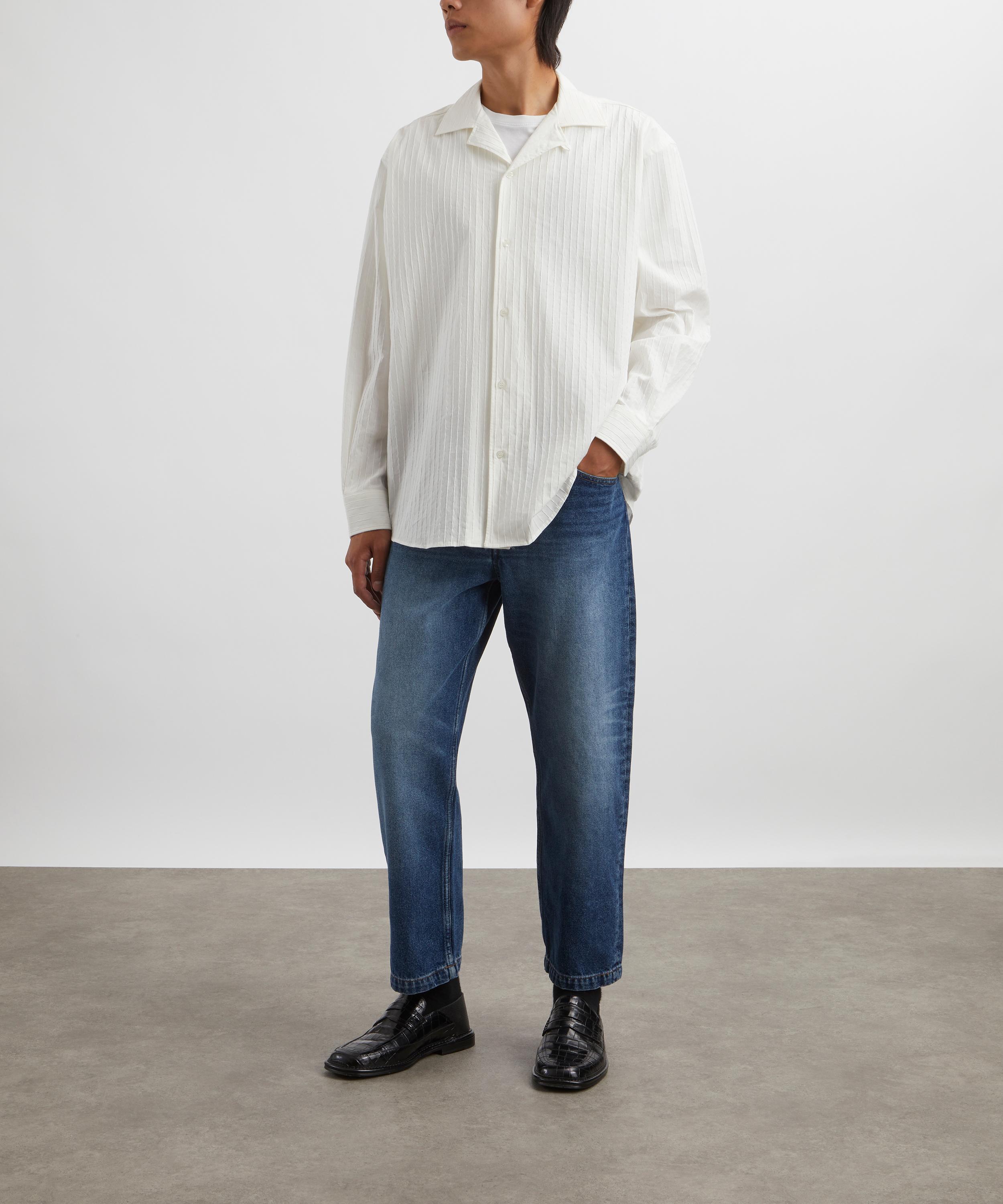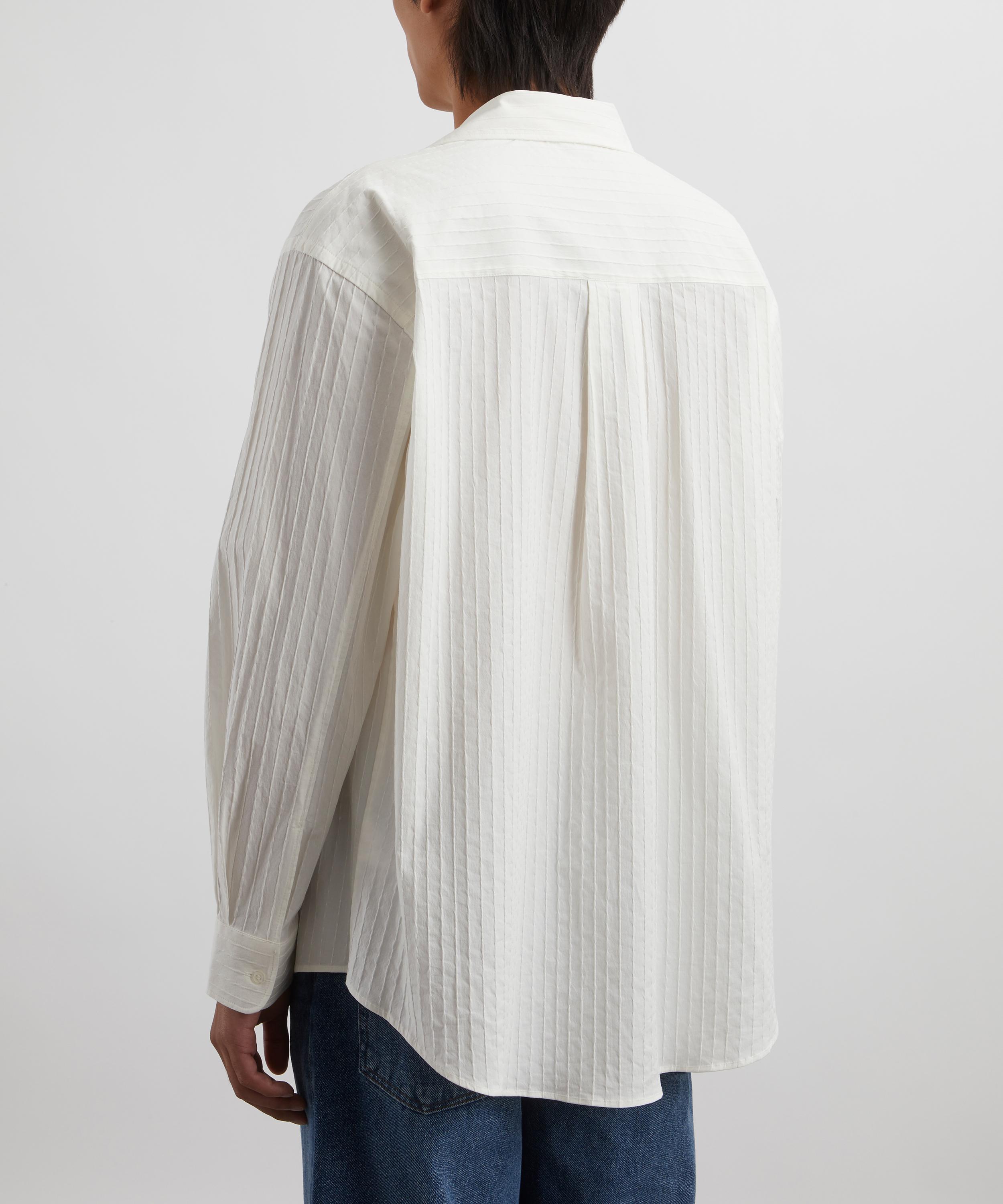 Crafted from structured cotton with a tactile, tonal pinstripe, this long-sleeve shirt is designed for an oversized fit complete with dropped shoulders. Secured with a front button placket, its camp collar lends a relaxed finish.
