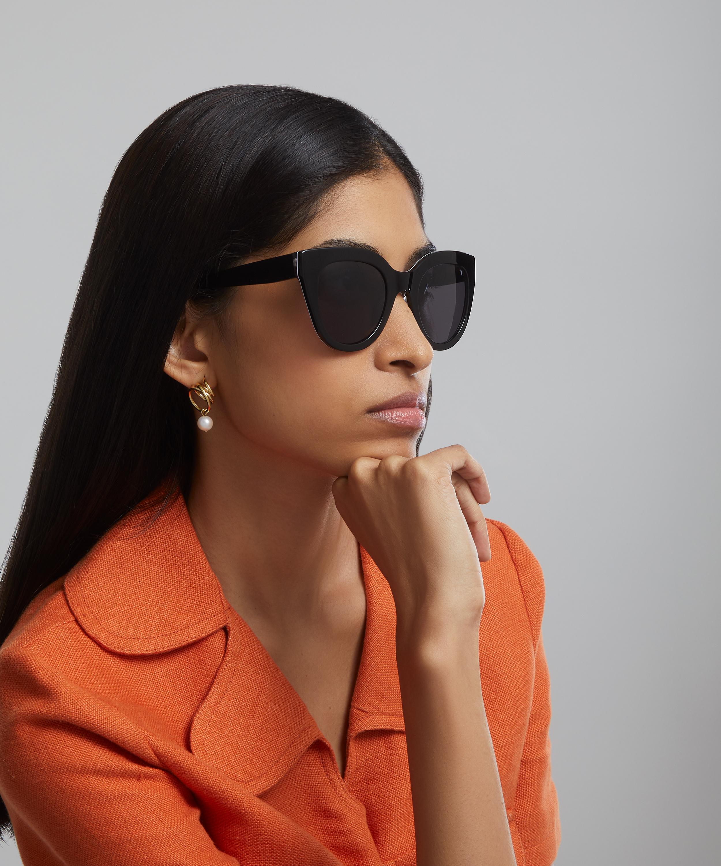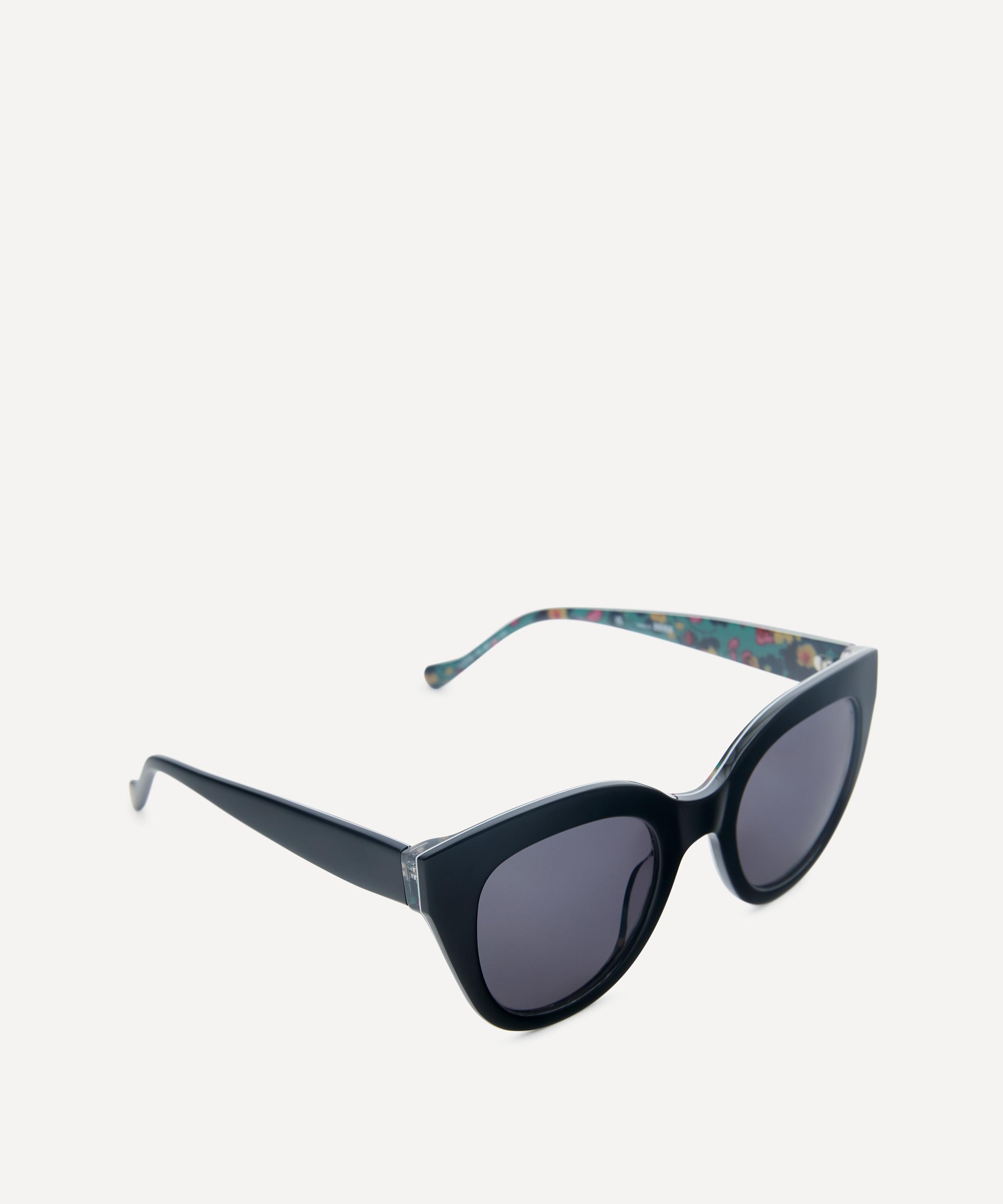 Make a bold statement and get the look of the season with these cat-eye sunglasses from Liberty. Transforming iconic shades with a touch of Liberty print, this sleek pair are crafted to an oversized silhouette from durable acetate, accentuated by a black colourway and grey-tinted lenses. Complete with subtle branding to the left temple, the coveted design stands out with our Liberty print, perfect for adding a stylish finish to any outfit.