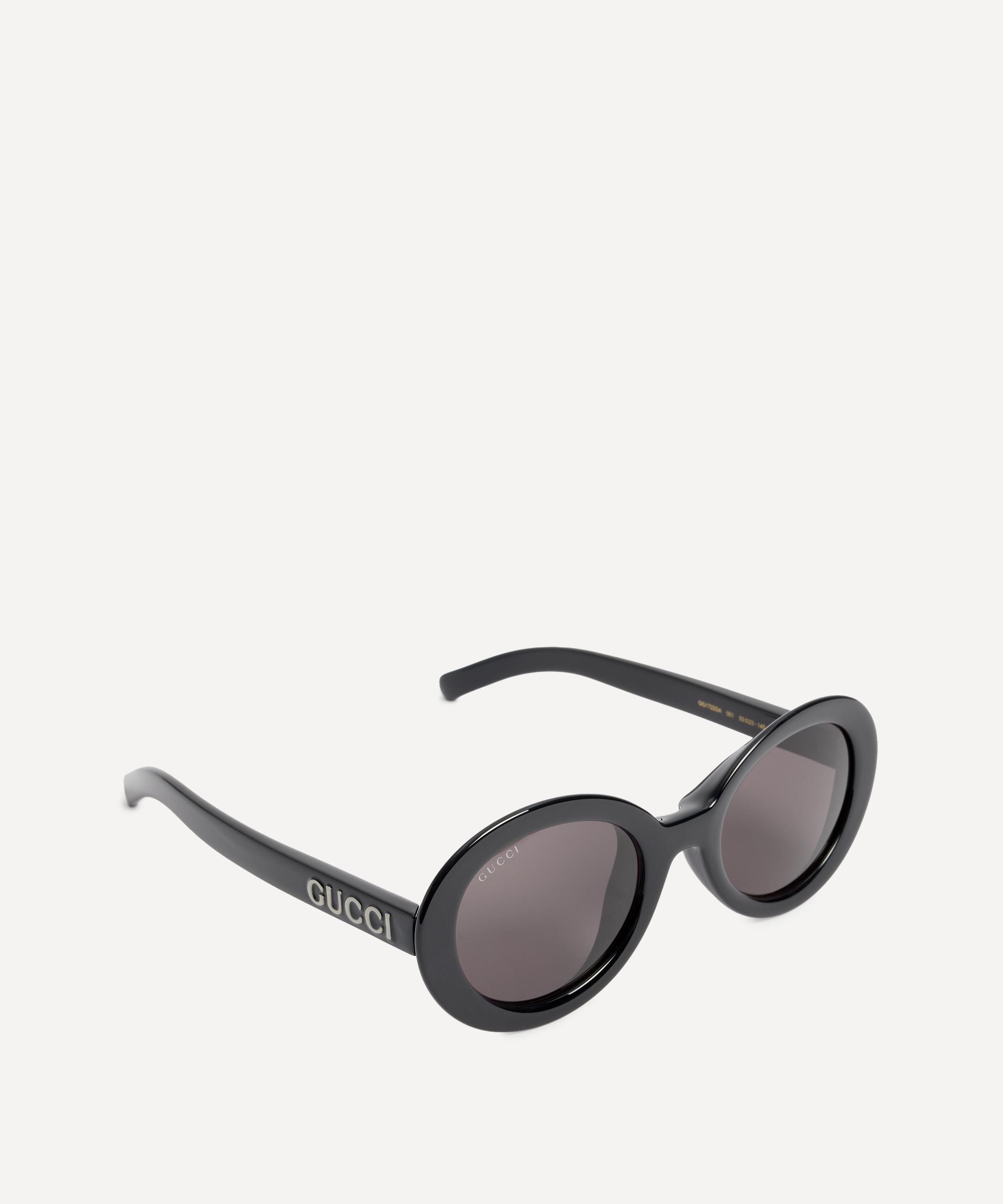 Put a statement spin on your outfit with these round sunglasses from Gucci. Spotlighting the brand’s penchant for retro-inspired frames, they feature an oversized silhouette, crafted from black acetate fitted with grey-tinted lenses to shade and protect your eyes from the sun. An accessories staple to bring out year-round, this pair is finished with a brand logo to the temples.