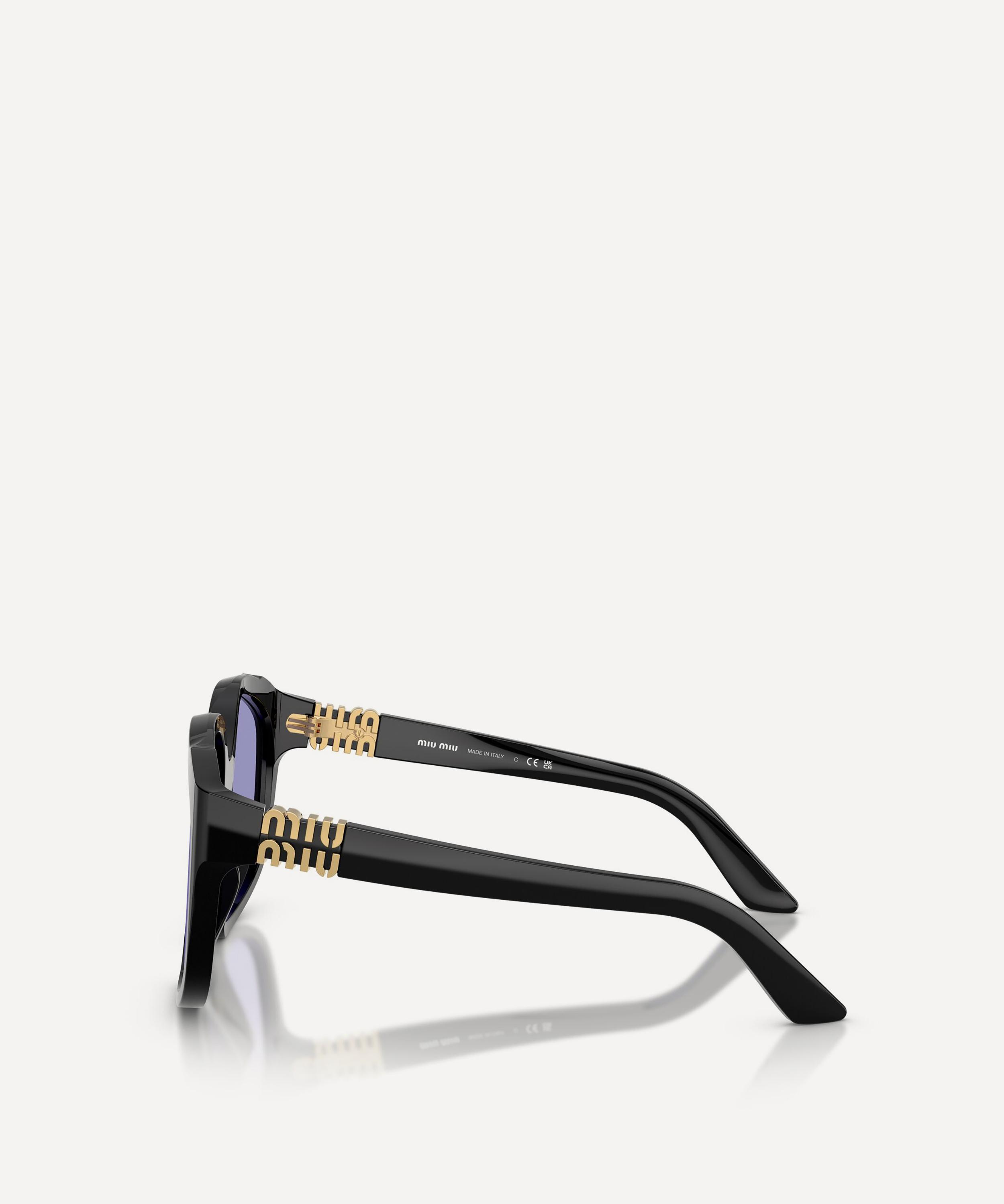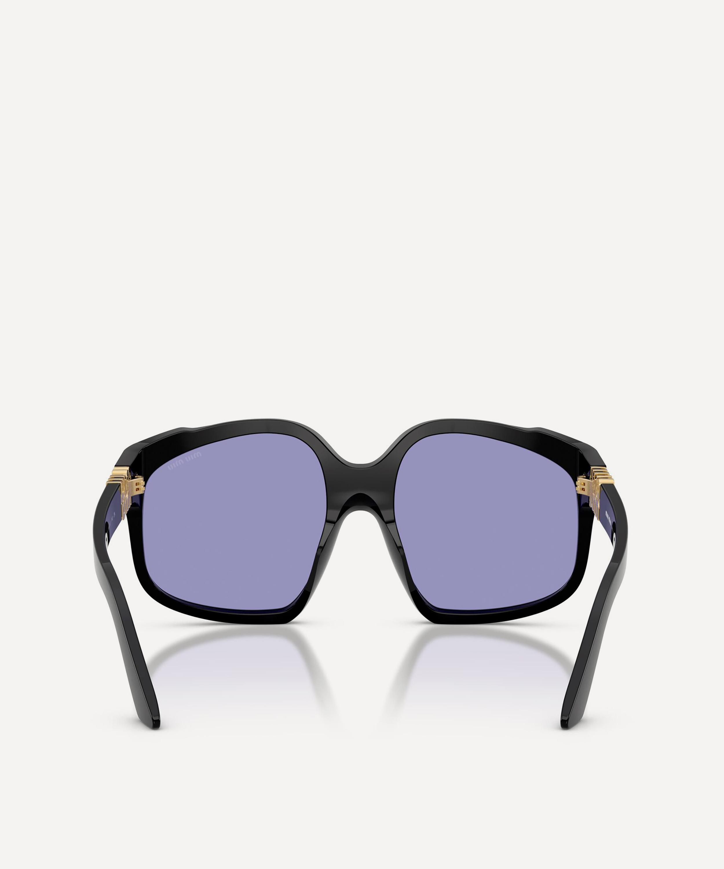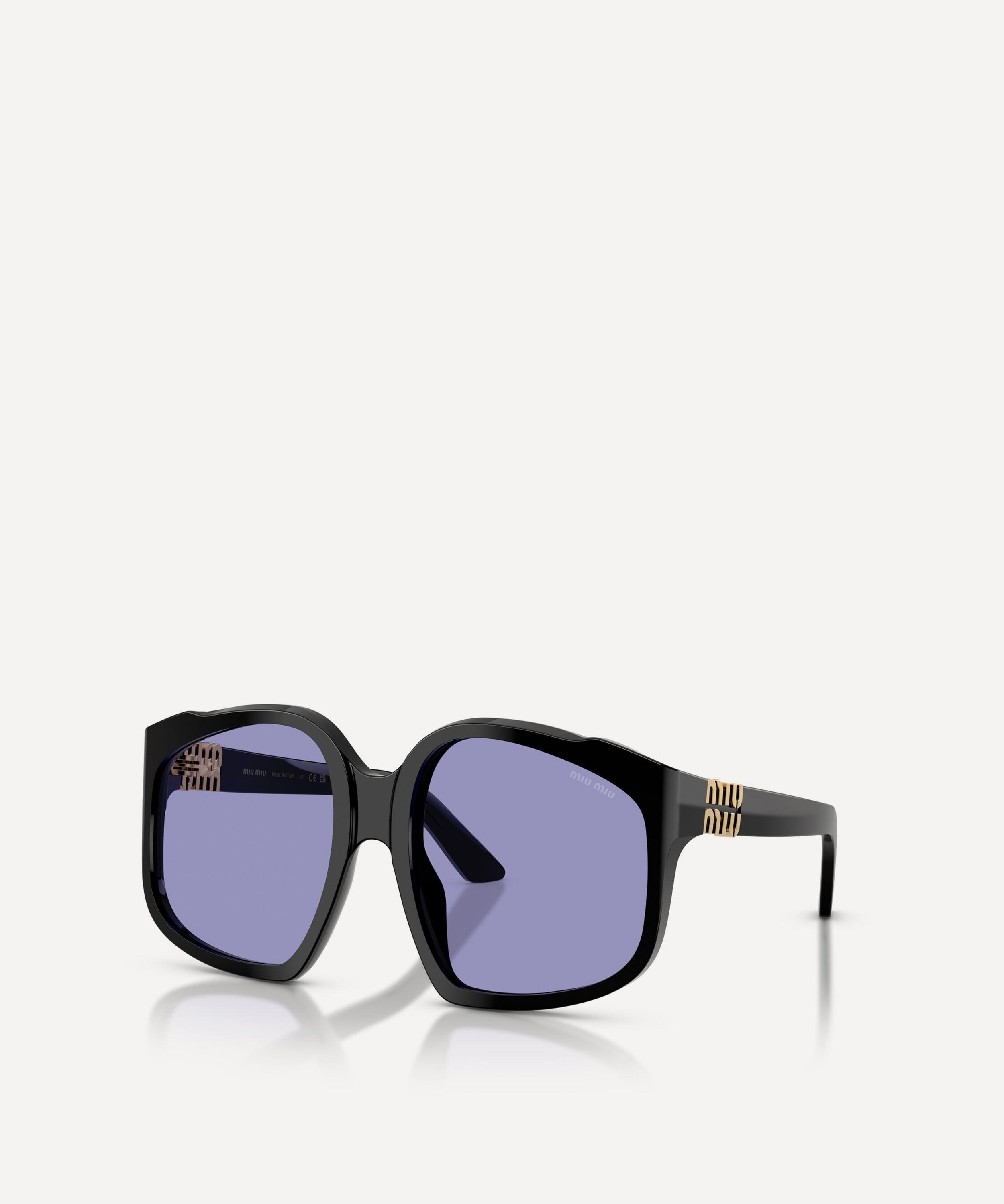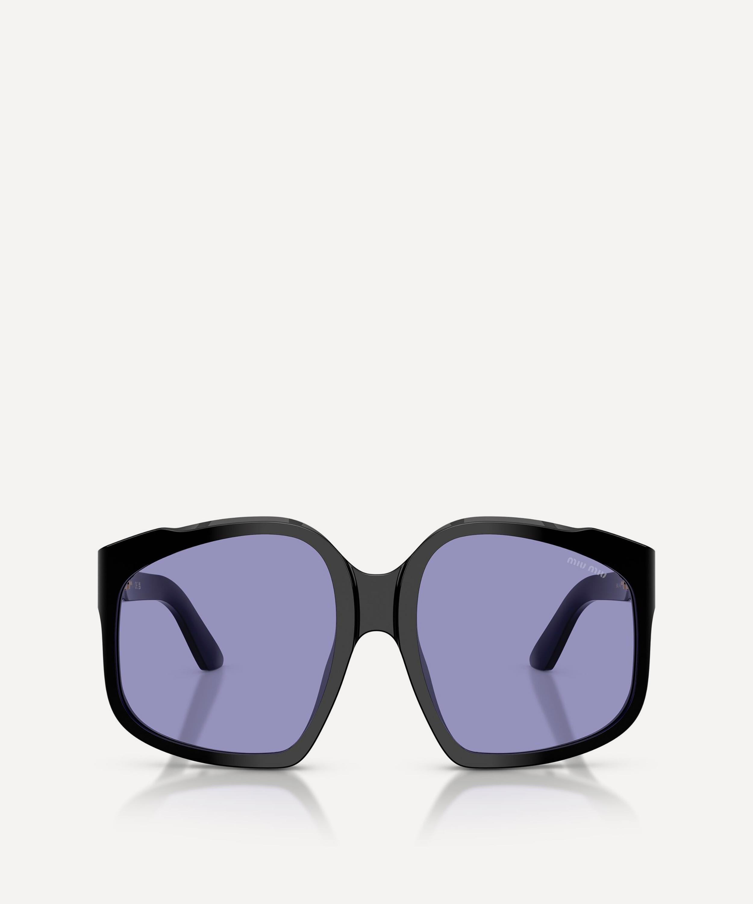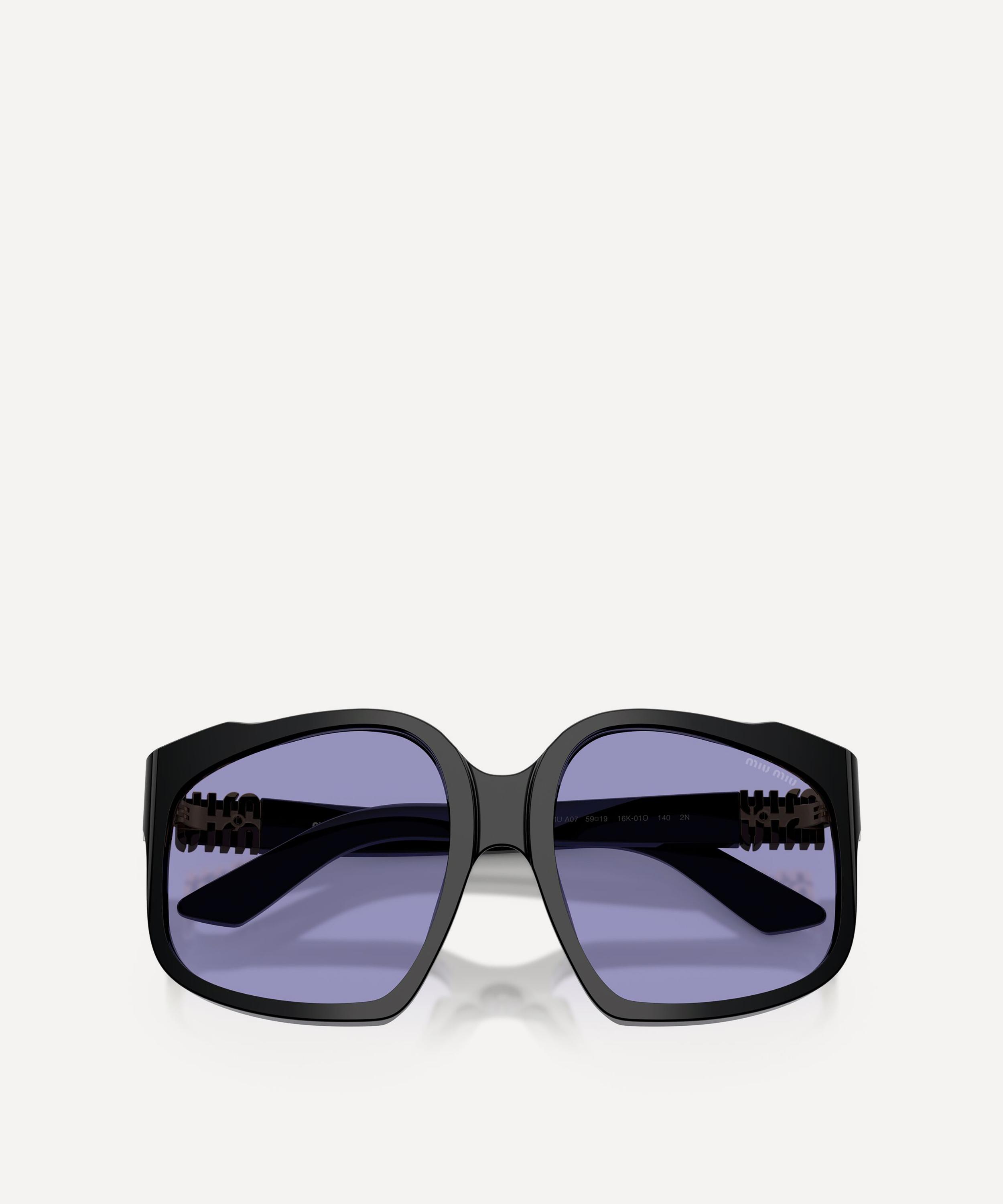 Heighten the impact of any attire with these square sunglasses from Miu Miu. Expertly crafted from black acetate to create a statement pair that instantly draws the eye, these oversized sunnies are fitted with a comfortable saddle nose bridge and large, tinted lenses to shade and protect your eyes from UV light. Complete with the signature branding at the temples, they make for an ultra-chic finish to your curated looks.