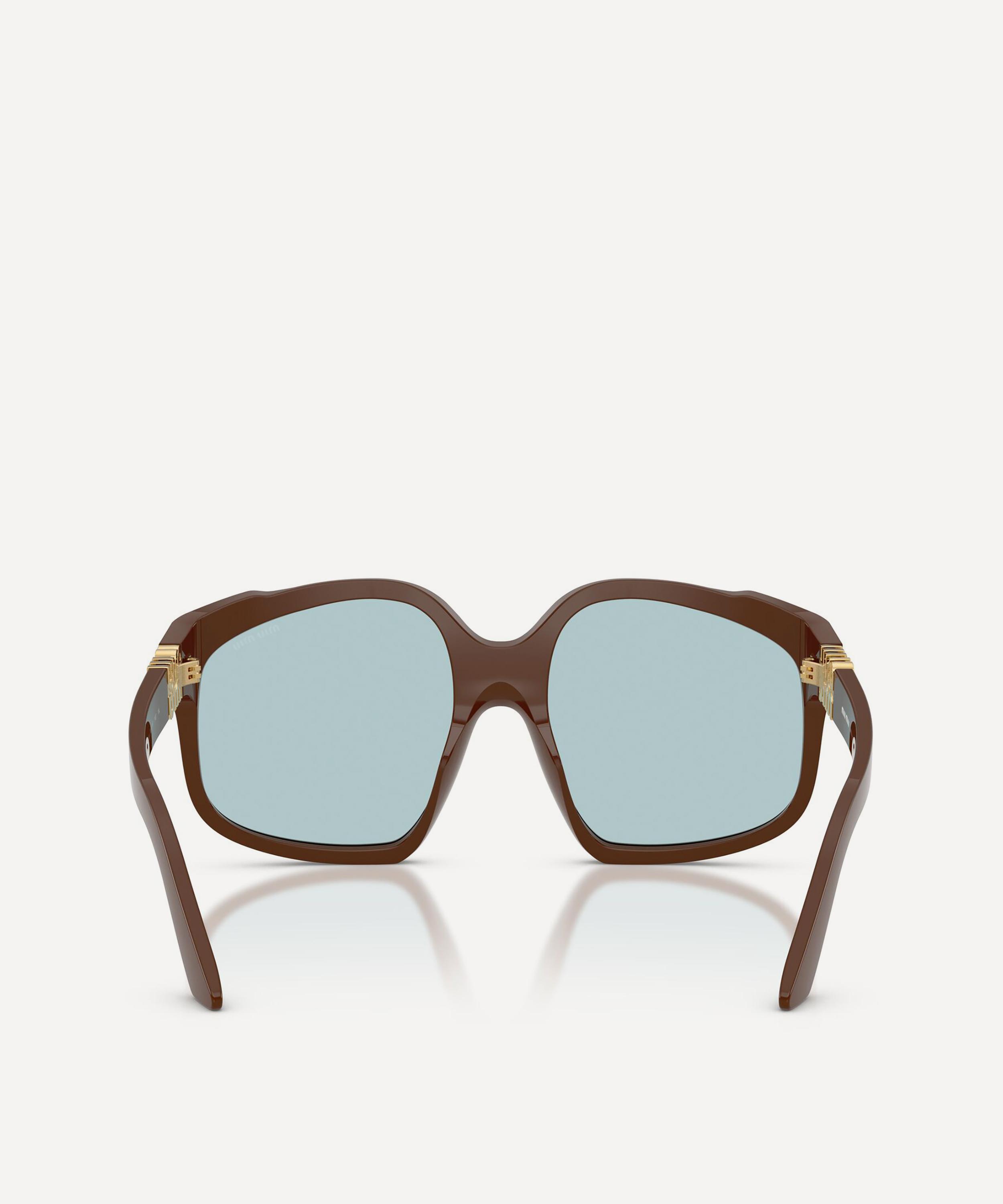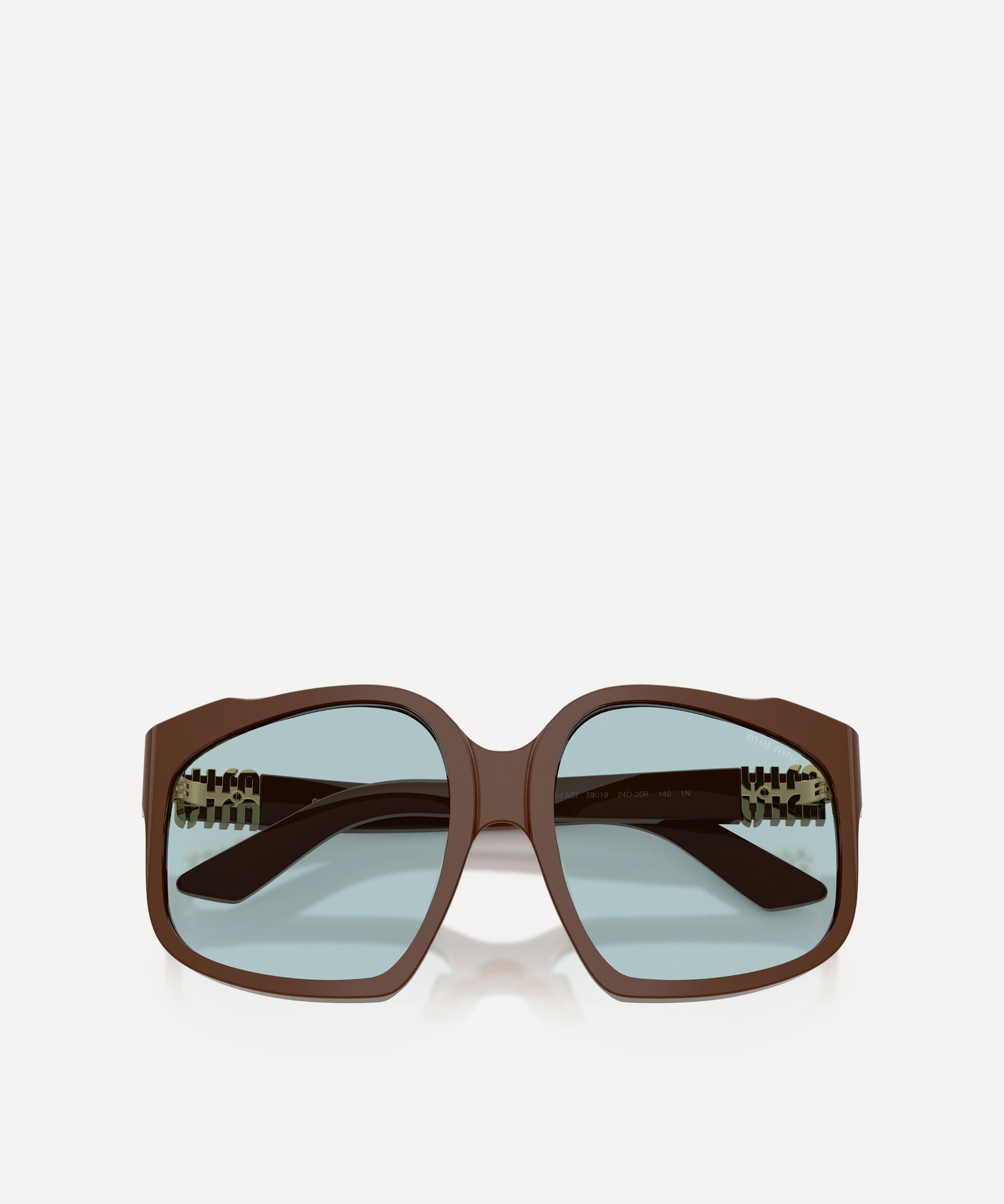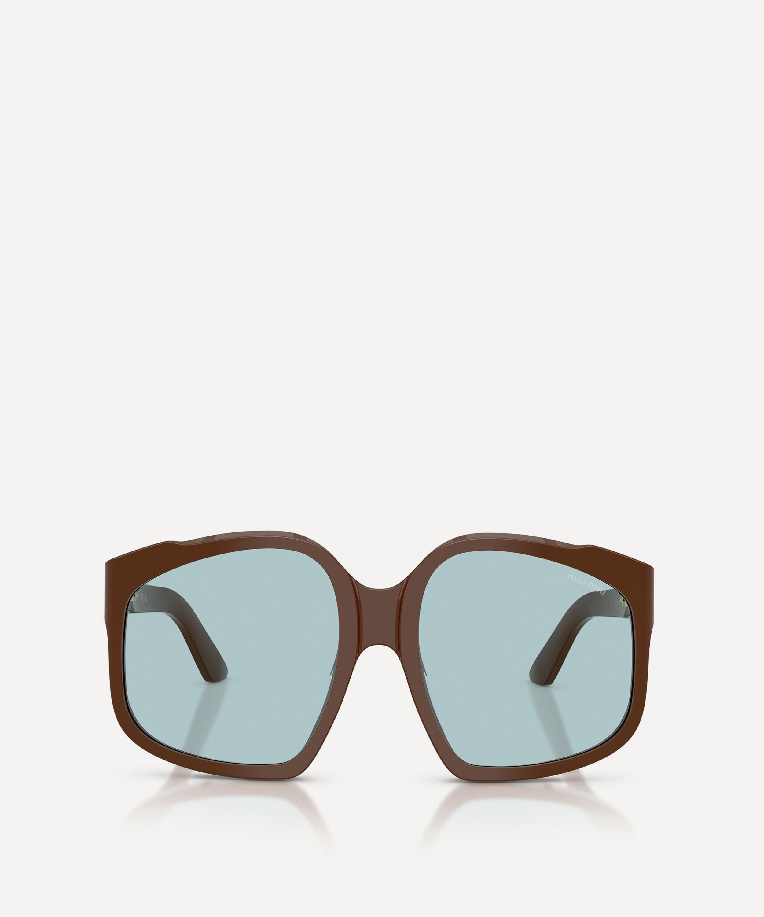 Heighten the impact of any attire with these square sunglasses from Miu Miu. Expertly crafted from brown acetate to create a statement pair that instantly draws the eye, these oversized sunnies are fitted with a comfortable saddle nose bridge and large, light-blue lenses to shade and protect your eyes from UV light. Complete with the signature branding at the temples, they make for an ultra-chic finish to your curated looks.