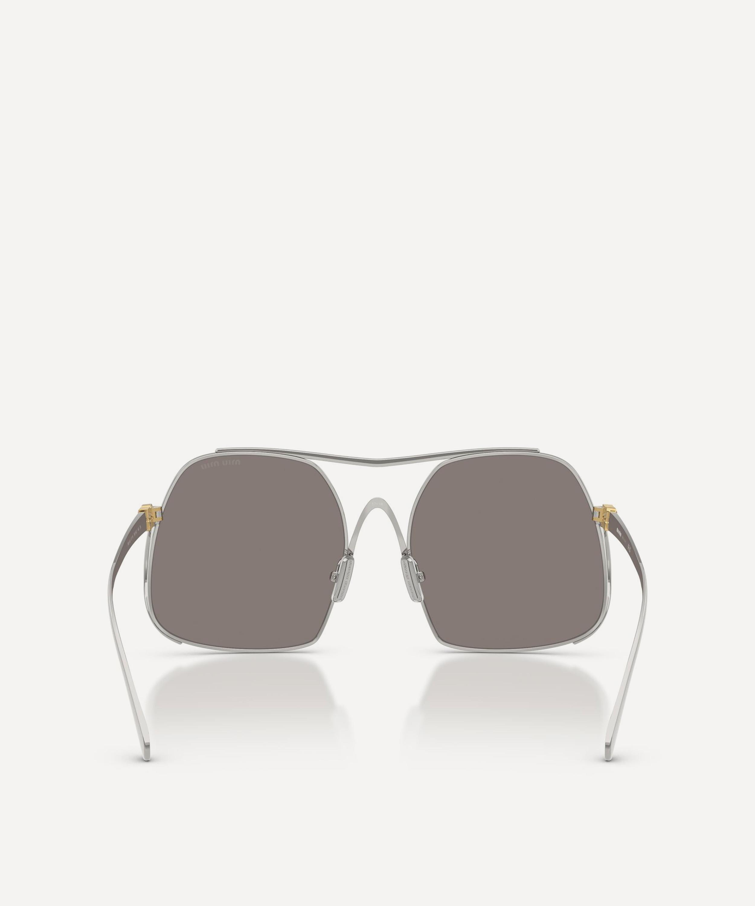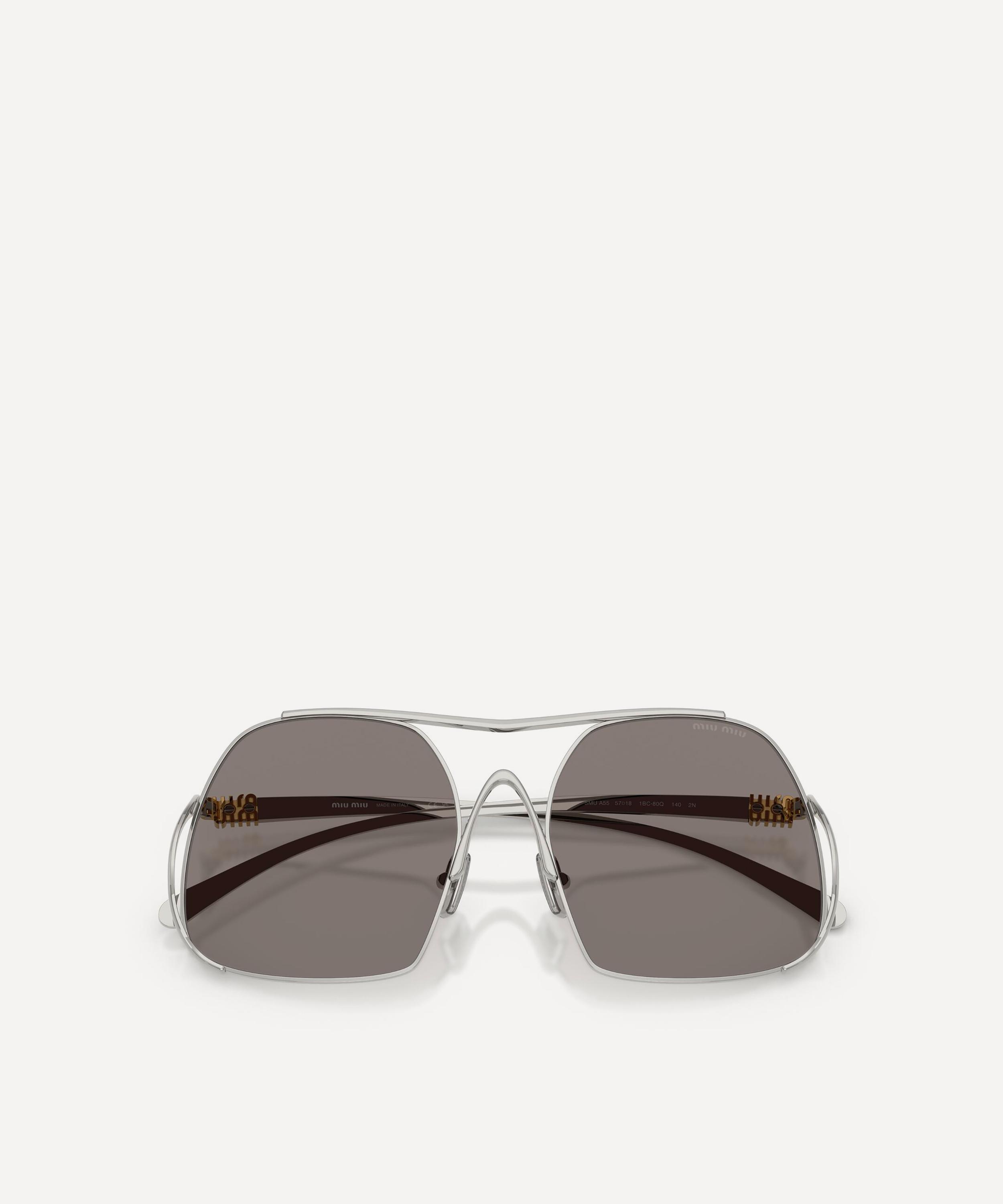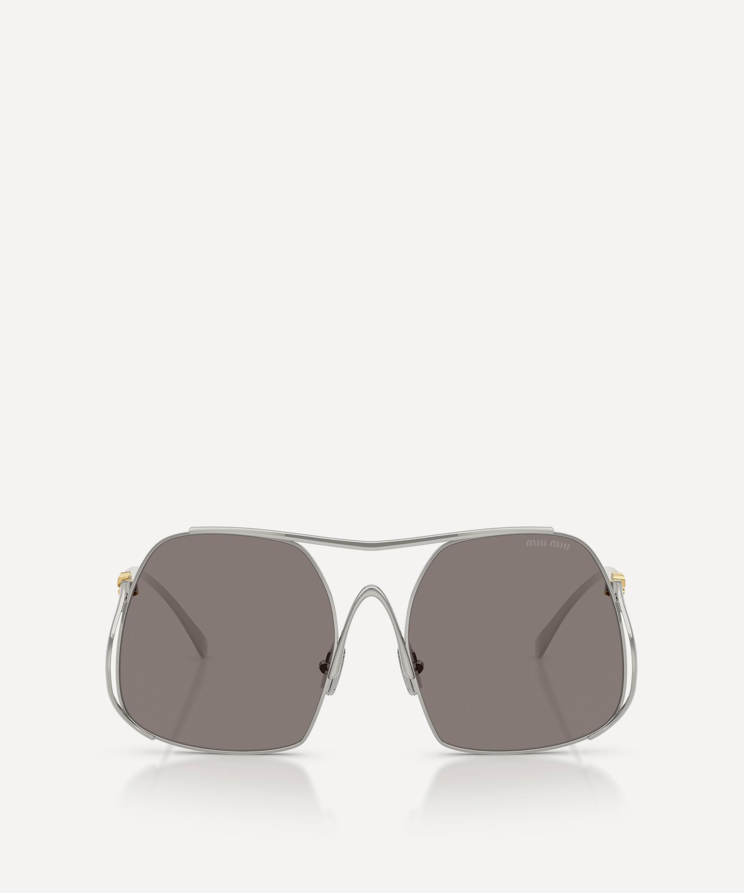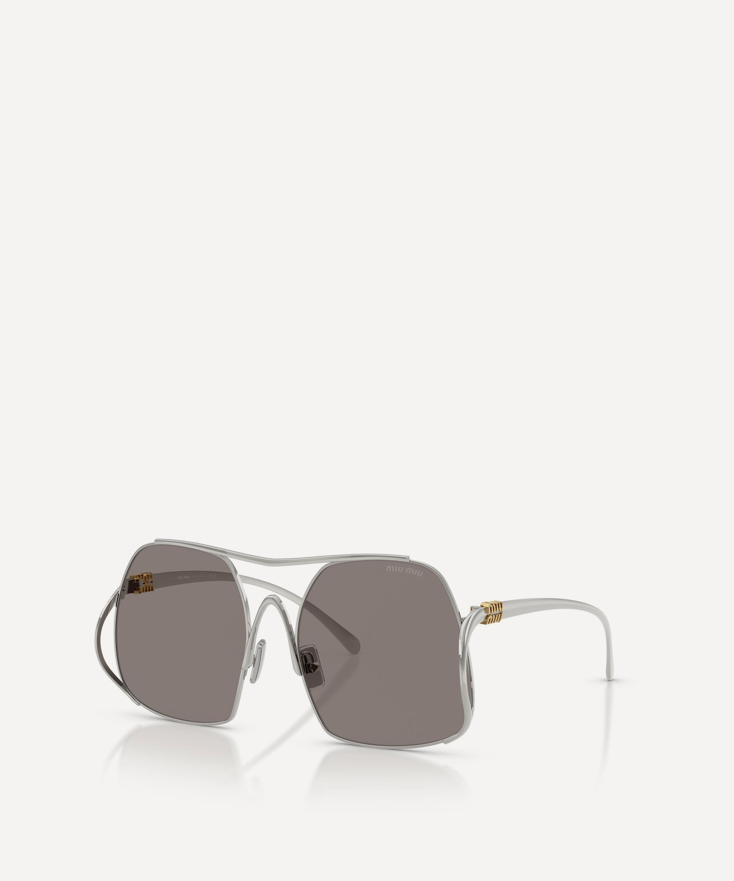 Heighten the impact of any attire with these square sunglasses from Miu Miu. Expertly crafted from silver-tone metal, to create a statement pair that instantly draws the eye, these oversized sunnies are fitted with adjustable nose pads and grey-tinted lenses to shade and protect your eyes from UV light. Complete with a decorative top bar and the signature branding at the temples, they make for an ultra-chic finish to your curated looks.
