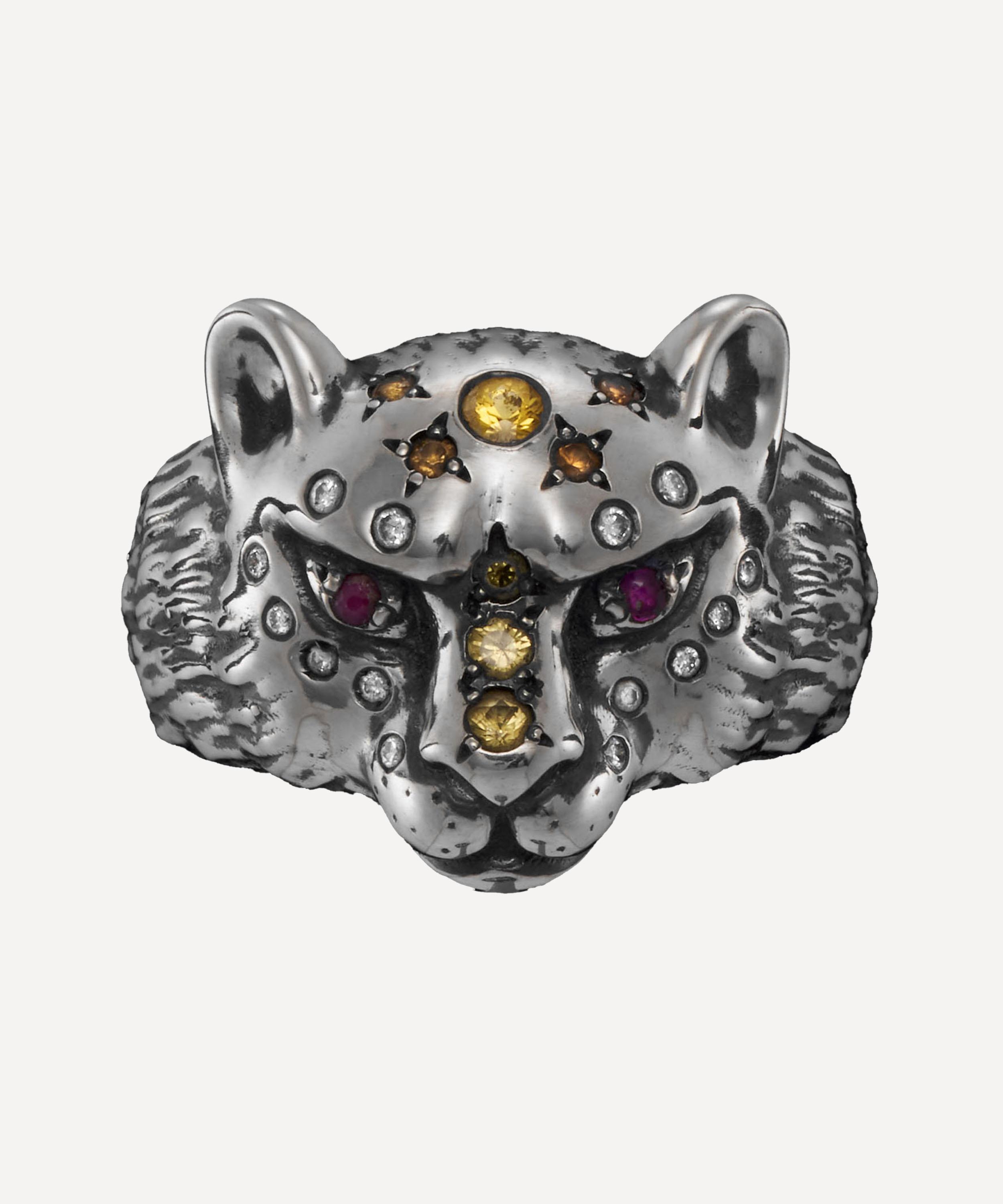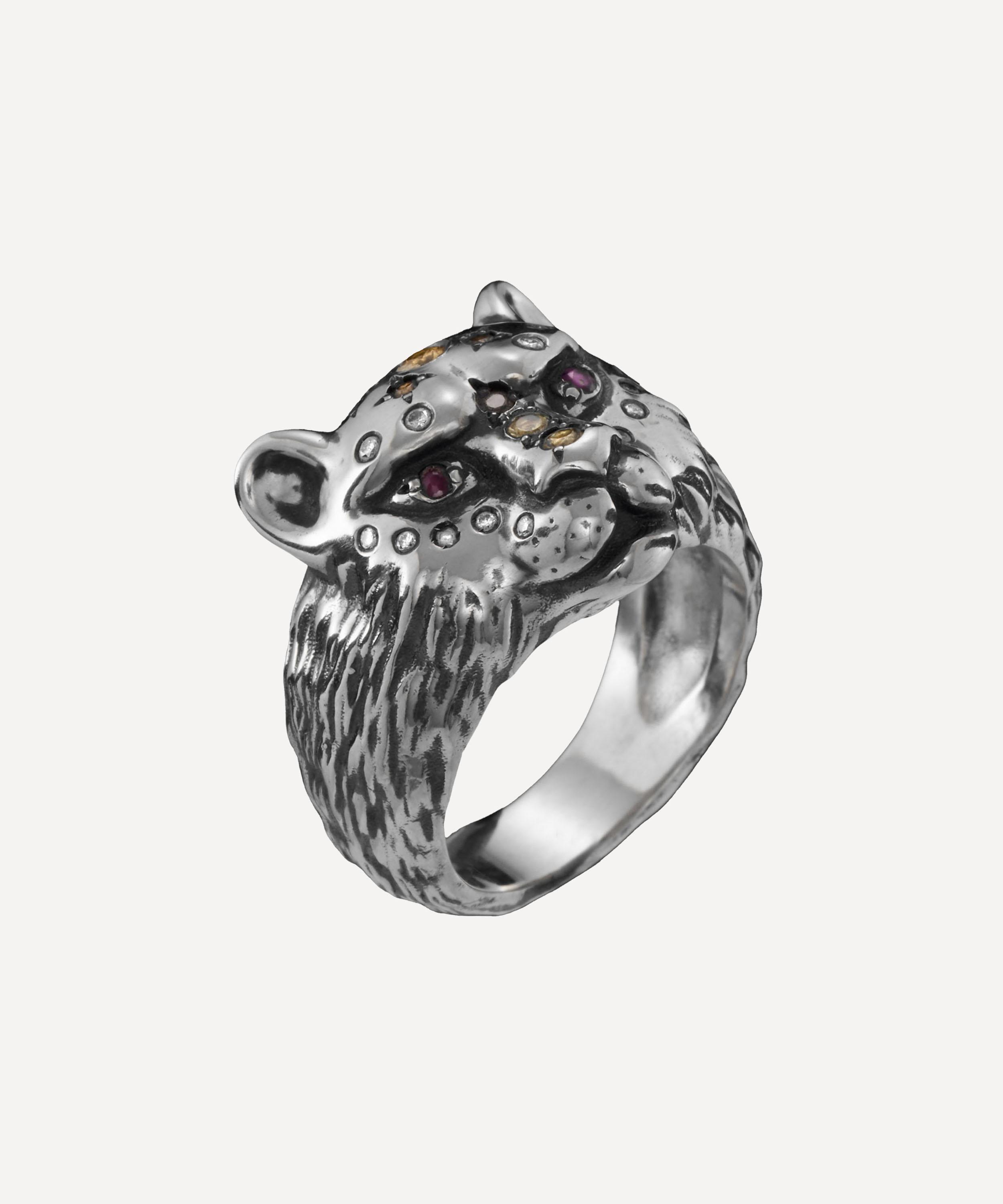 Breathe new life into your jewellery box with gentle yet fierce Empress ring from Maria Nilsdotter. Exuding endearing beauty with gothic undertones, it features a bejewelled lioness head in oxidised sterling silver – a powerful symbol of boundless creativity, passion and motherhood. Accented with sparkling diamonds, Citrine, topaz and two ruby set eyes, it’s perfect for both occasion wear and elevated everyday looks, style it solo, incorporate it into a curated stack, or pair with matching pieces from the brand.