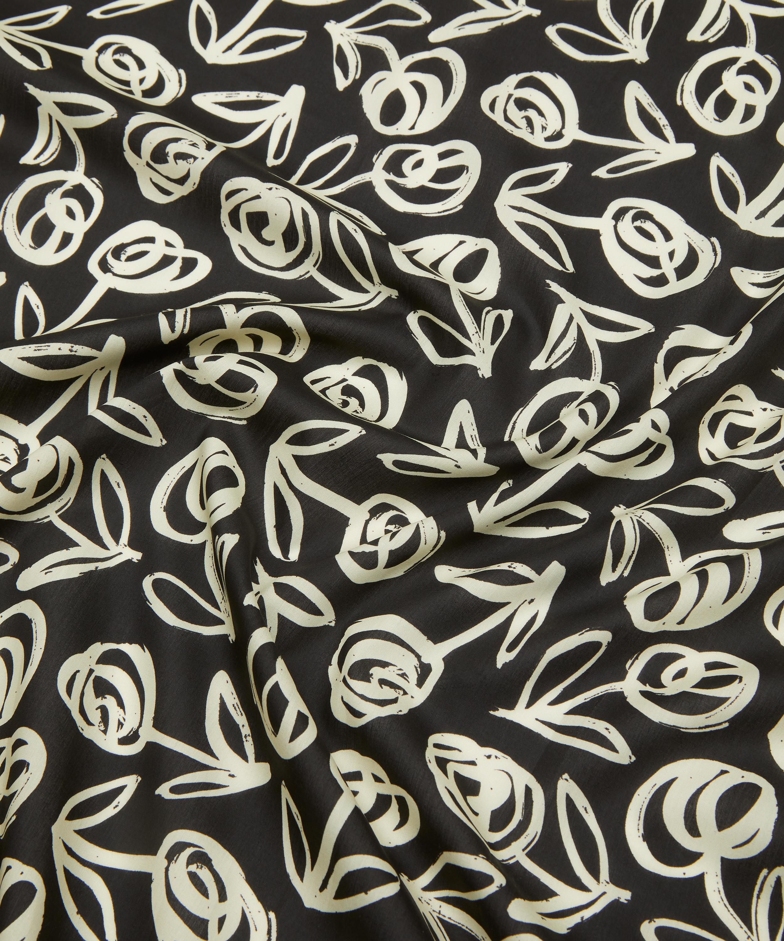 Stepping into the creative spirit of the 1990s, Paintbrush Blossom is a hand-painted artwork originally created for Liberty in 1992. Exploring the floral form as a vehicle for abstraction, this simple yet eye-catching pattern distils the flower down to its purest essence. Gestural and highly expressive, the loose, inky brushstrokes are magnified to a bold scale, while high-contrast two-tone palettes add to the design’s spontaneity and drama.