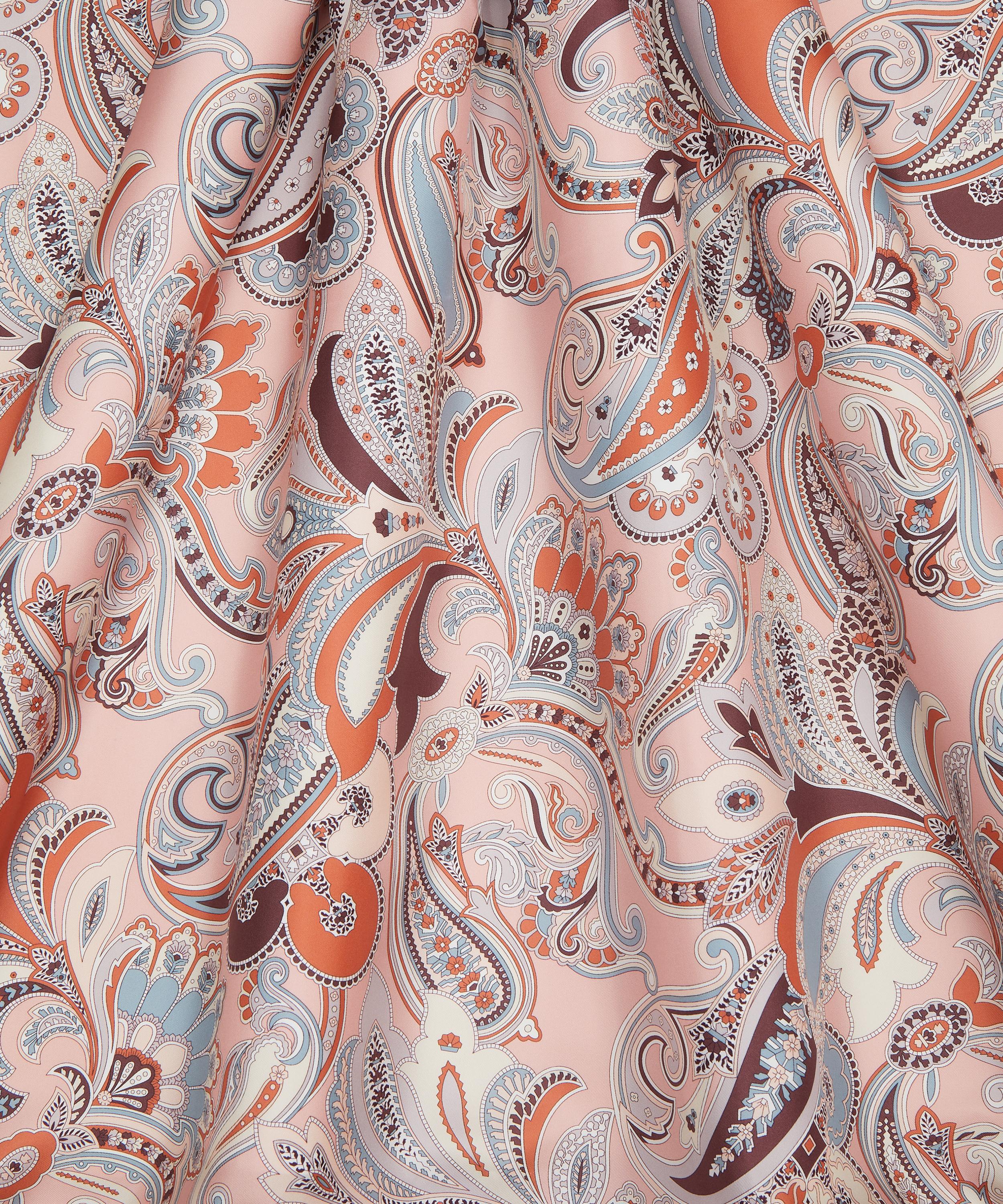 Melding a rich tapestry of 1950s and 1960s paisley scarf designs from the Liberty archive, this theatrical pattern revels in the beauty of the artistic method. Crafted through collaging, transforming, and selective editing, Paisley Fanfare revitalises the traditional paisley motif with a spontaneous interplay of unfinished and intricately detailed elements. This print is part of the Craftsmanship narrative of this collection, exploring the creative process from within the Liberty archive, from print impressions and embroidered studies, to ceramics, jewellery, and furniture. Uncover the origins of the designers’ musings through artworks inspired by their sketchbooks and prototypes.