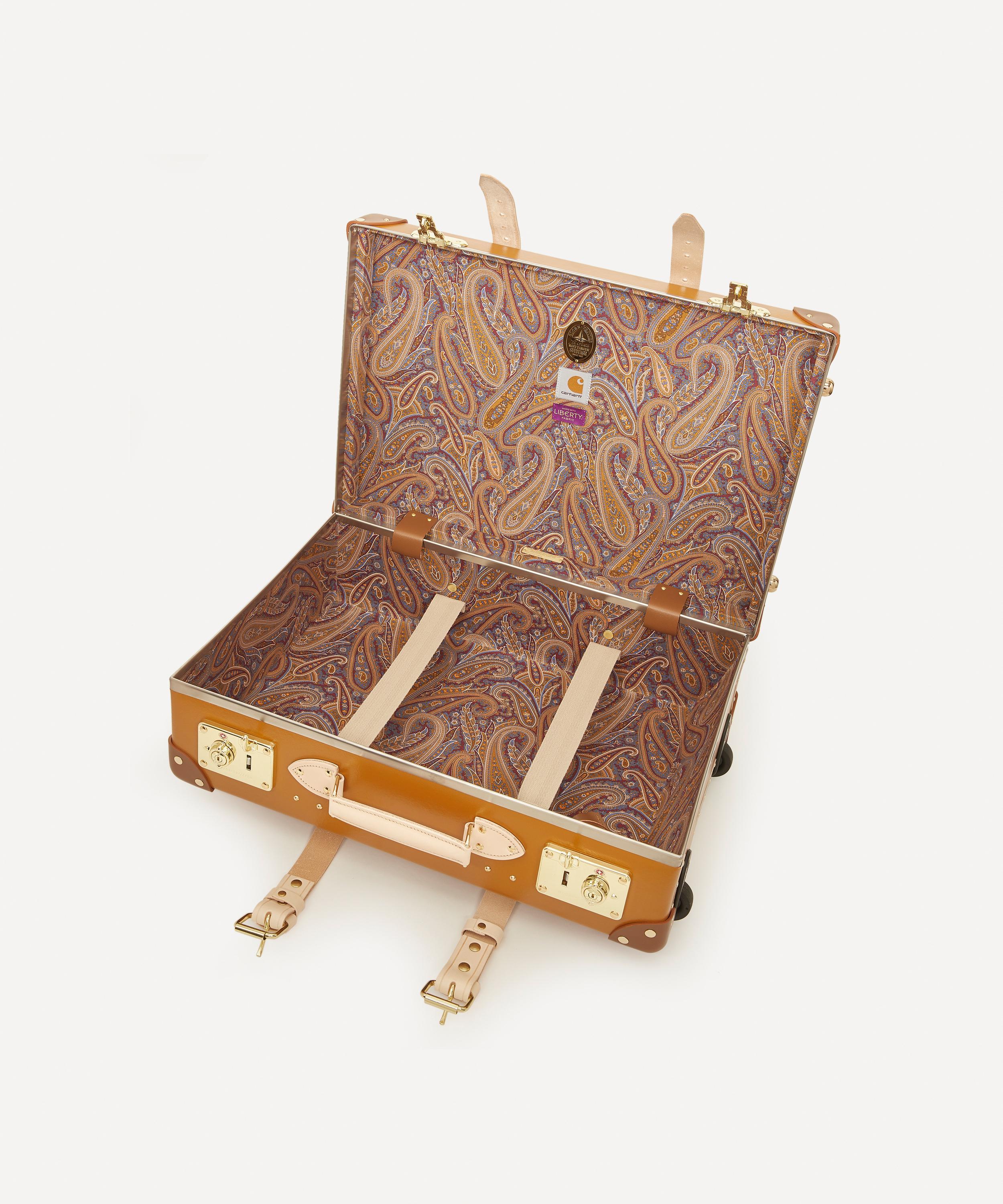 With its classic Paisley Park Tana Lawn™ Cotton interior lining, this retro-style, monogram-embossed suitcase from London streetwear label Carhartt WIP, is exclusively made for Liberty. Constructed from durable leather with a retractable top-handle and two-wheeled base, it’s accented with cream leather straps and corner-protectors for an authentic, vintage finish.