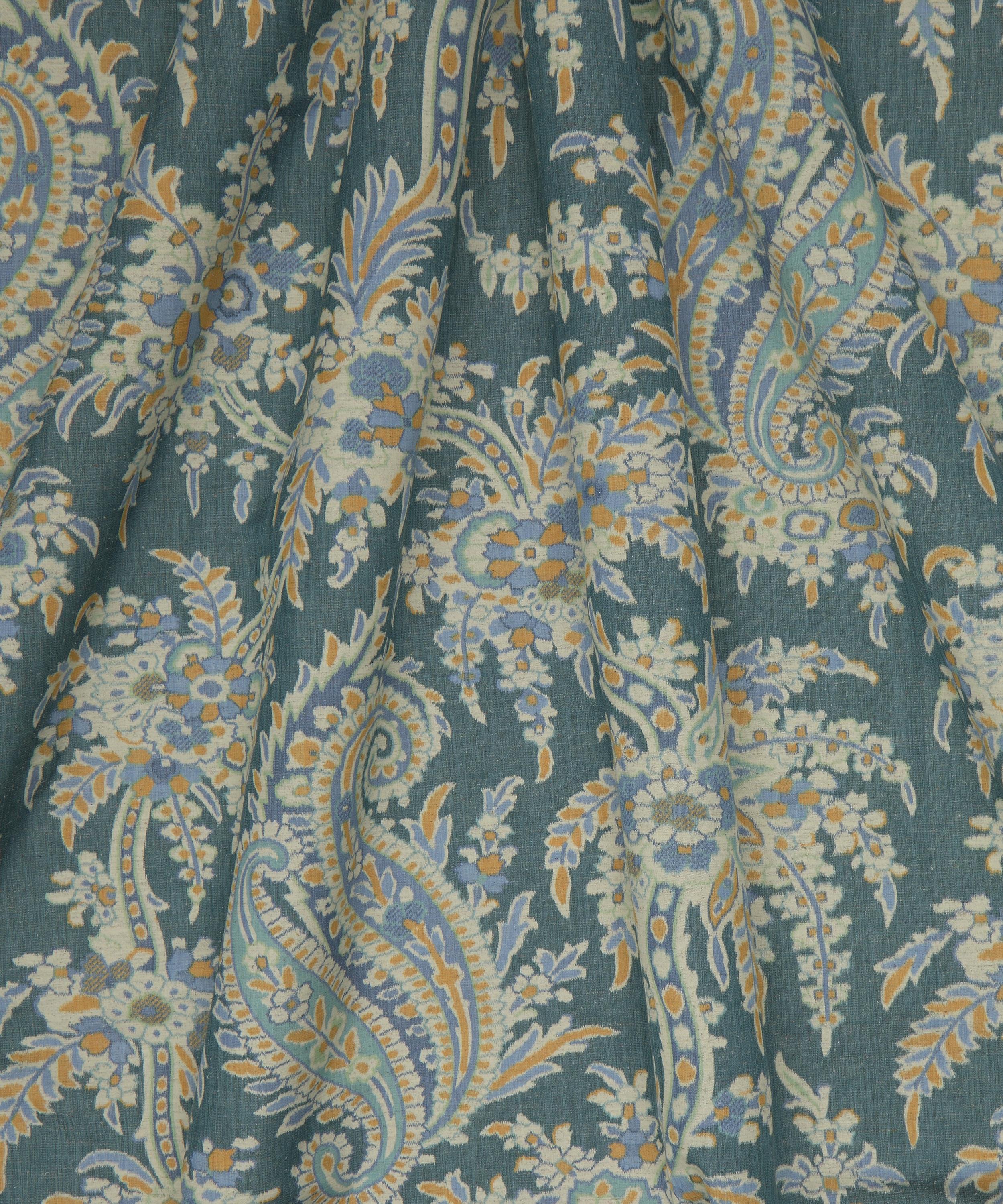 Discovered in one of Liberty’s archival pattern books, Paisley Willow is a weave interpretation of Palm Willow. Carefully redrawn and reimagined to preserve the exquisite intricacy of the original design. This traditional paisley floral, infused with a tropical twist, features an abundant garden of trailing vines, feathery fronds, and jewel-like blossoms, all nestled among elegant boteh paisleys. Paisley Willow is warp printed on a cotton blend, offering a blurred ikat effect - suitable for light upholstery, drapery, cushions, and accessories.