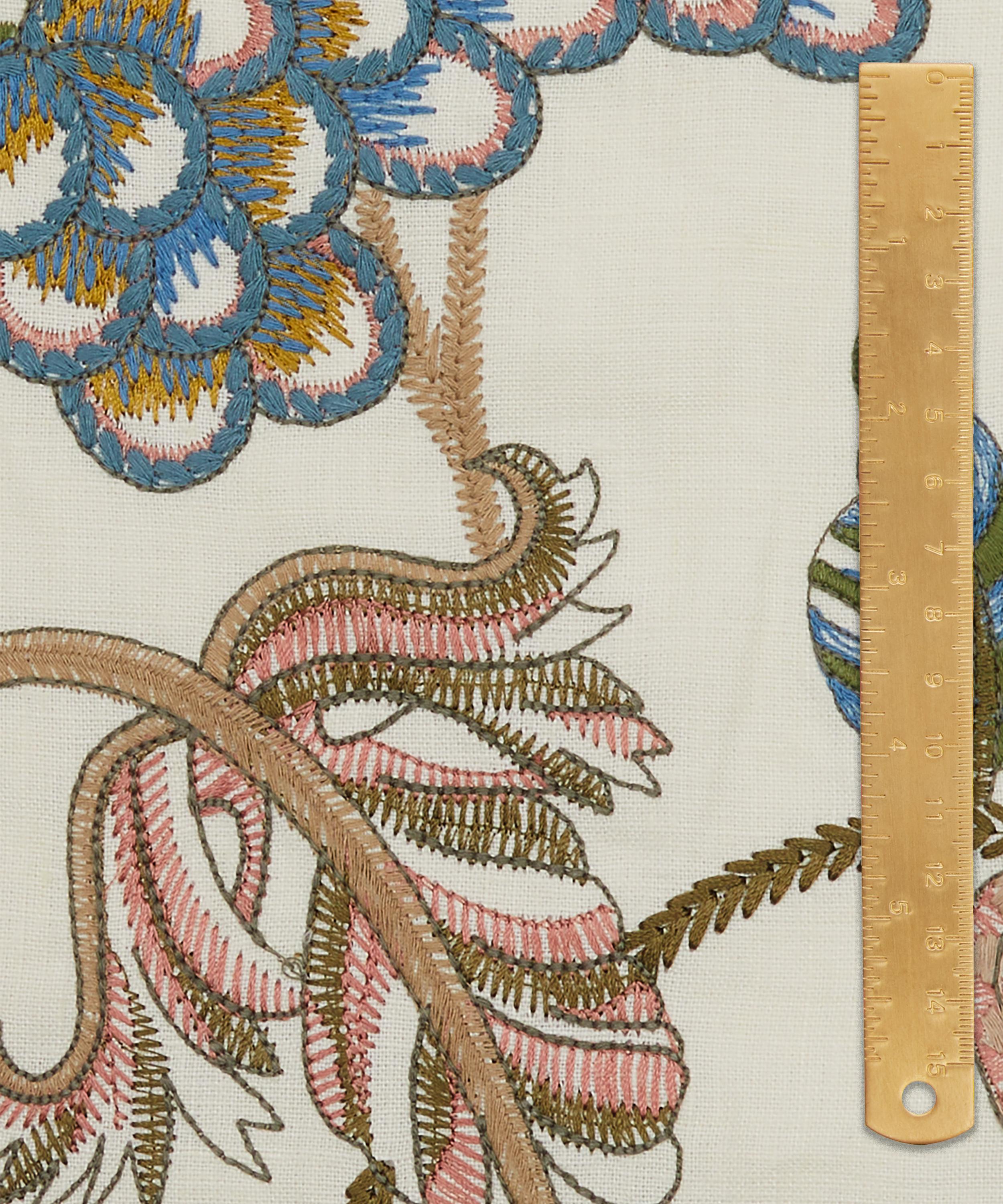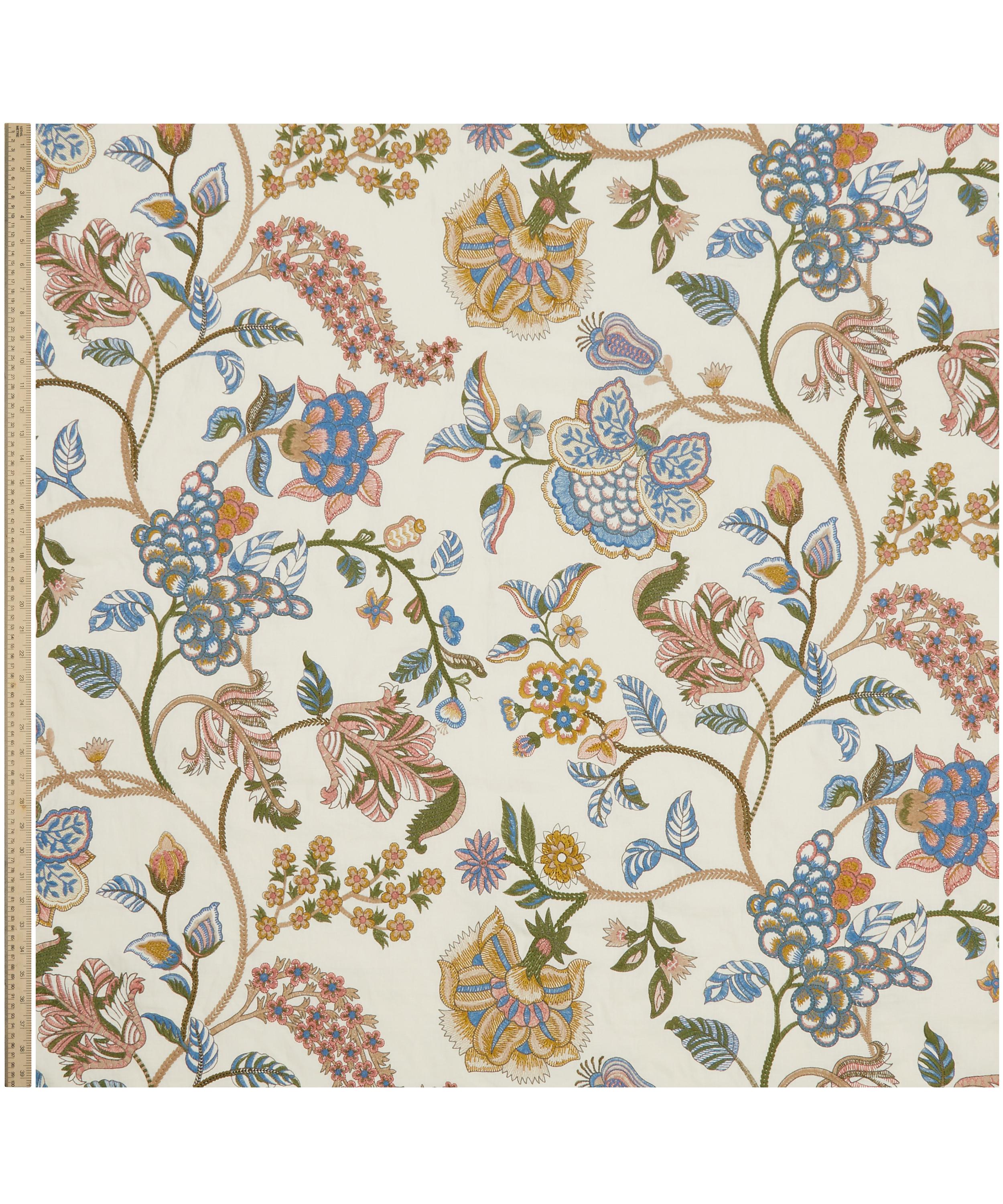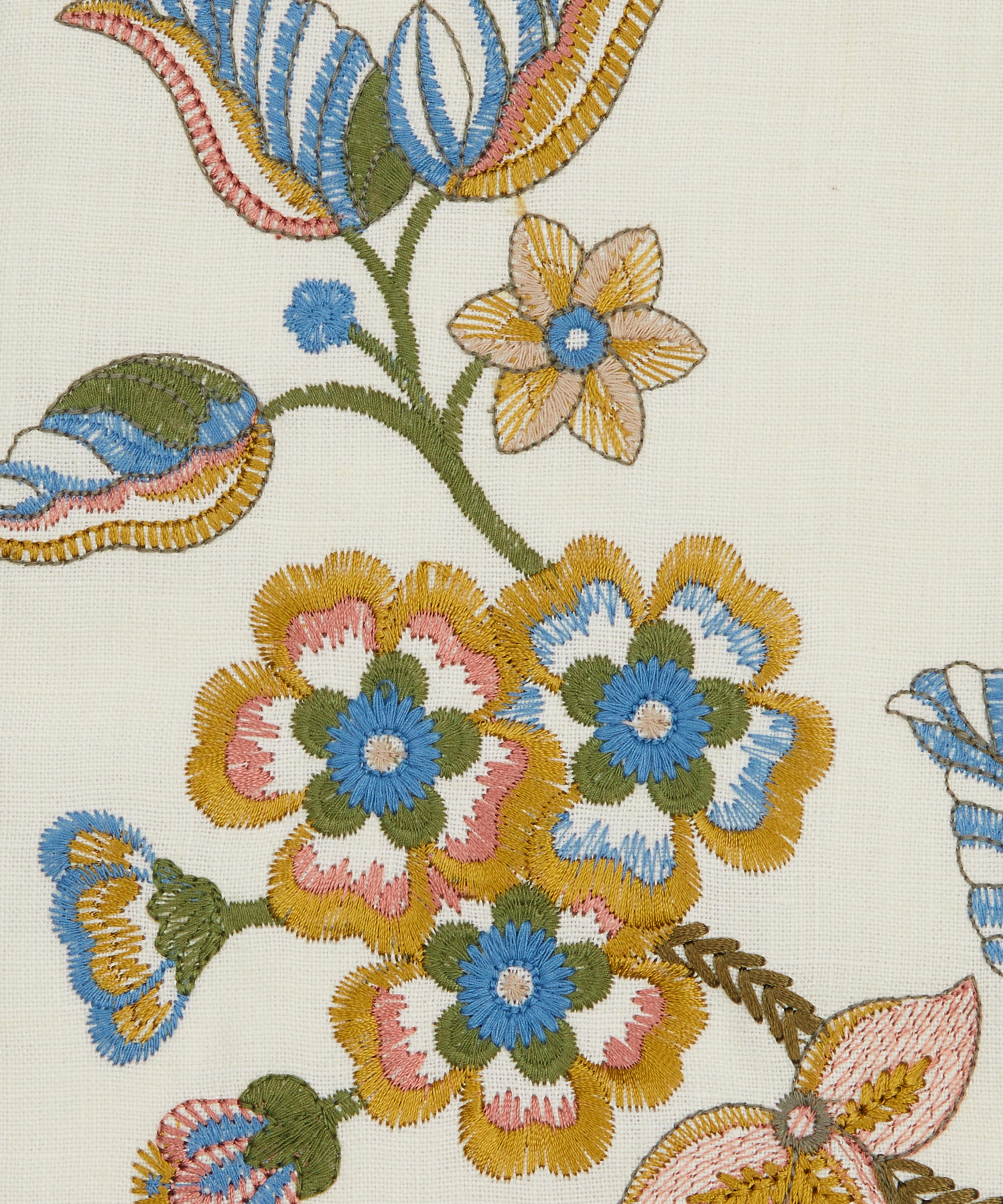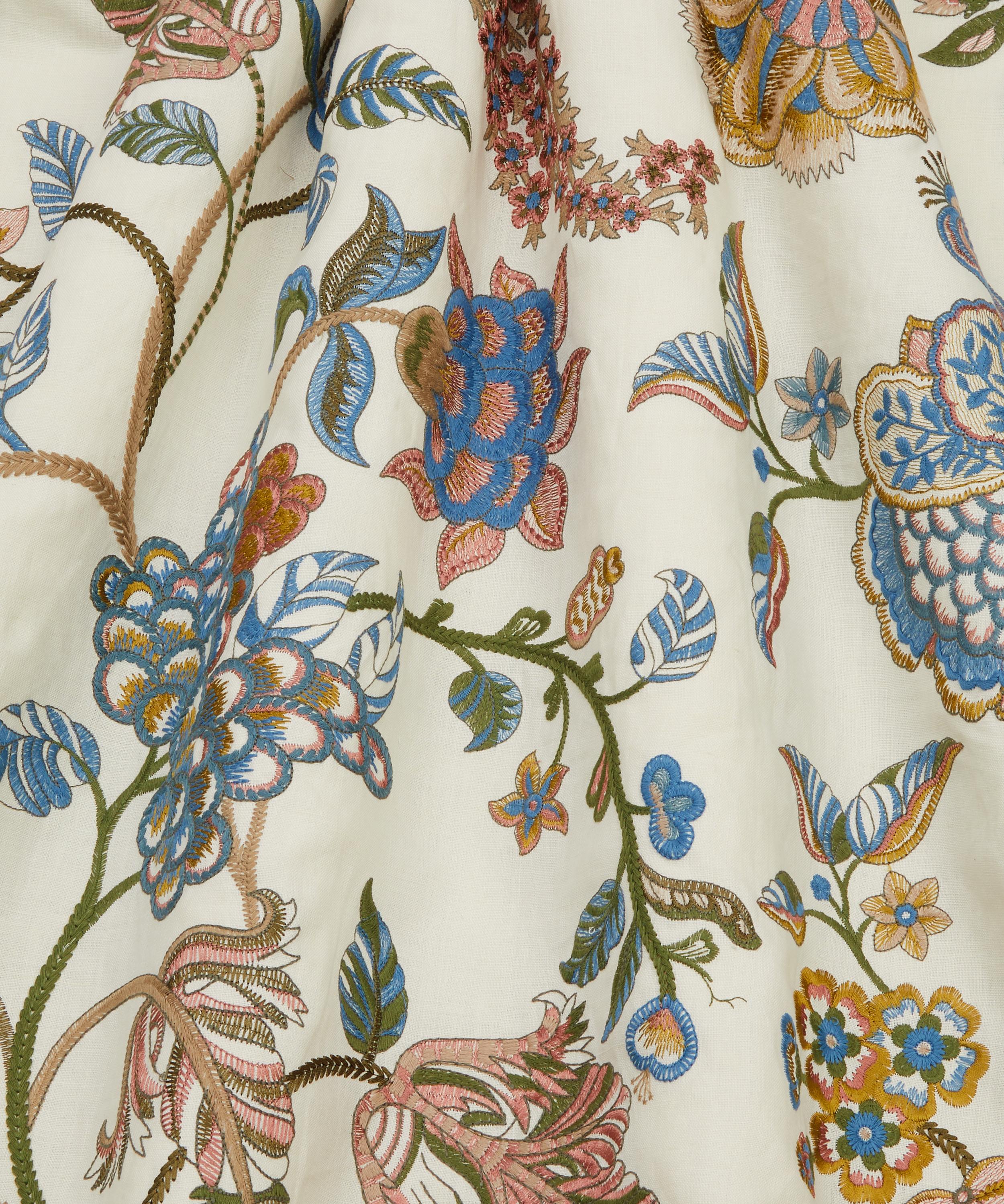 The Botanical Atlas fabric collection celebrates our historic lineage of craftsmanship and design through a cross-pollination of styles and visual narratives. Richly layered embroideries, opulent textured weaves, and contemporary printed velvets and linens are juxtaposed with a selection of elegant stripes and mesmerising geometrics - expertly crafted using traditional and cutting-edge techniques in Italy, Belgium, and India. Taken from an antique Tree of Life design within the Liberty archive, Palampore Embroidery has historically appeared as a best-selling scarf design.