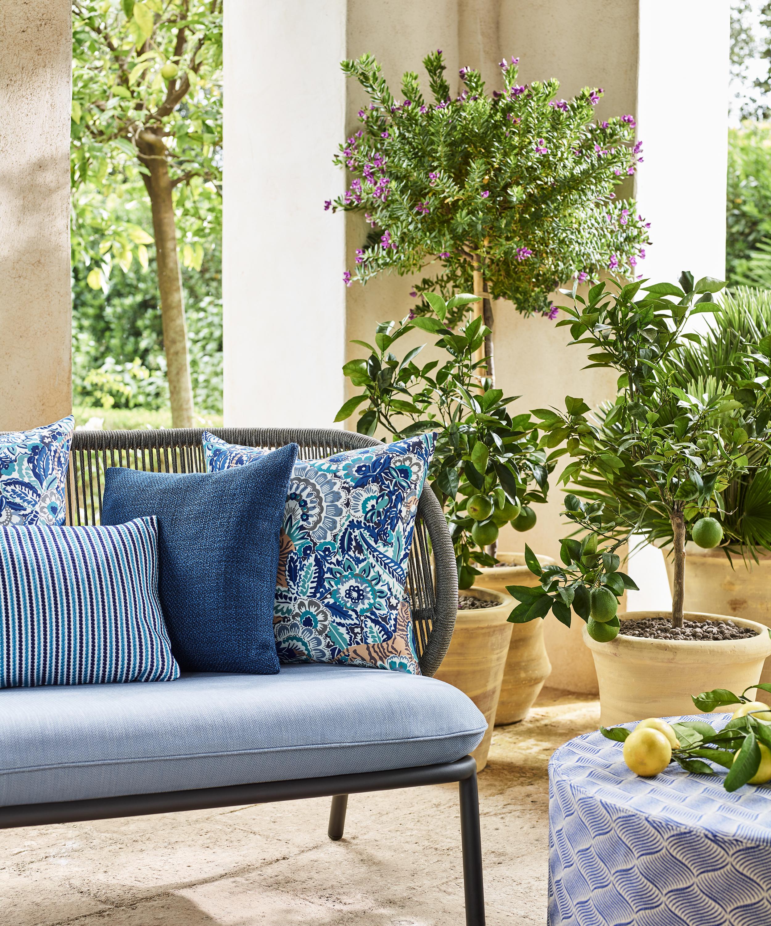 For the outdoor collection, we celebrate The Liberty Garden in all its glory. Harmonised across three distinctive ‘garden rooms’, the collection is criss-crossed by narrative stories of print and colour to reflect Liberty’s eclectic spirit. Drawing inspiration from the beauty of Arts and Crafts gardens, decadent ornamental florals appear juxtaposed against geometric botanical layouts and the classic nostalgia of Liberty ditsy florals – unique and beautiful settings for outdoors, painted in living colour.