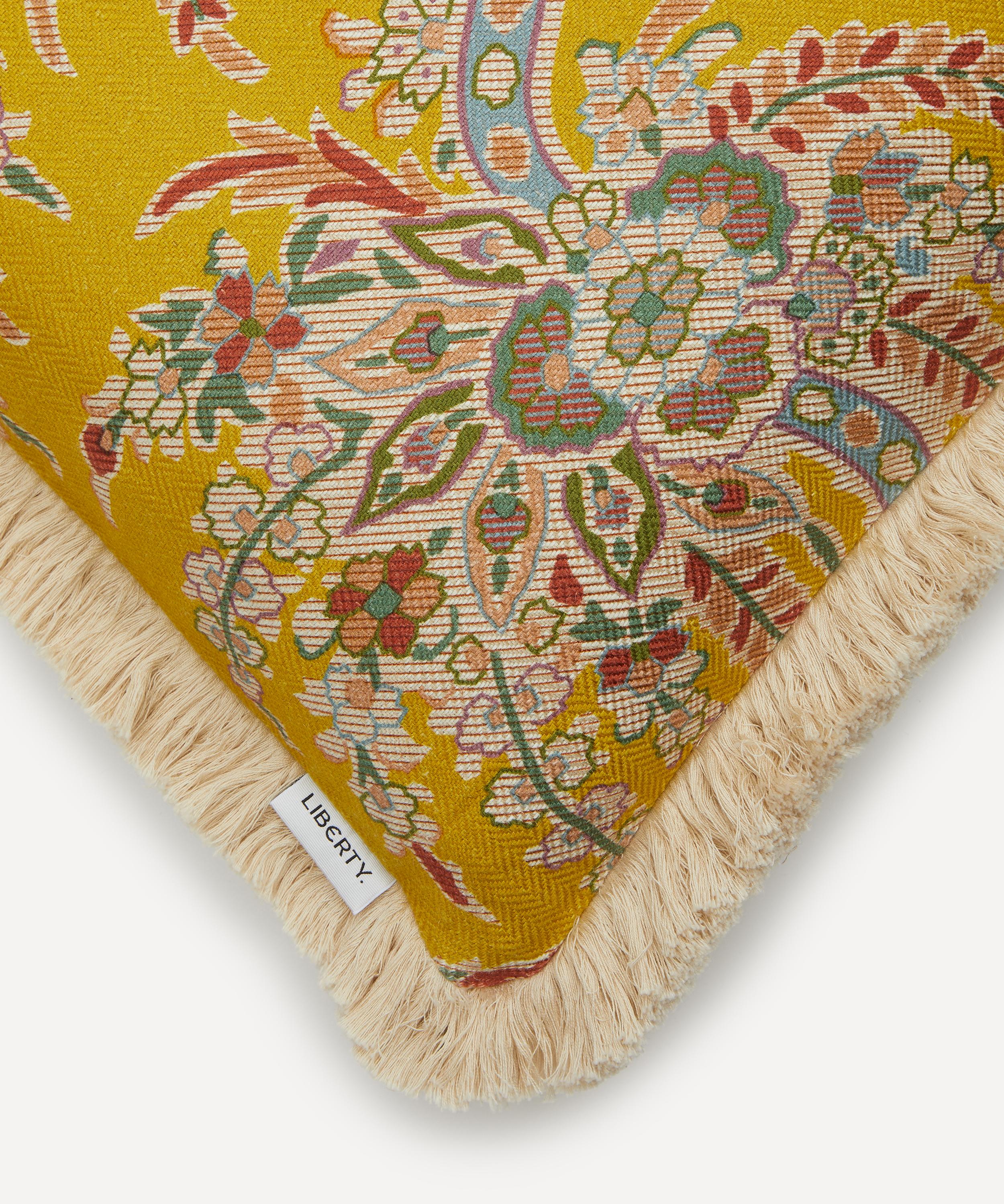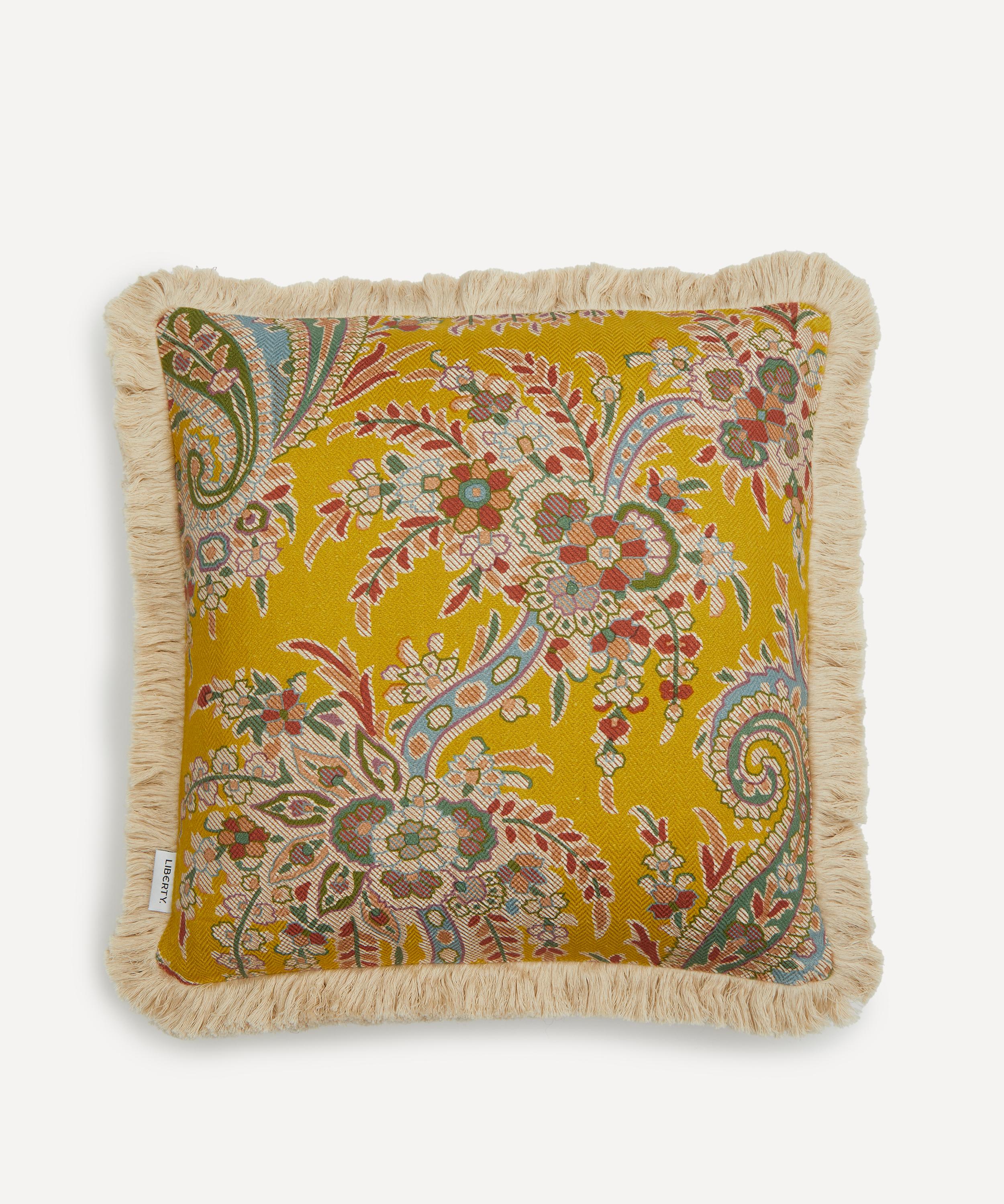 This Liberty square cushion features our Palm Willow print and is decadently soft with a plump recycled duck feather filling. Created in the Liberty design studio, Palm Willow – a traditional paisley floral, infused with a tropical twist – appears here in a beautifully engineered iteration, complete with a fringed edge for an immaculate finish. The cushion’s classic silhouette and richly hued palette add an elegant twist to modern interiors.