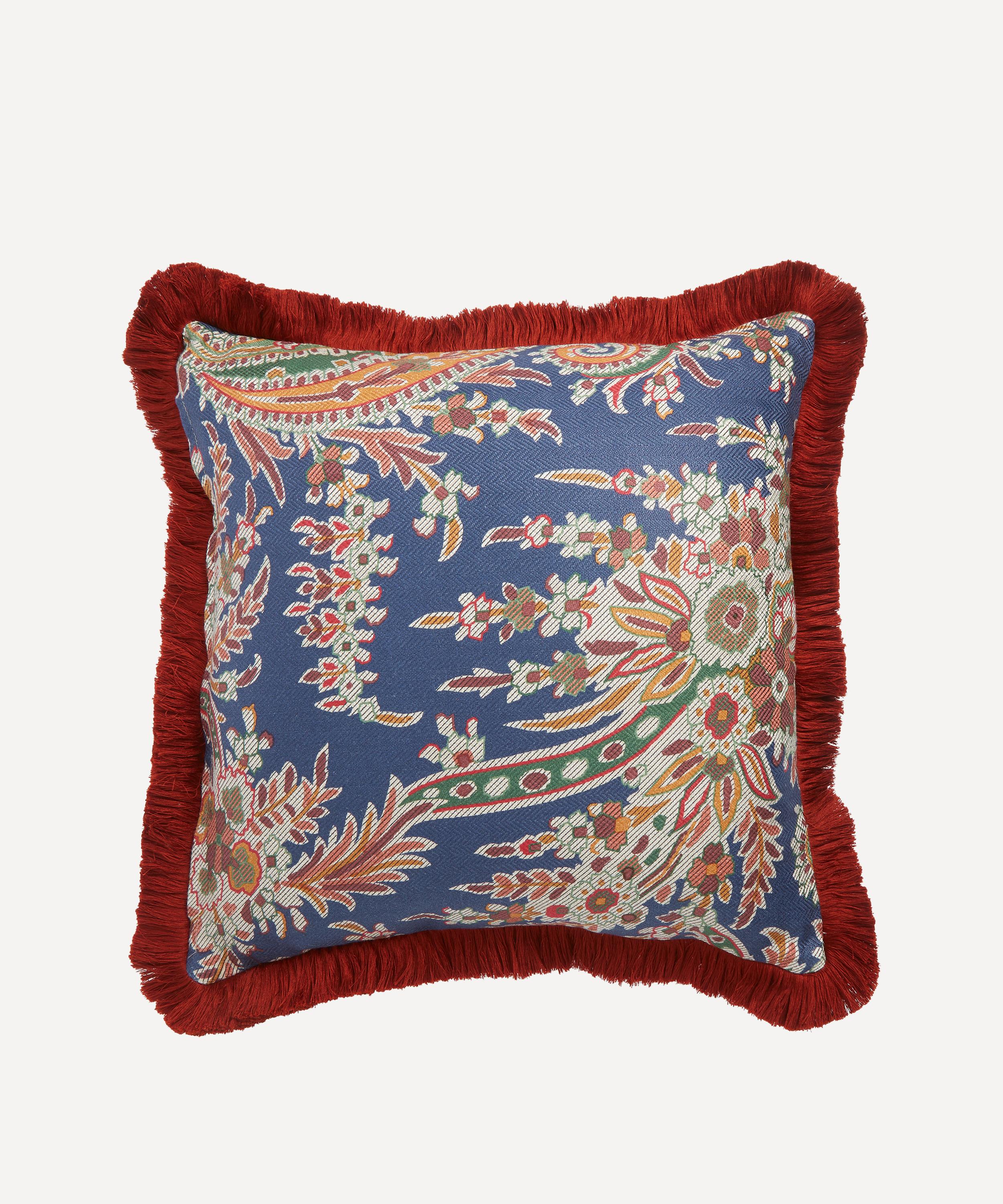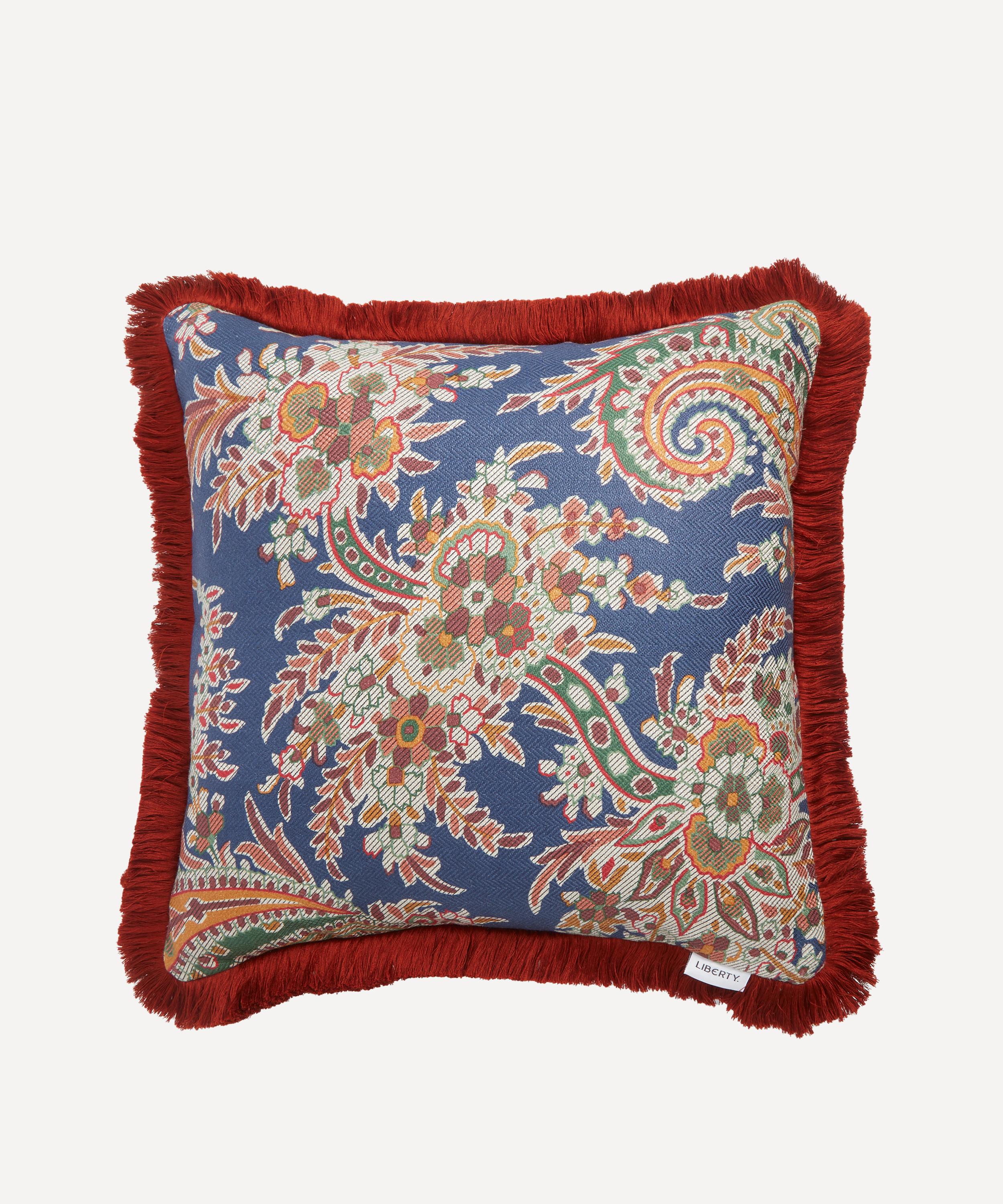 This Liberty square cushion features our Palm Willow print and is decadently soft with a plump recycled duck feather filling. Created in the Liberty design studio, Palm Willow – a traditional paisley floral, infused with a tropical twist – appears here in a beautifully engineered iteration, complete with a fringed edge for an immaculate finish. The cushion’s classic silhouette and richly hued palette add an elegant twist to modern interiors.