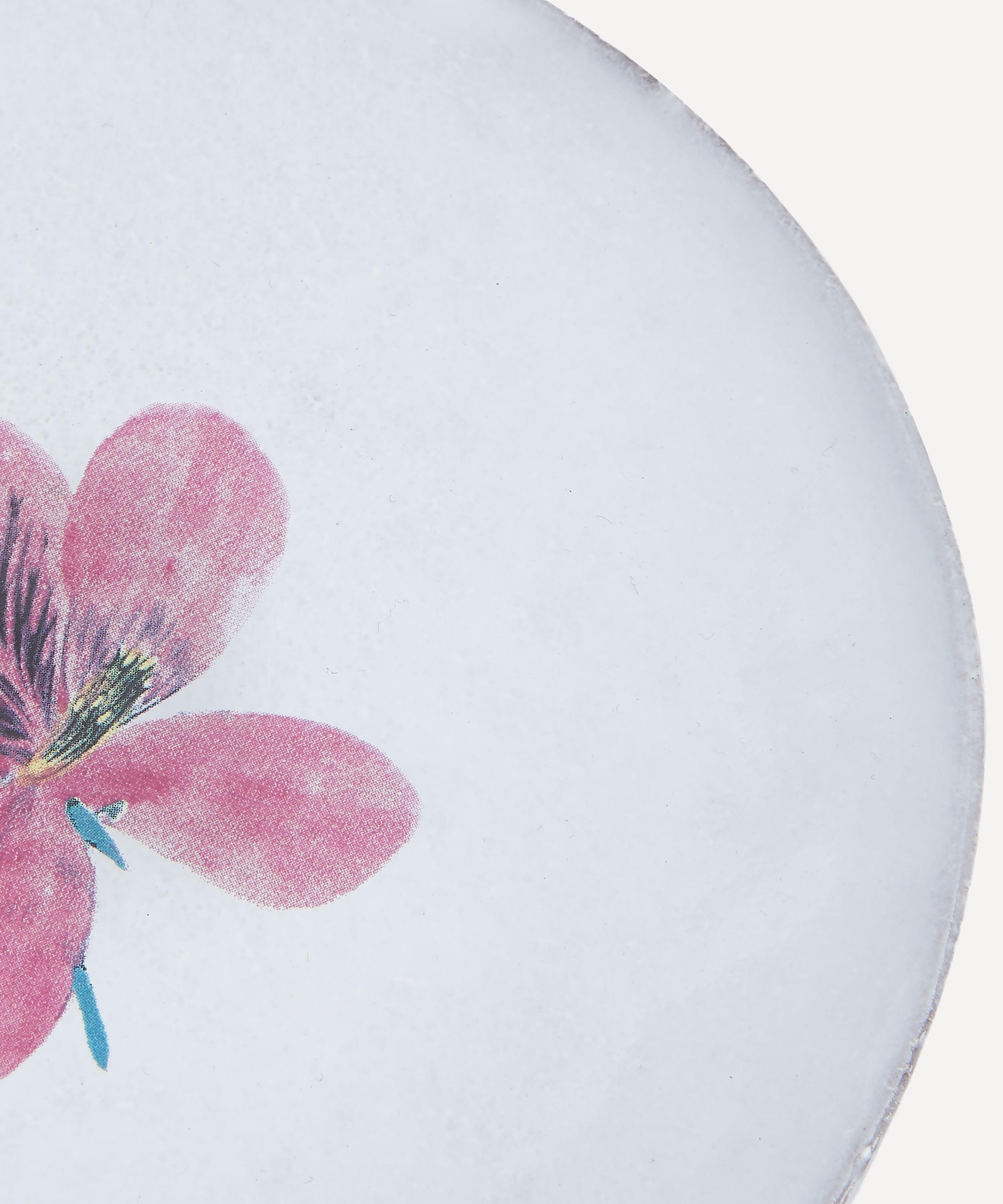 Part of the John Derian collection, the 19th-century inspired Pansy saucer from Astier de Villatte is a testament to the Parisian brand’s spiritual ethos and John Derian's iconic découpage.