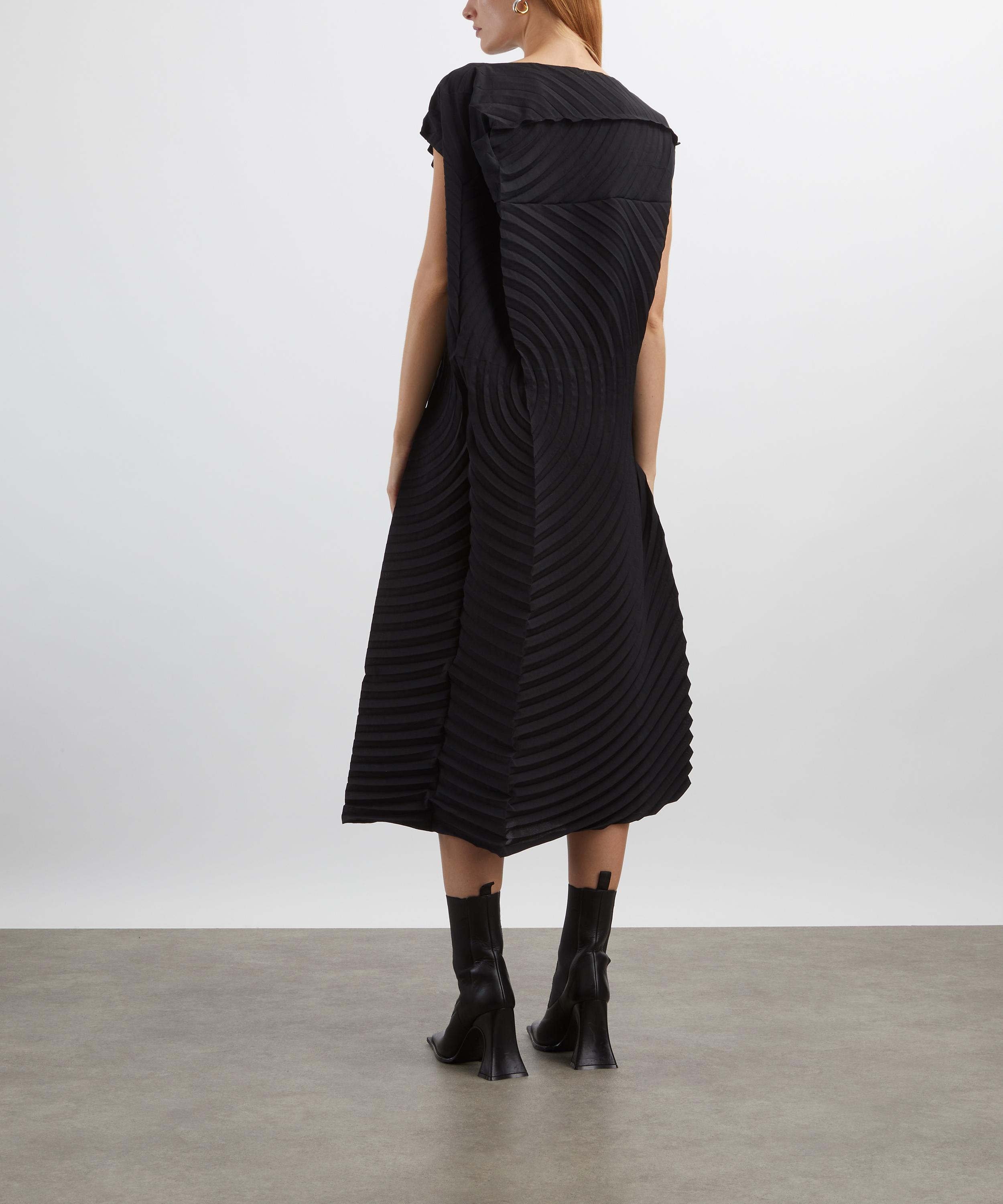 Issey Miyake’s conceptual approach brings a sculptural aesthetic to everyday dressing – reflected in the PAPER BAG PLEATS Midi Dress.