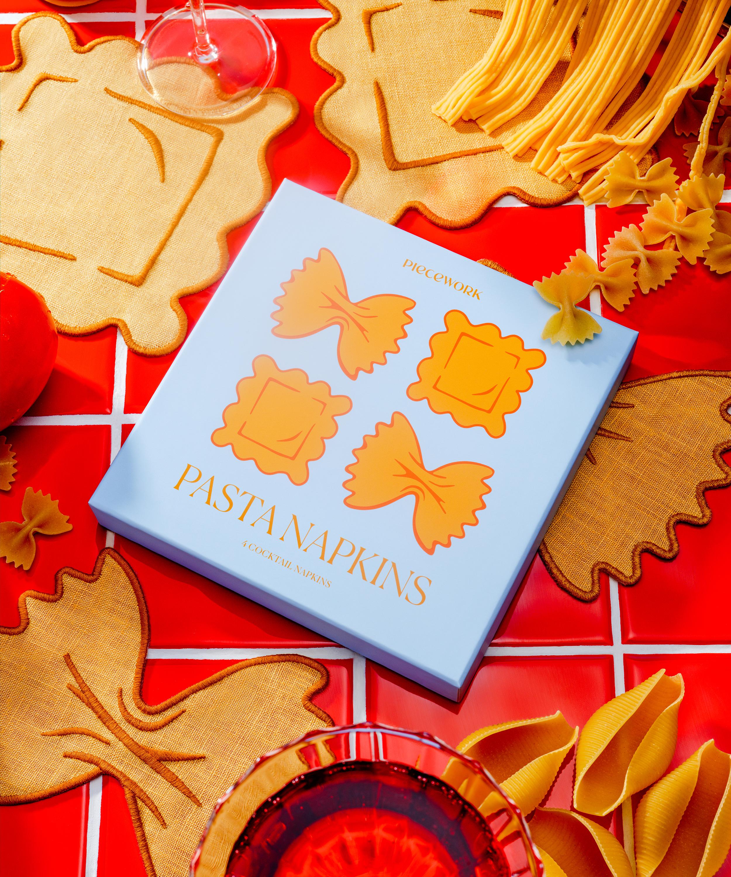 Bringing fun and feel-good flair to your dining table, Piecework’s Pasta cocktail napkins lend a maximalist edge to your parties and gatherings.