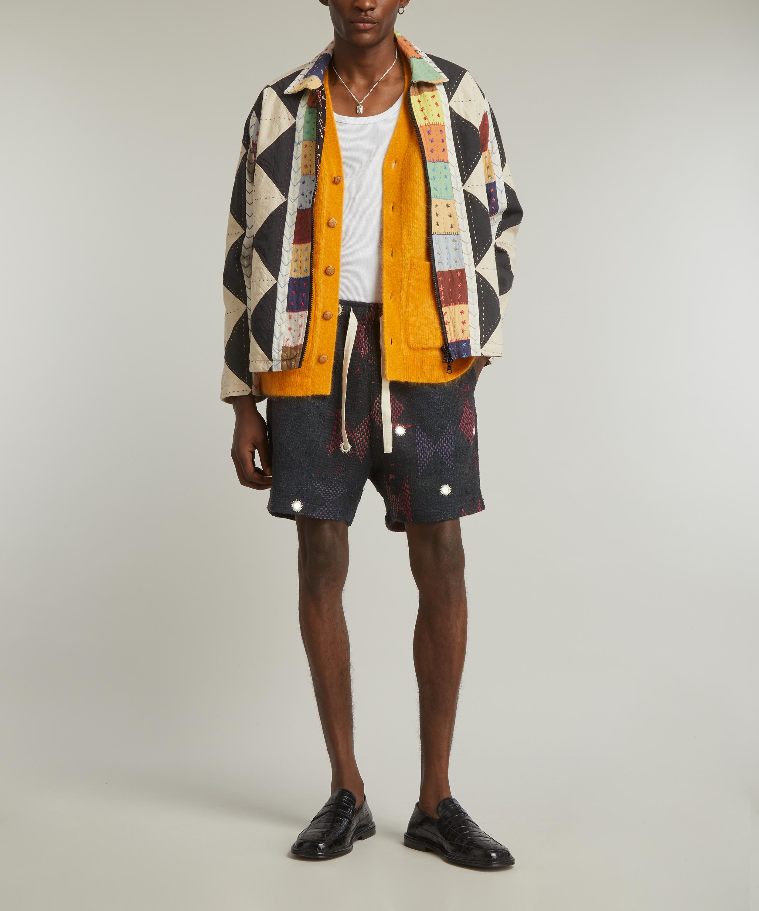 Founded in 2021 by Kartik Kumra, Indian brand Kartik Research creates clothing inspired by India’s rich heritage of craft and culture. A celebration of heritage and time-honoured techniques, the brand is committed to preserving centuries-old craftsmanship. Working closely with Indian artisans, each garment is handmade and features intricate handicraft ranging from kantha quilted shorts, to Kasuti-embroidered suits. Weaving the past with the present, each stitch and seam defines craftsmanship in a contemporary way.