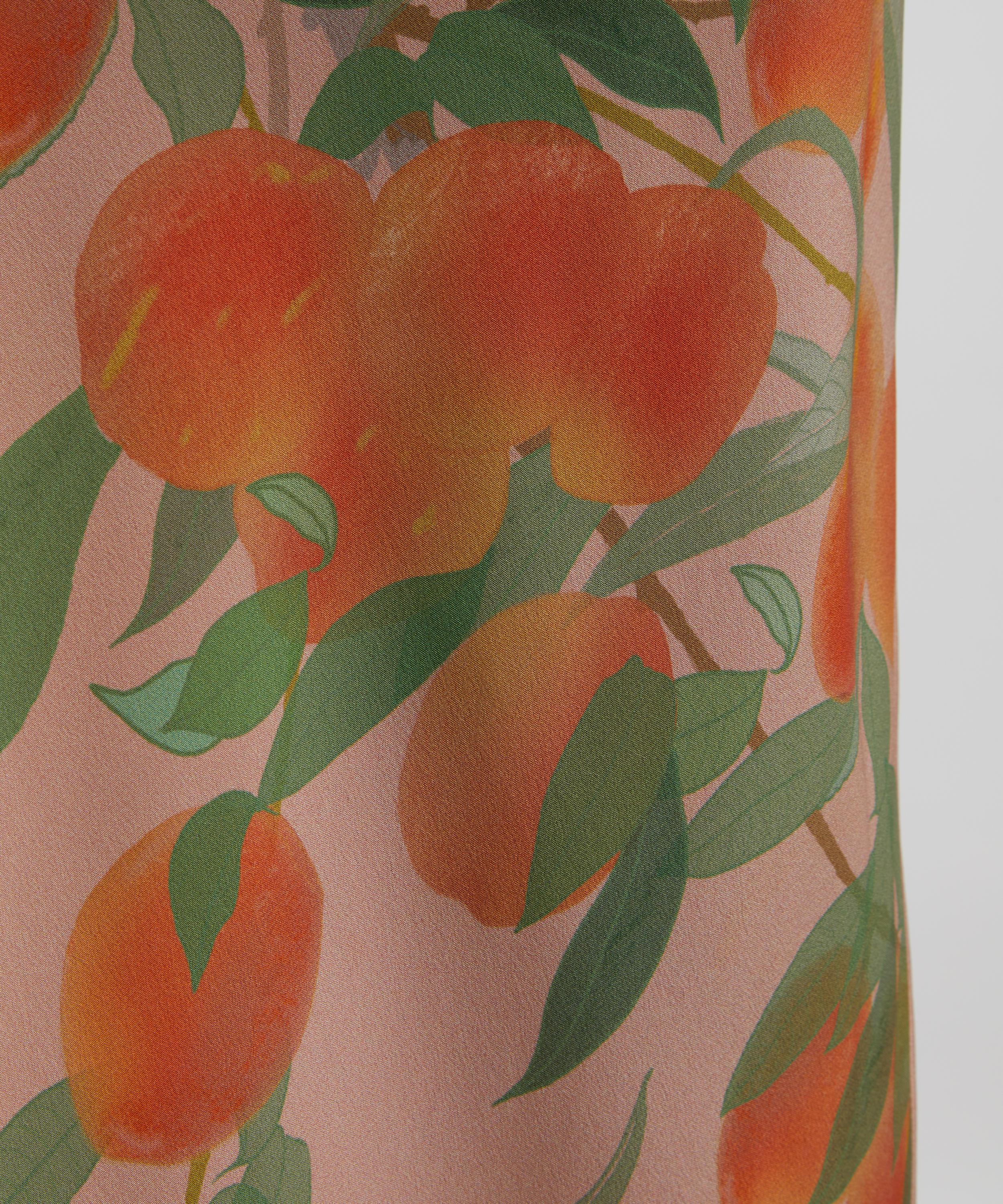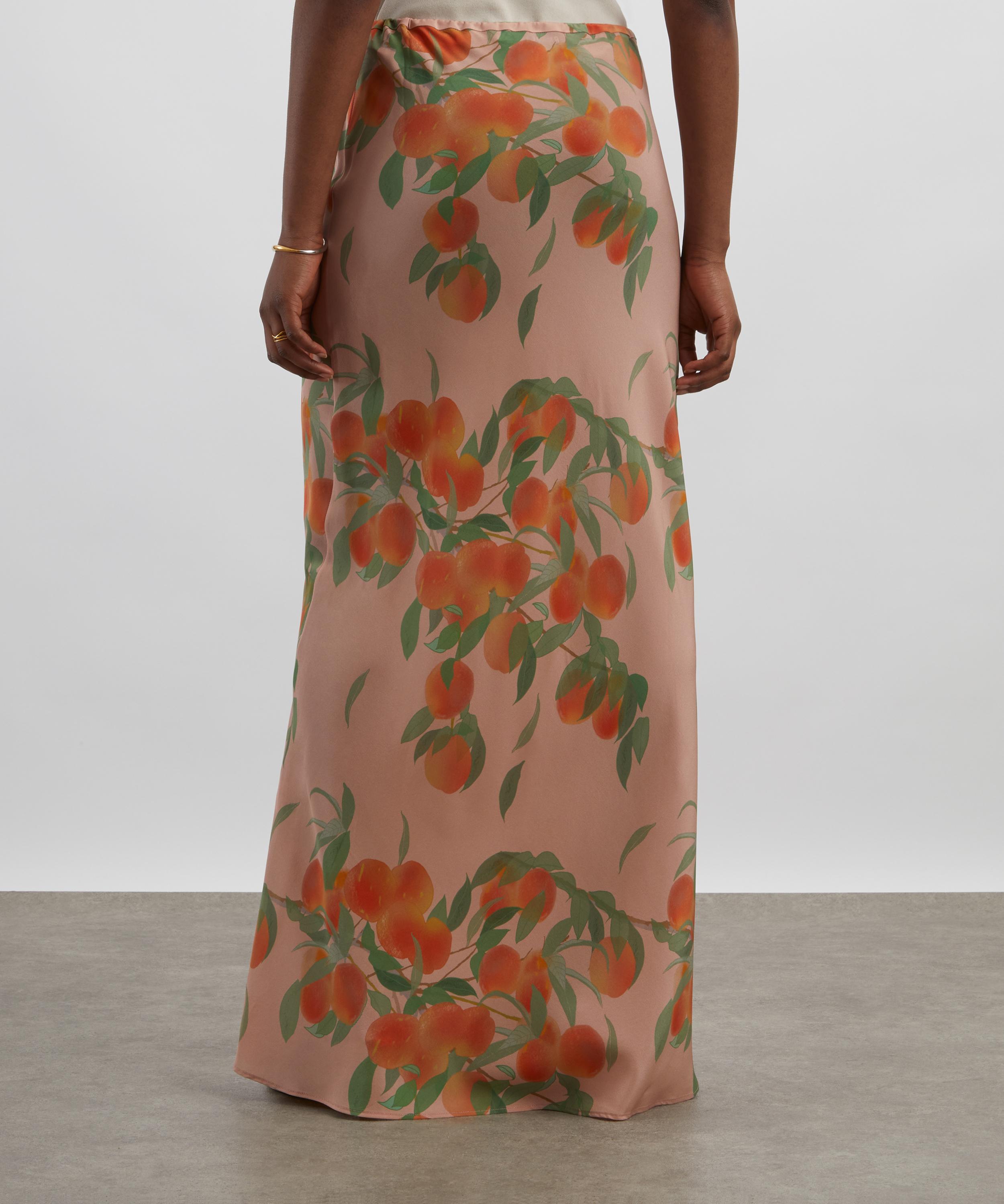 Adorned with this season’s Peachtree print, this maxi skirt flows gracefully to the ankle and features a drawstring waistband for an effortlessly comfortable fit. Crafted from light silk crêpe de chine fabric, it’s a must-have summer essential.