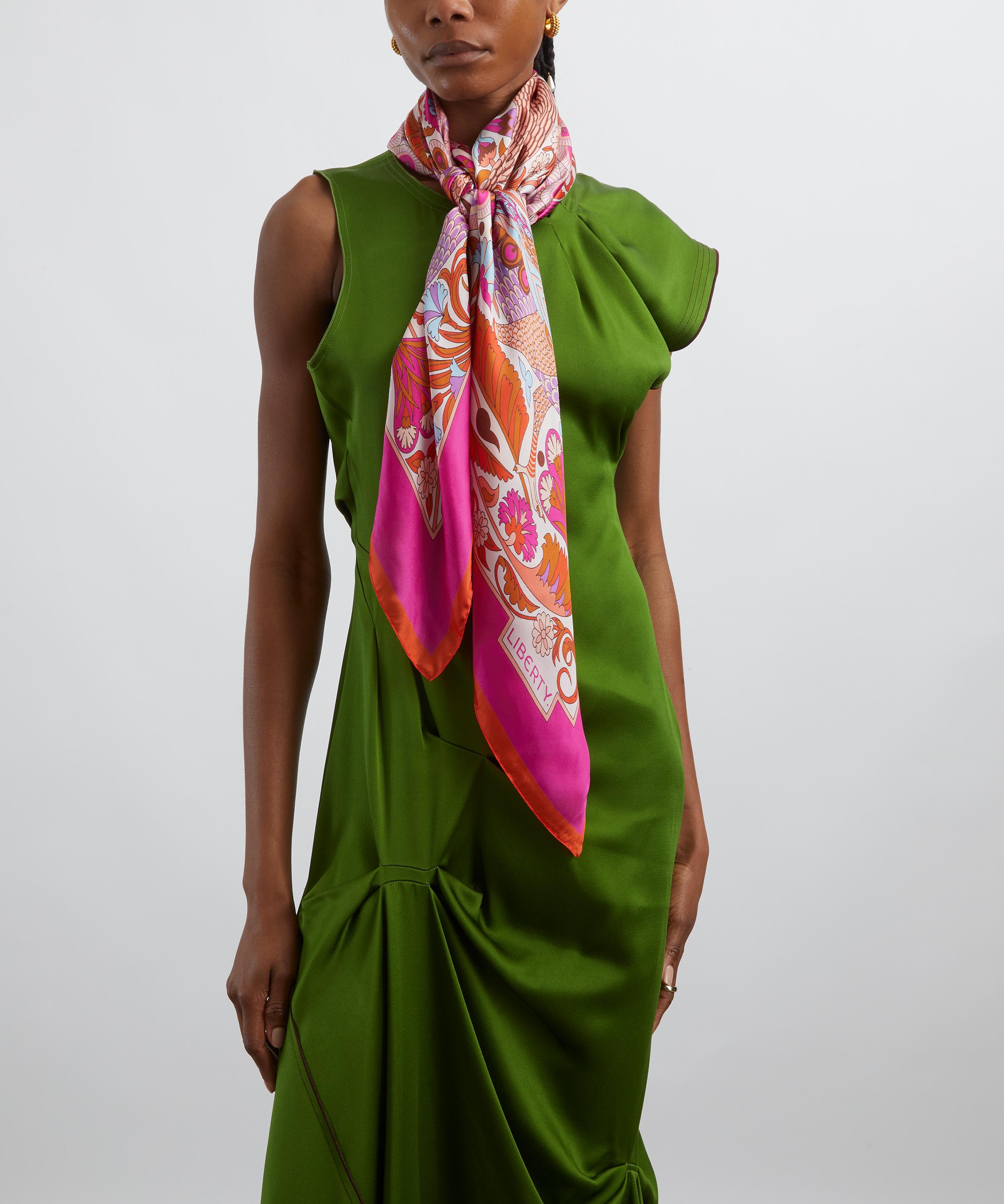Revitalise your ensemble and give it an elevating finishing touch with the Peacock Fiesta silk scarf - a statement of quality, artistry and Liberty’s rich heritage.