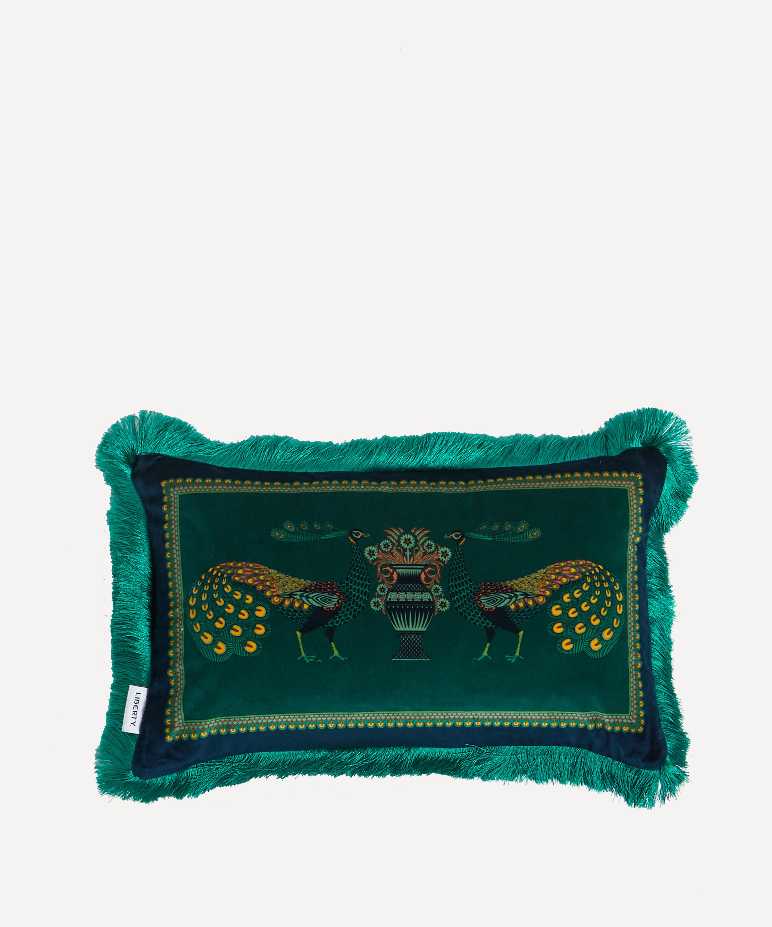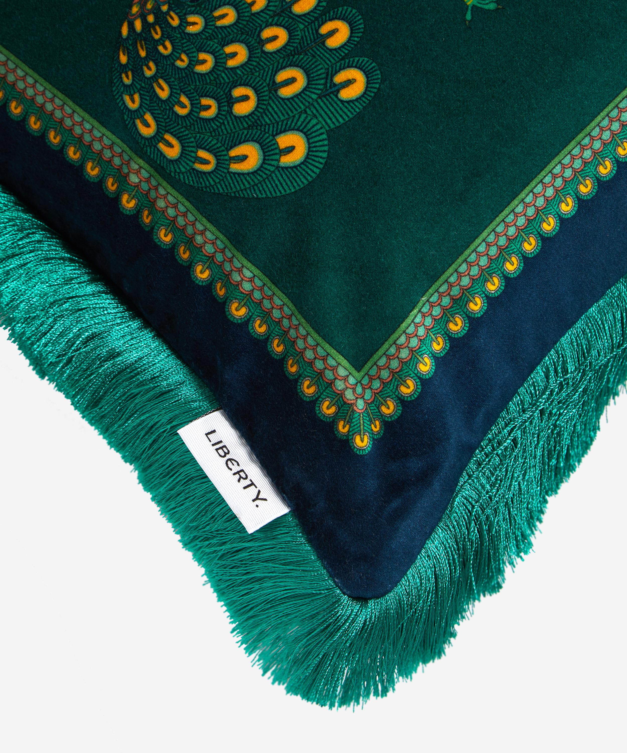 This cushion features our Peacock Garden print and is decadently soft with a plump duck feather filling. Designed in-house, the peacock is a classic Liberty motif, intricately printed here with a lighter-hued background to bring out the finer details. The cushion’s classic silhouette and contrasting sides allows for maximum versatility, complementing both minimal and decorative interiors.
