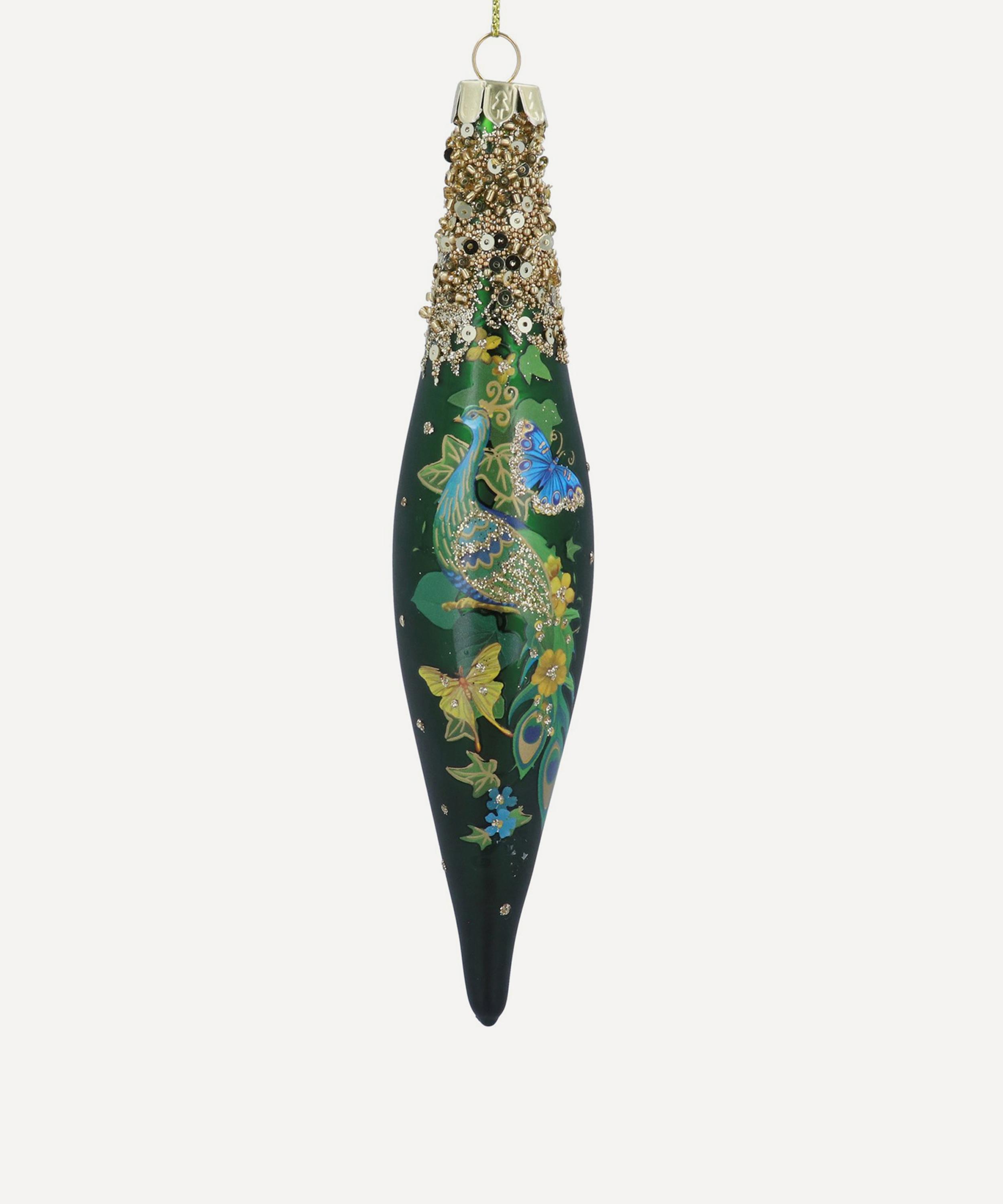 An alternative to traditional decorations, it’s exquisitely crafted from glass, featuring an emerald-green colourway with sequin detailing, fluttering butterflies and a regal peacock – a luxuriously embellished option for those seeking to express a bit of their personality in this year’s festive décor. Pair it with a mix of rioting colours and unexpected novelty ornaments to break the mould or let it become a small statement piece to make your traditional display pop.