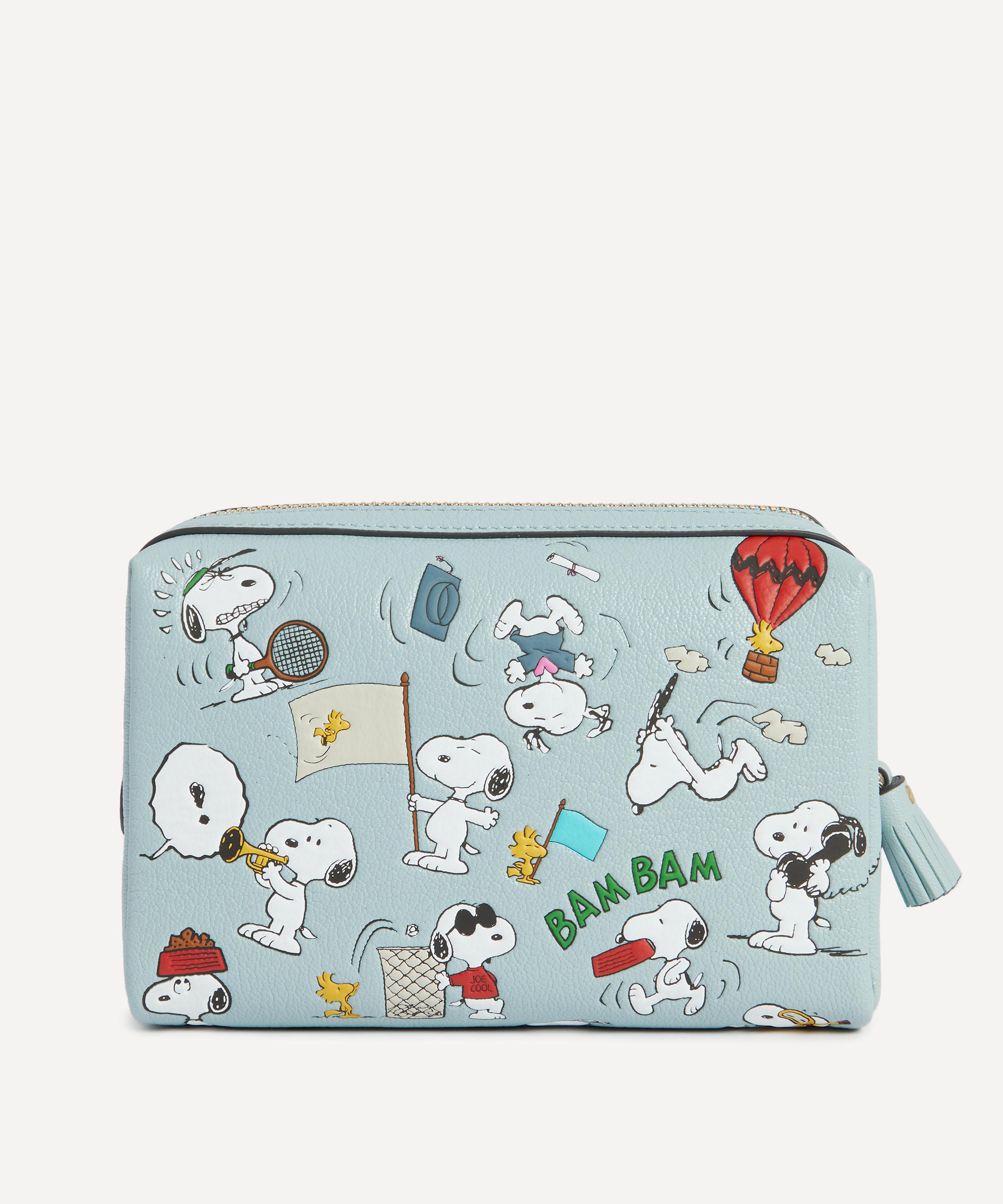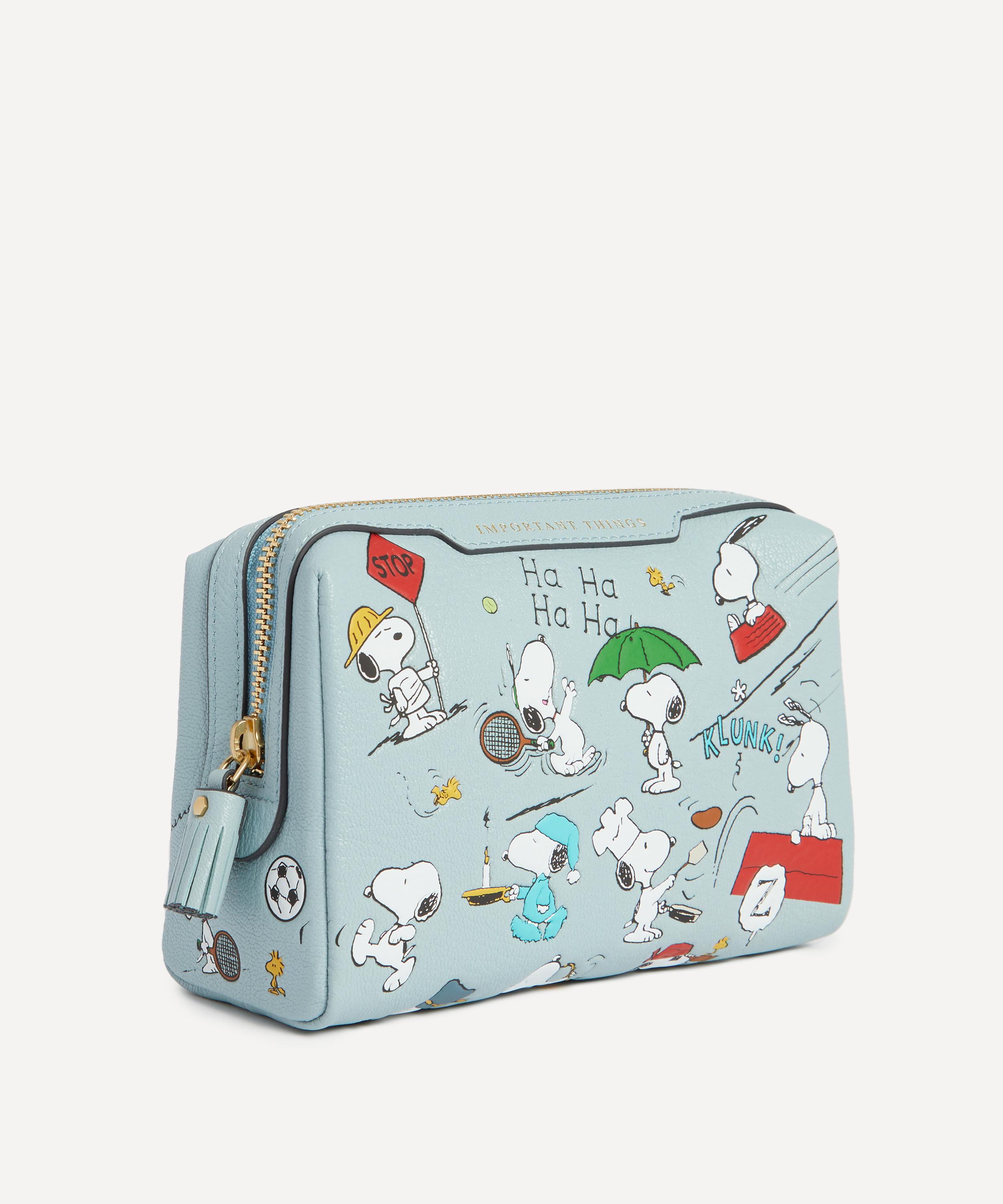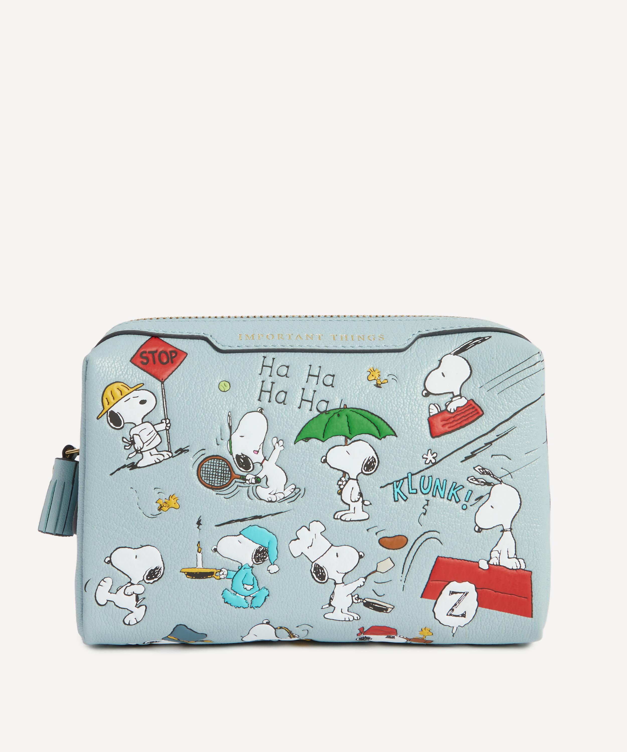 Ready to explore the world in style, Anya Hindmarch’s Snoopy and Woodstock Important Things pouch is perfect for daily dressing or long-haul trips.