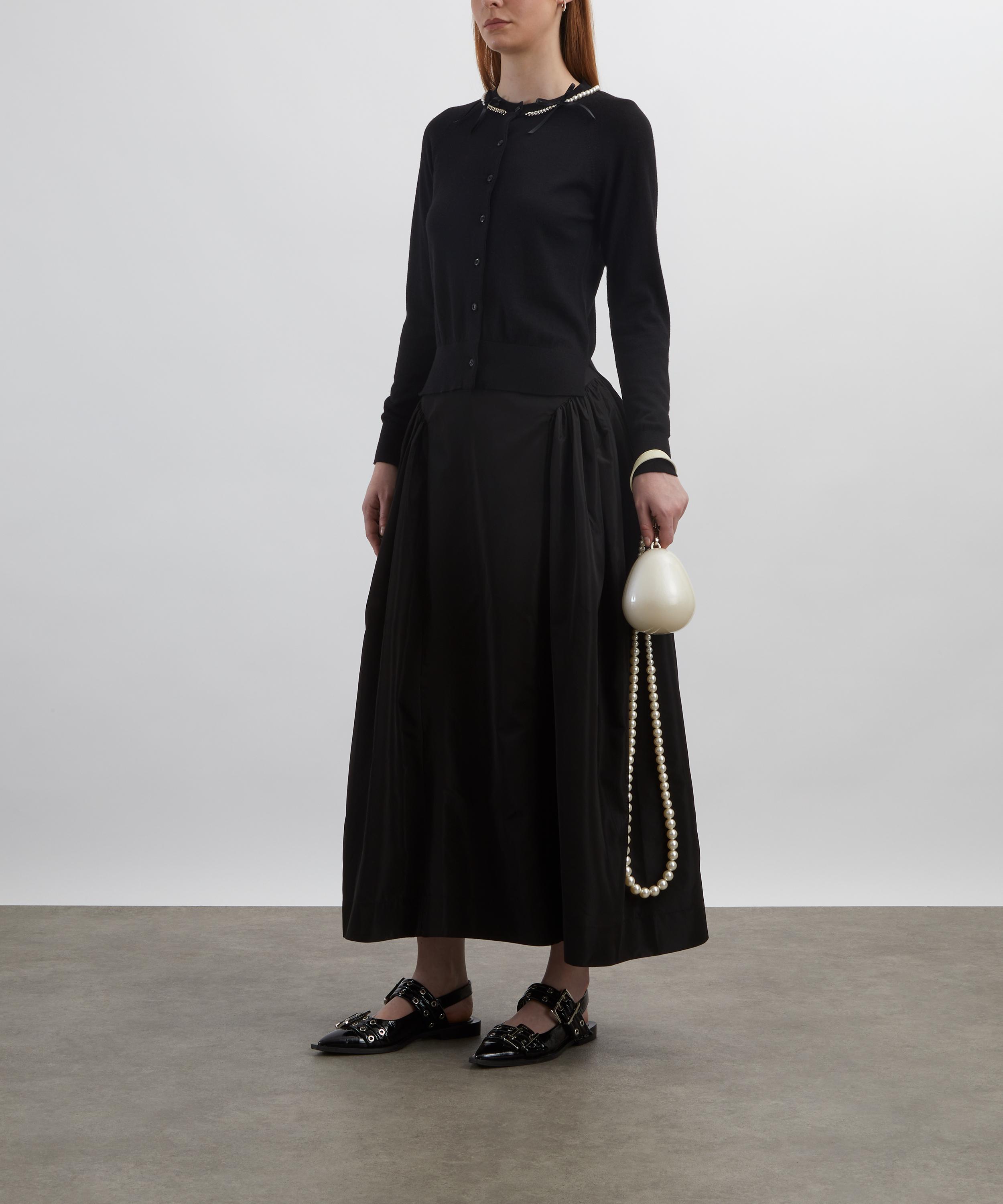 With its sharp tailoring and delicate details, the Pearl and Chain Bow Cardigan channels Simone Rocha’s rebellious yet romantic aesthetic.