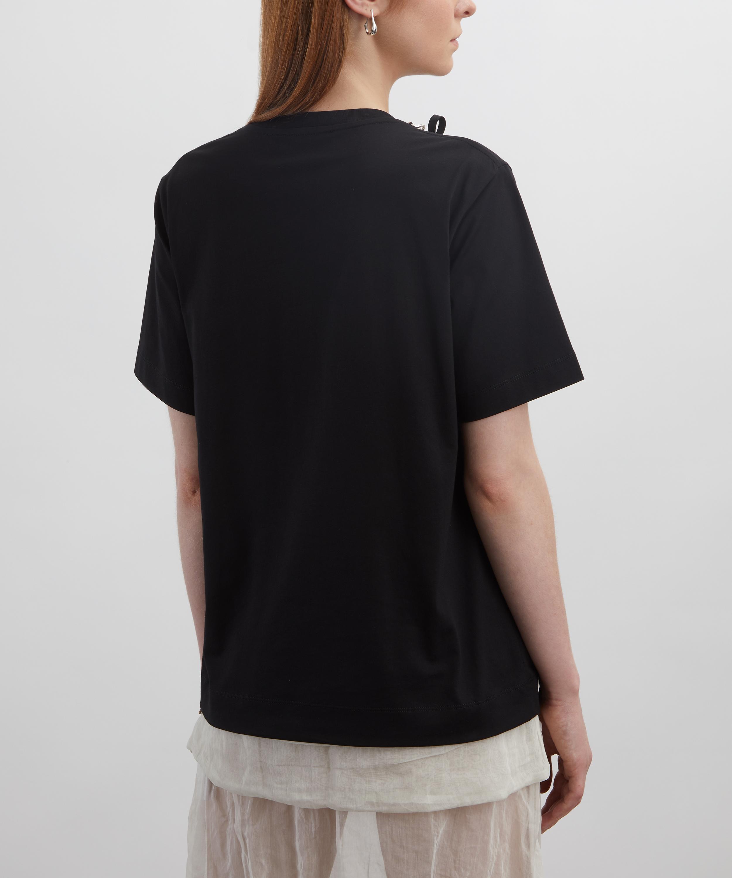 Crafted from lightweight cotton jersey, this black short-sleeve t-shirt is accented with delicate pearl and chain embellishments along the neckline for a touch of romantic elegance.