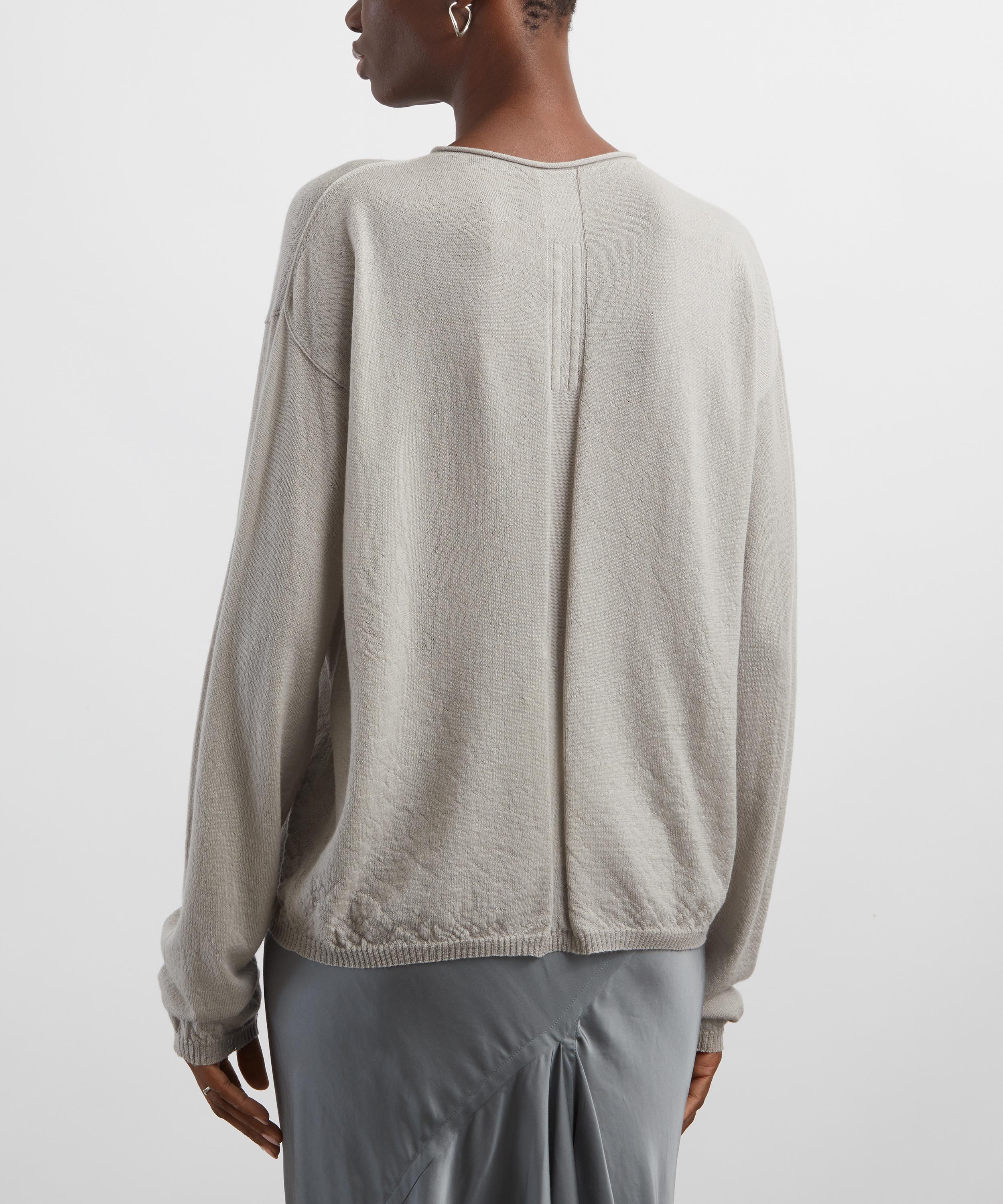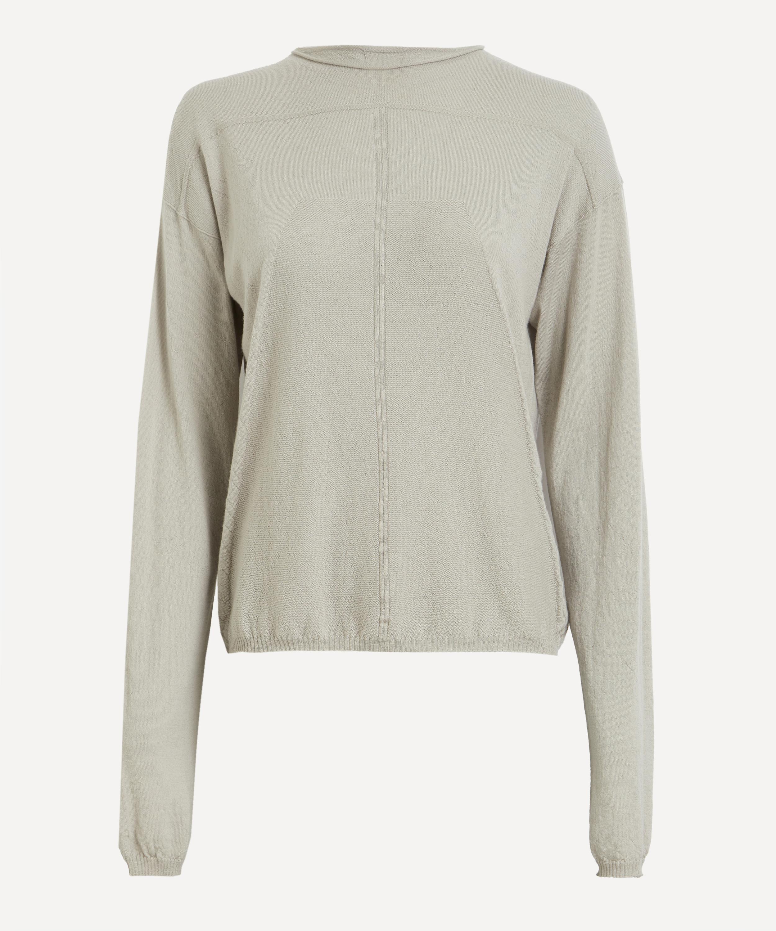 The Pearl Pull Wool Jumper from Rick Owens captures the brand's elevated grunge aesthetic, adding a contemporary, avant-garde touch to your new season edit.