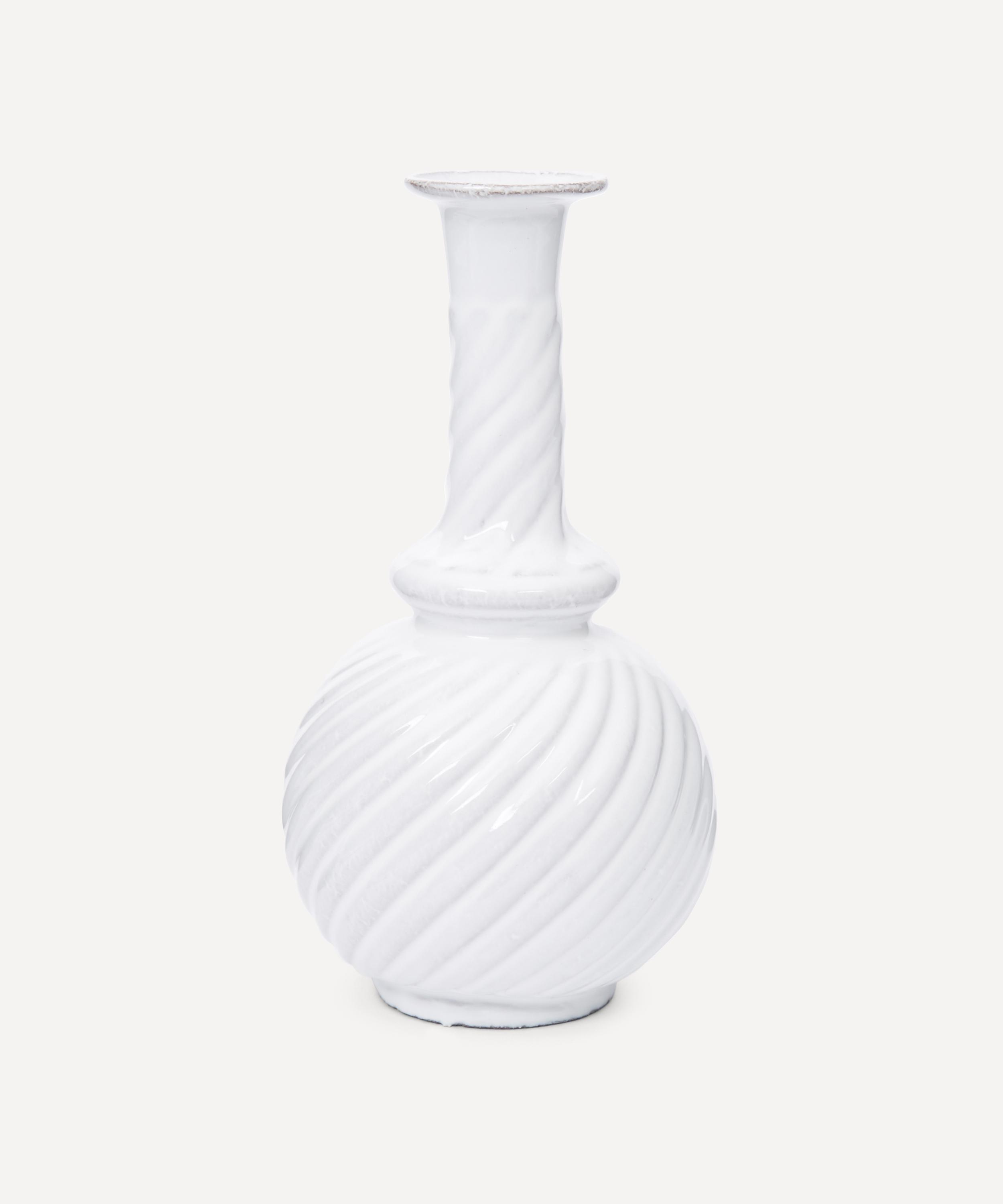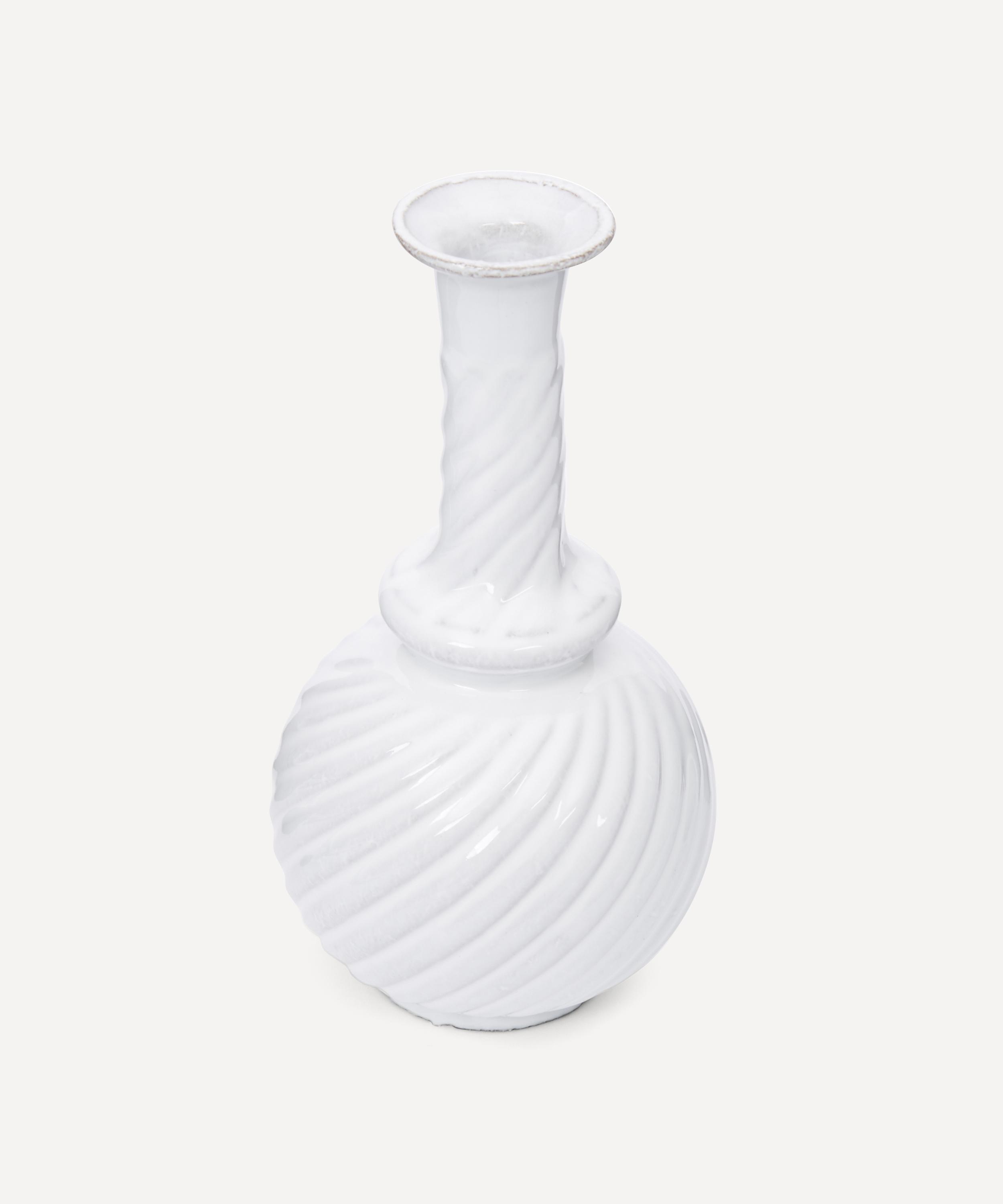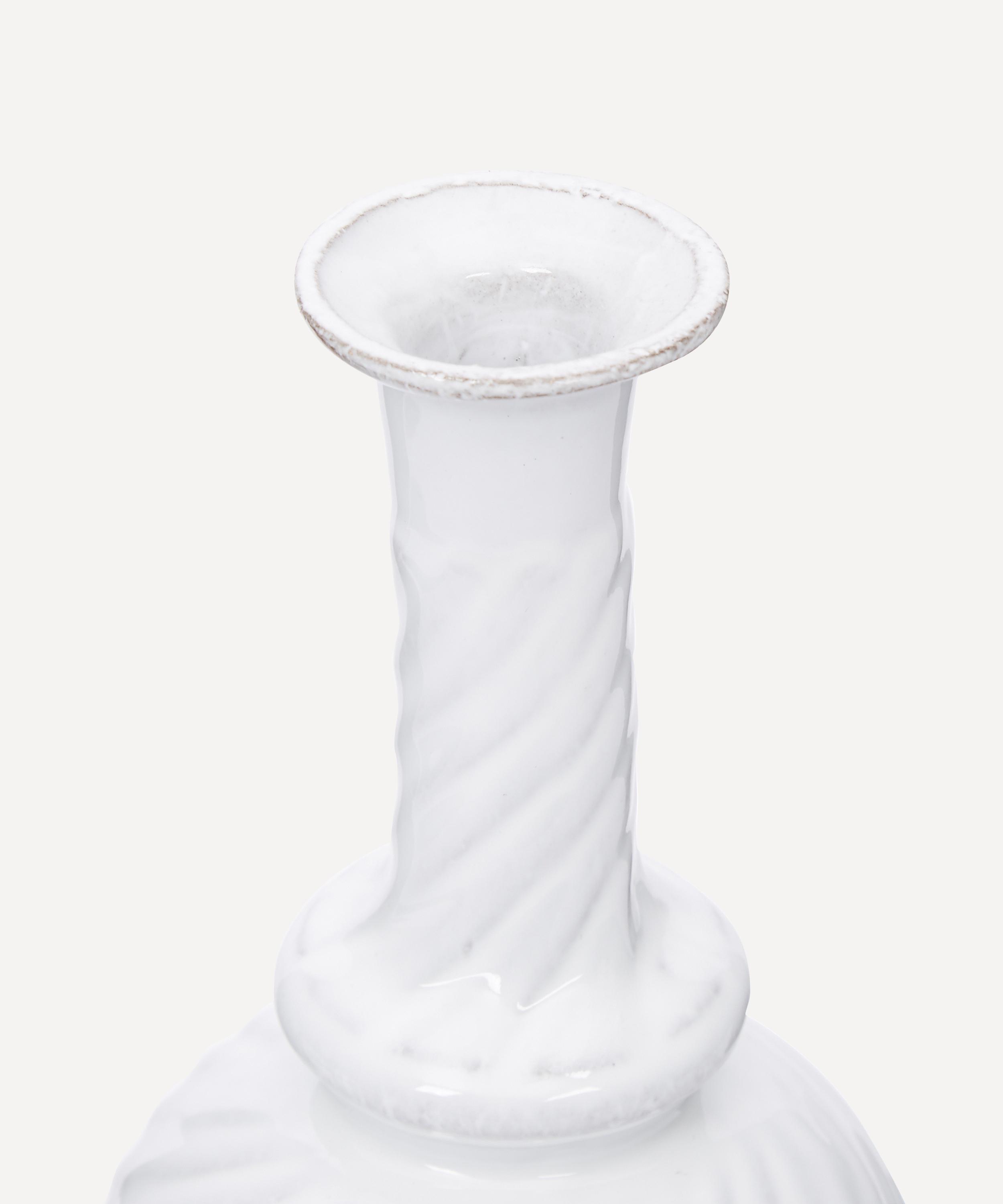 Display dashing floral arrangements in the Peggy vase from Astier de Villatte, to give your interior an extra accent of simple glamour. Sleek and classic, it has a rounded base and a narrow neck to showcase your favourite blooms to perfection. The black terracotta clay vase is completed with a traditional pale glaze, for a milky-white finish that radiates limpid, graceful calm.
