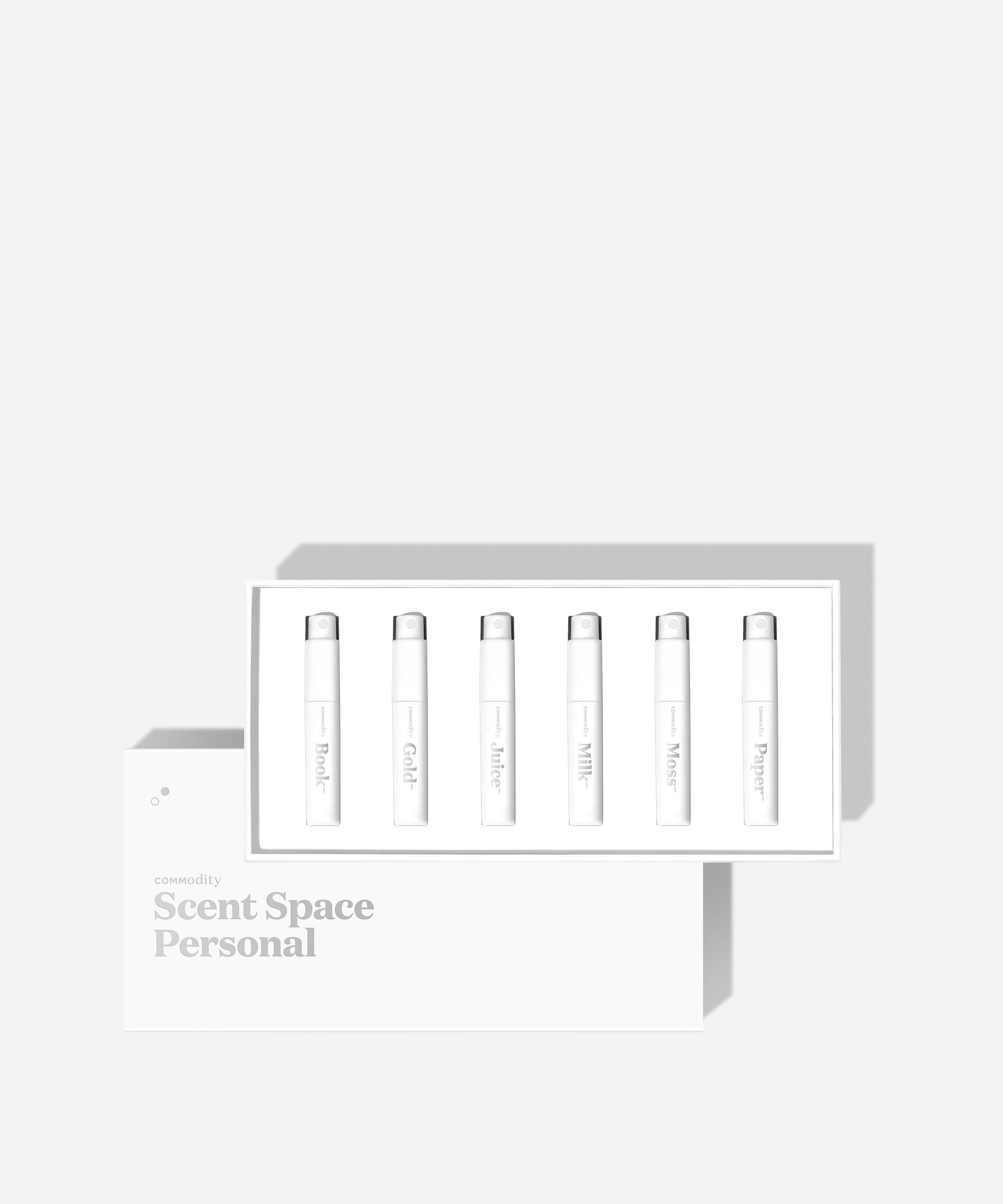 Unveil your signature scent with Commodity’s Personal Scent Space Kit – six airy, lightweight eau de parfums housed in travel-friendly bottles.