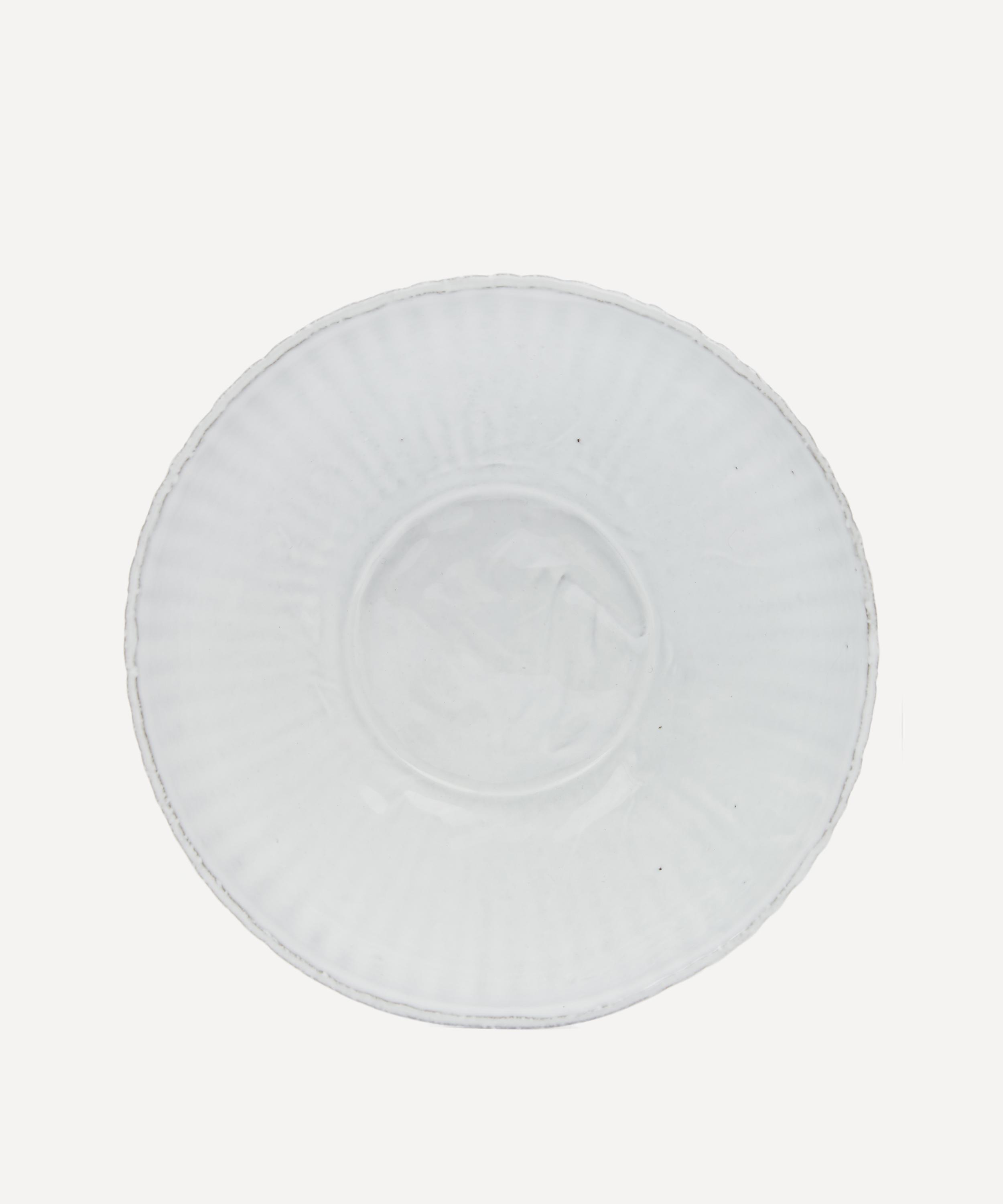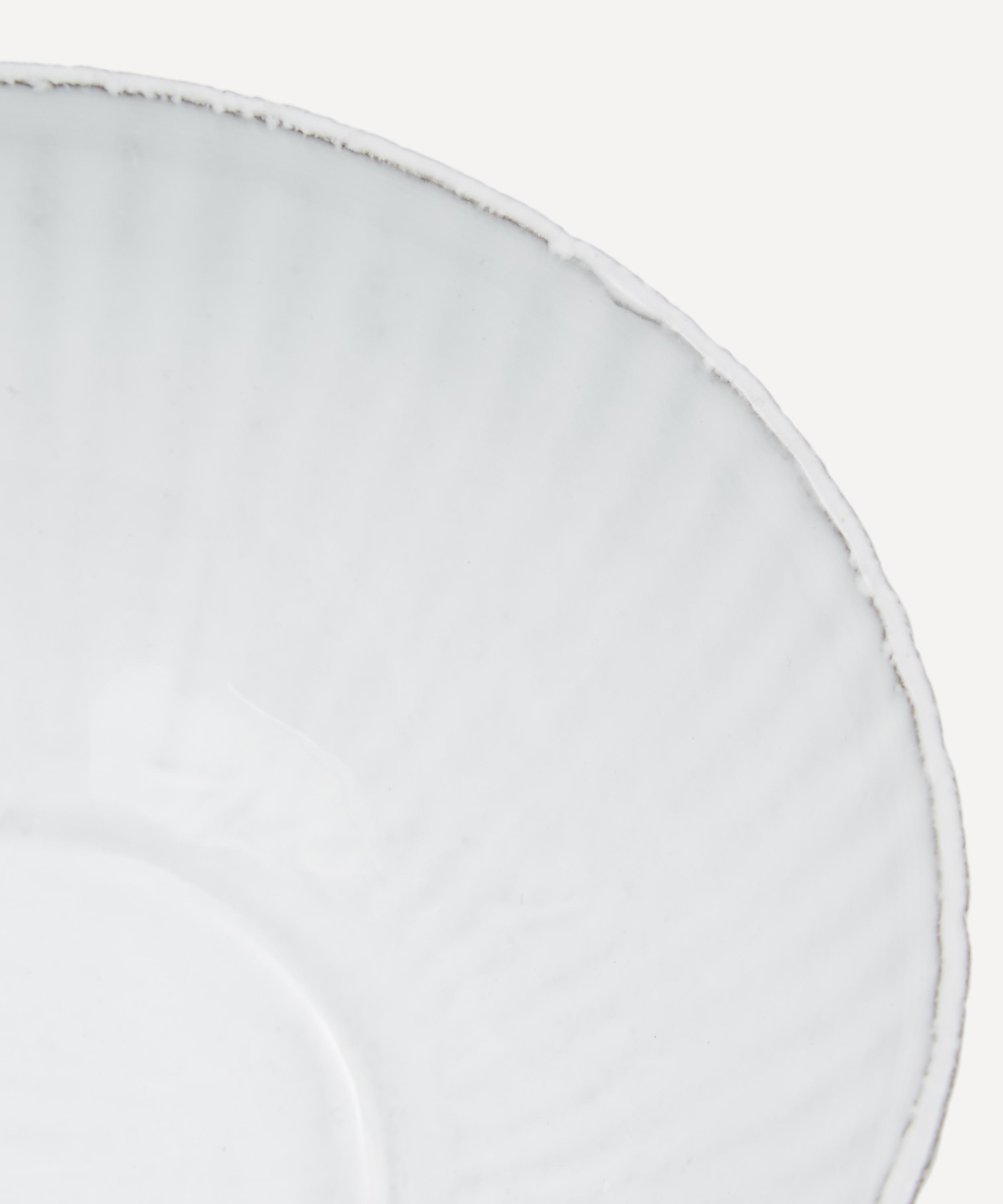 Votary of pre-industrial fabrication, Astier de Villatte is celebrated for being the one and only studio in Paris to hold and harbour the traditions of artisanal ceramic production. Restoring the ancestral systems of moulding and stamping, the Petulla bowl is made using handcrafting techniques from the Middle Ages which involve moulding a handmade sheet of clay, double firing the ‘biscuit’ piece and glazing the product in white enamel – a lengthy process that involves a drying time of up to one month. Characterised by scorings and a scalloped rim, the bowl is engraved with the brand’s signature crest - depicting an interlacing A & V - alongside the initials of one of the 40 master artisans who created it. Each handmade piece tells a beautiful story, it romances and imparts a sense of nostalgia into its owner. Arrange with other glazed bowls and plates in the collection to breathe an air of authenticity into your dining collection.